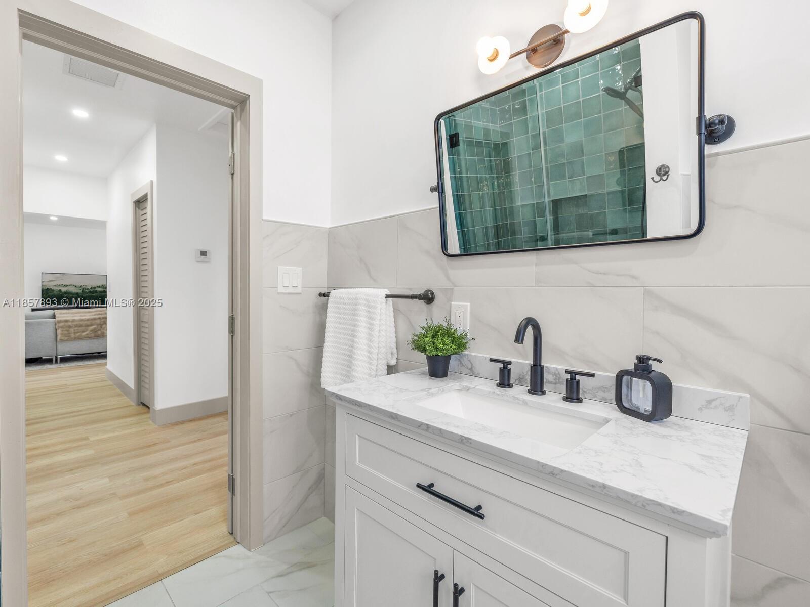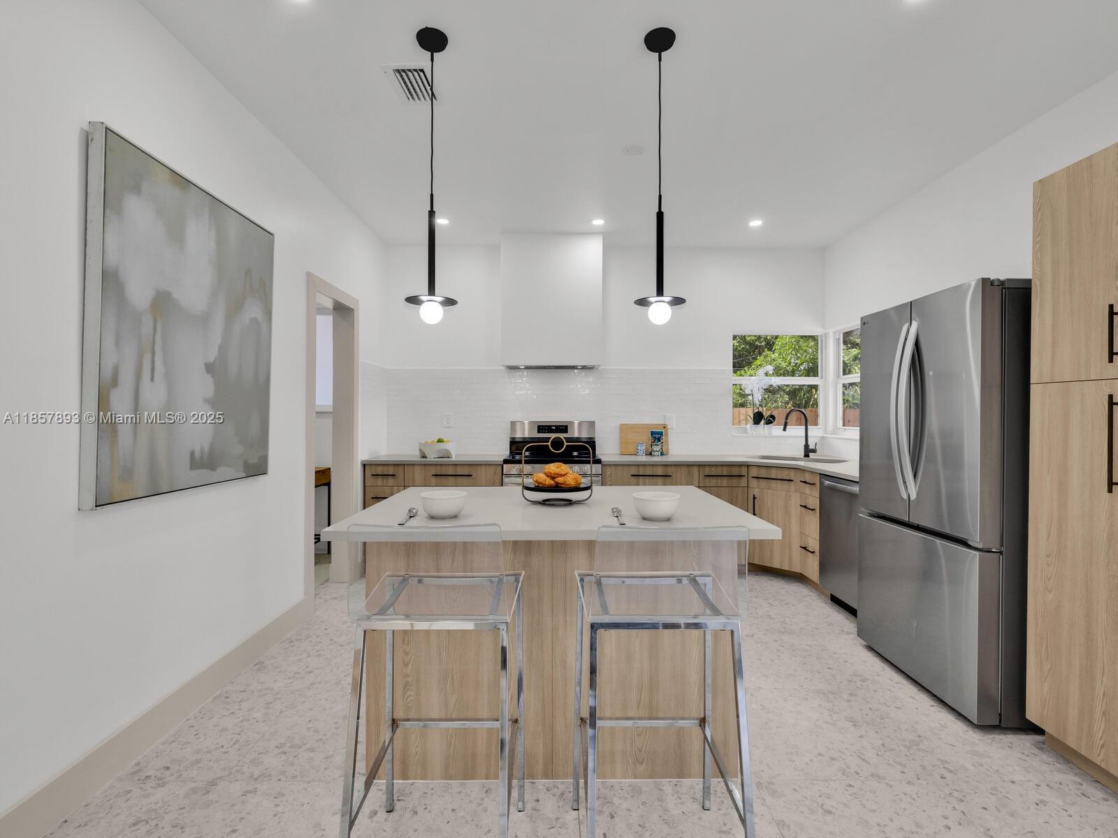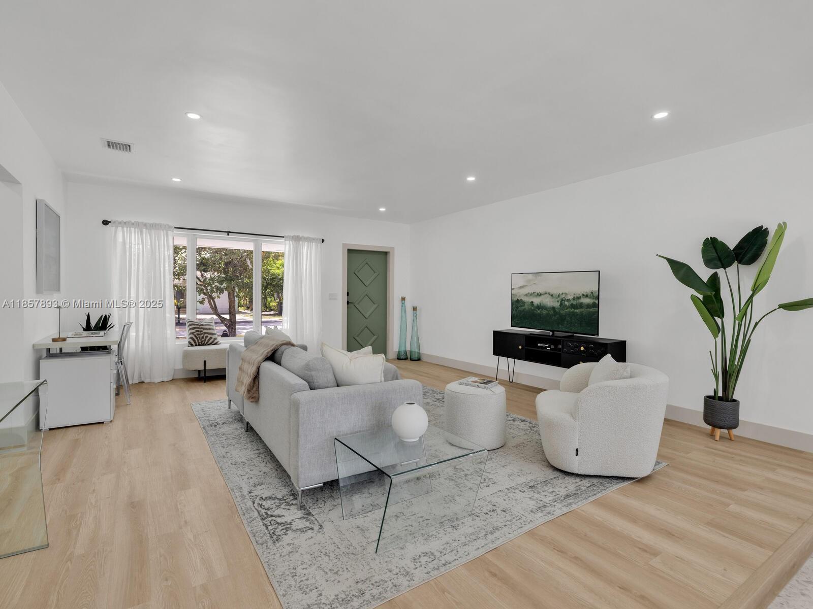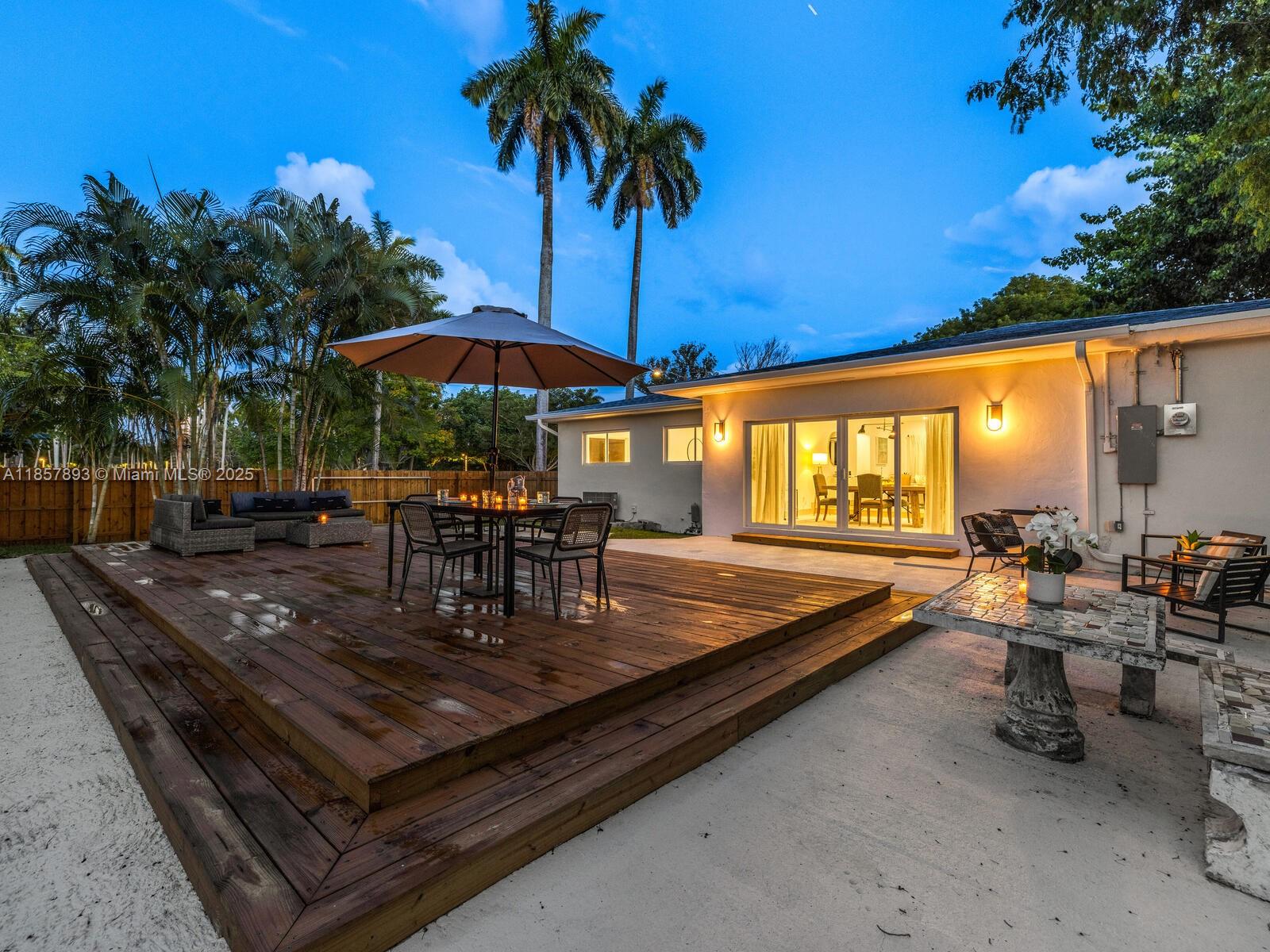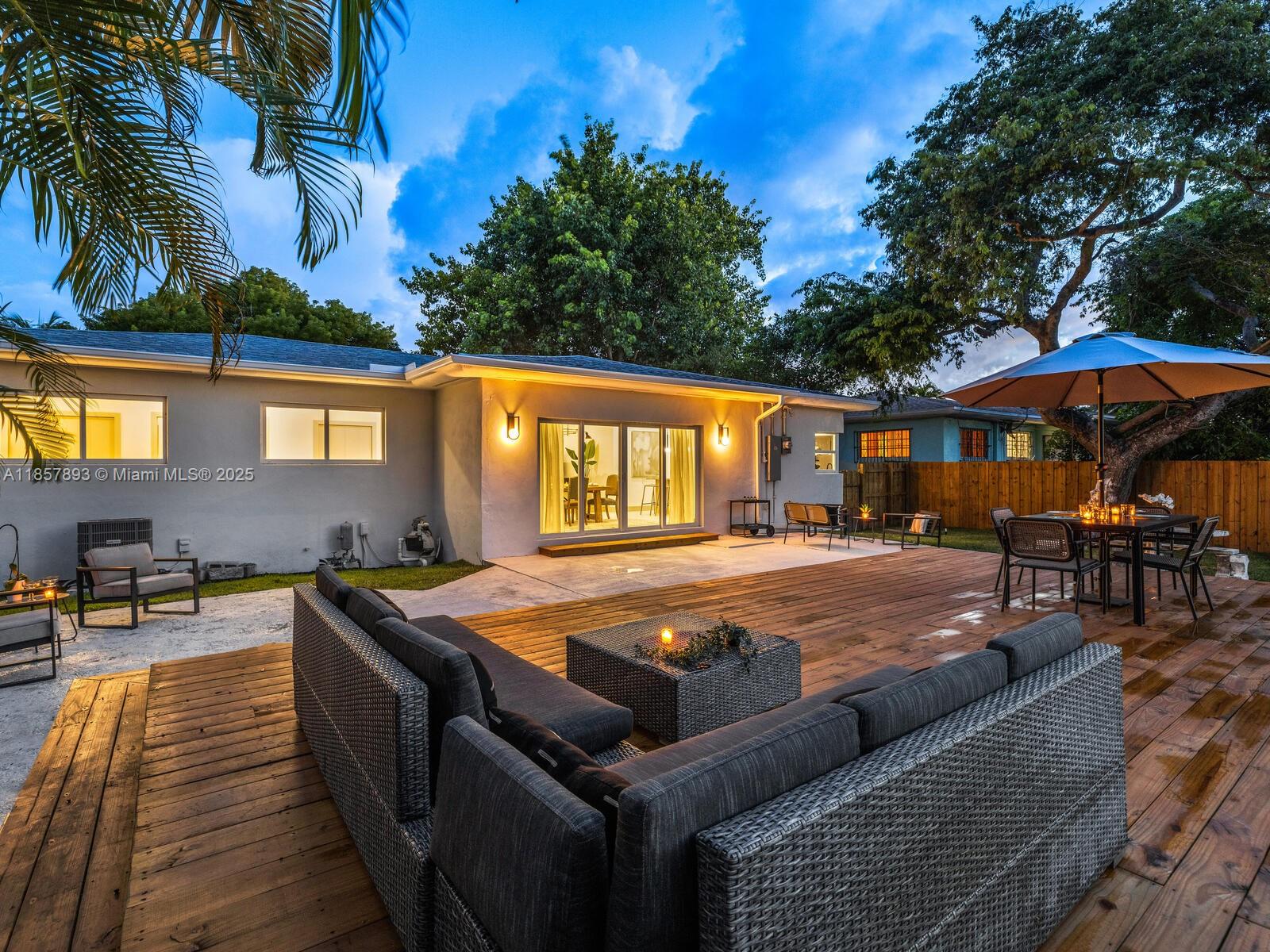 Welcome to The Parkside Retreat! Endless opportunities await you in this completely updated mid-century modern home on a large 8,960 SF corner lot. Great features inside and out— a cool, welcoming covered Terrazzo front porch; grand open-flow living room and bright dining, plus custom eat-in chef’s island kitchen with high ceilings and abundant counter space; triple-stacked bedrooms with two new designer baths, including a primary ensuite with walk-in closet; a laundry room; all new designer finishes, lighting, LVT flooring, roof, and impact windows; one-car garage; and sliding doors to entertainment gardens and a massive wooden sundeck esplanade. A great value in a fantastic, convenient unincorporated location with lower taxes and regulations, across from Biscayne Shores & Gardens Park.