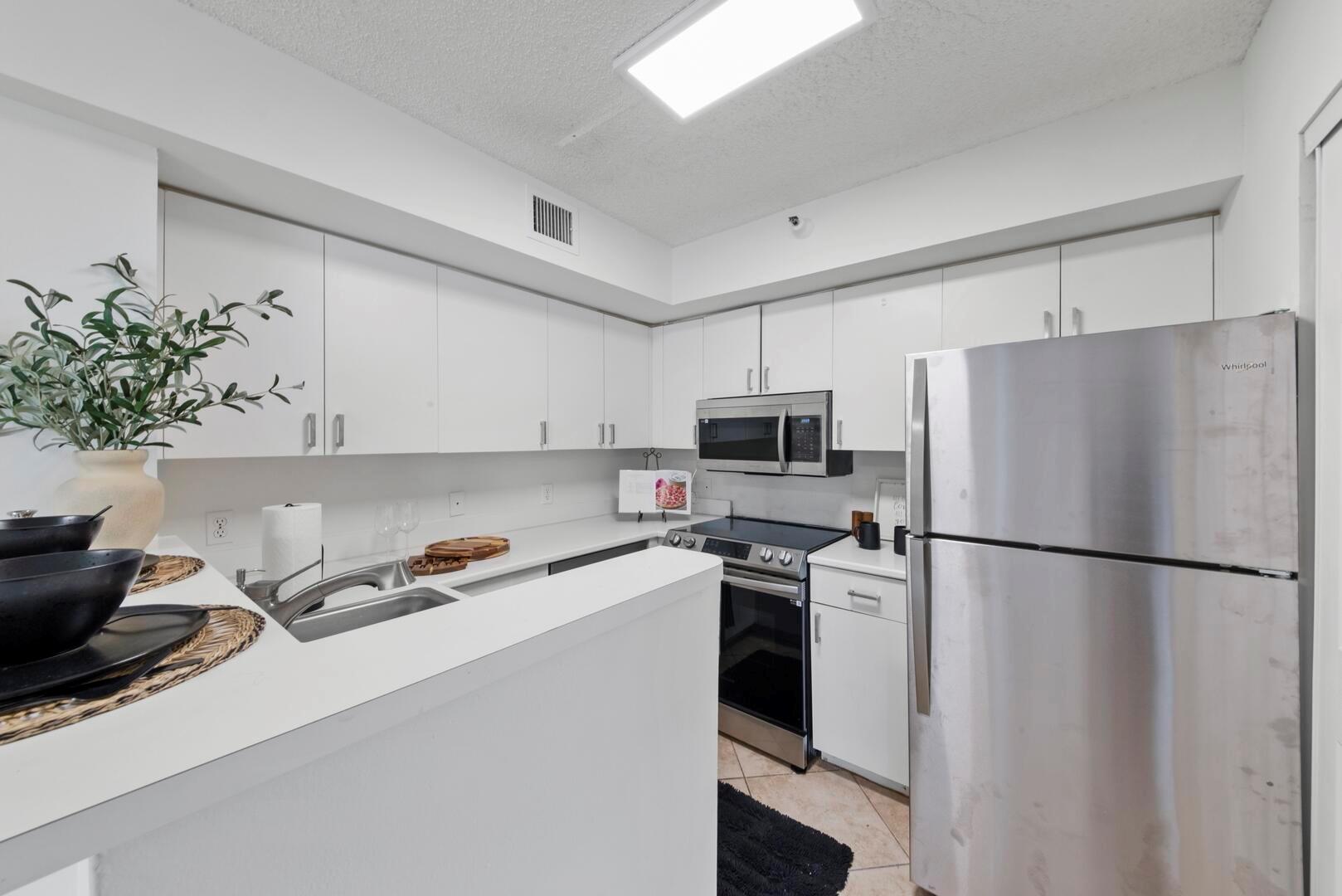 Welcome to your new waterfront retreat at The Yacht Club, where luxury and coastal living meet in this stunning 2-bedroom, 2.5-bathroom townhouse. This property has been thoughtfully updated with brand-new A/C (November 2024) and brand-new stainless steel appliances, ensuring modern comfort throughout. As you enter, you're greeted by an open and airy floor plan flooded with natural light, complemented by neutral flooring that creates a serene atmosphere. The open kitchen, featuring sleek stainless-steel appliances and classic white cabinetry, serves as the heart of the home, offering both style and functionality. The spacious counters provide ample room for meal prep, while the convenient snack bar offers a perfect spot for casual dining.
