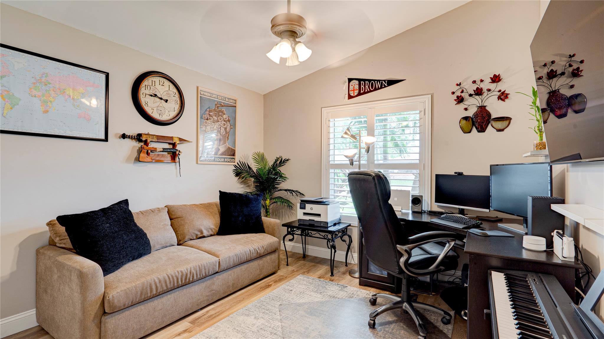 Meticulously maintained Coral Springs 4-bed, 2.5-bath with no HOA! Split floor plan with vaulted ceilings, custom wet bar, impact windows/doors, plantation shutters & cozy fireplace. Spacious walk-in closet adds everyday ease. Courtyard-style backyard oasis features heated pool, fenced yard, new screened lanai, wired outdoor TV & shed with electric. Open kitchen/family room with coffee & wine bar, central vacuum & modern security (Ring & ADT). Steps from Cypress Hammock Park with trails, tennis, pickleball, basketball, pools & water park. Move-in ready with thoughtful updates—style, comfort & entertainment all in one!