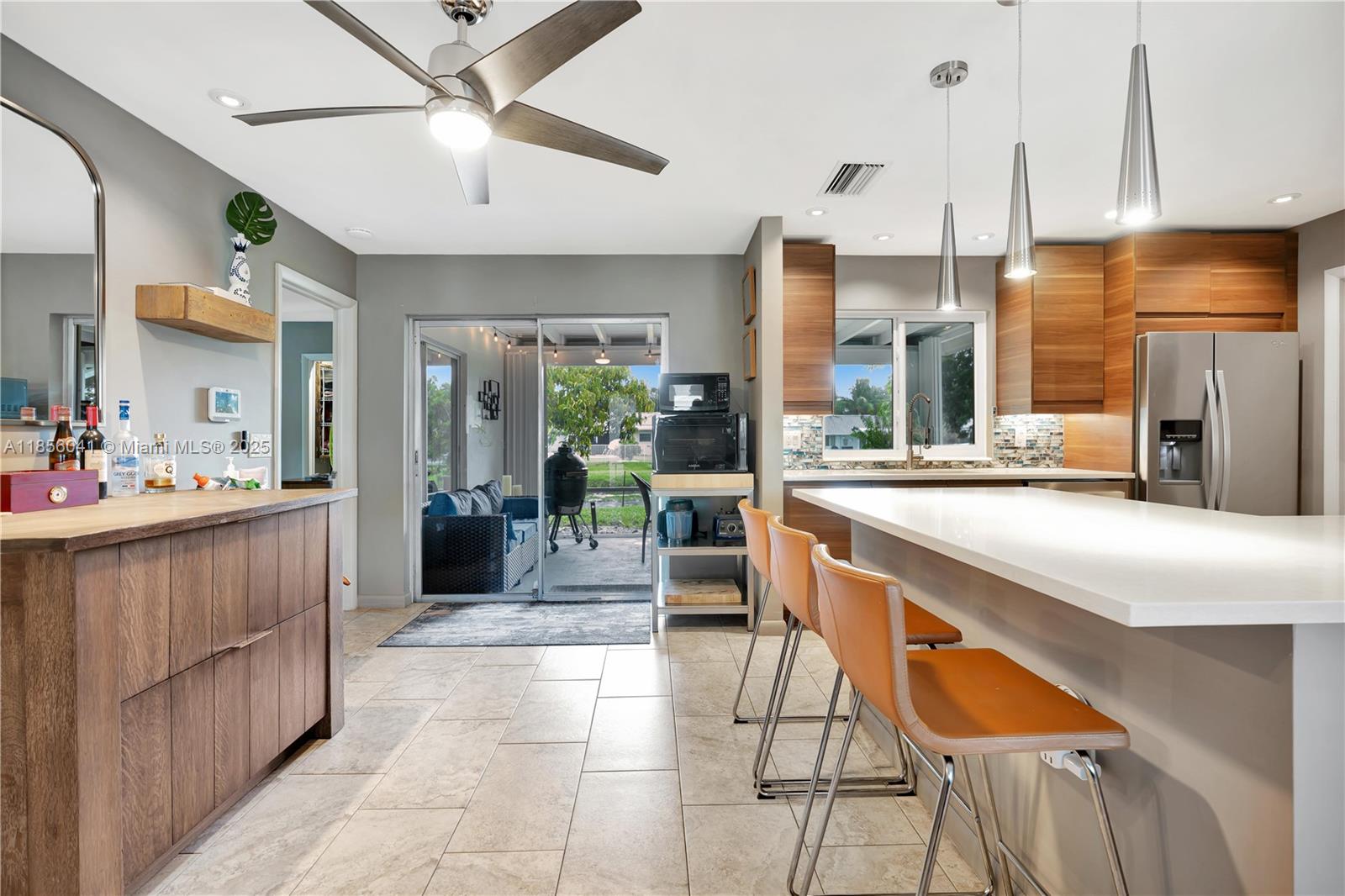 Discover this meticulously remodeled 3BR/2BA sanctuary in Palm Beach Gardens—no HOA, A-rated schools. This turnkey modern eco-home boasts floor-to-ceiling upgrades: gourmet kitchen with quartz counters and gas stove, spa-inspired baths, porcelain tile flooring, recessed & wall-wash lighting, full-impact windows and hurricane-rated garage door. Unwind on the deck with hot tub amidst ambient landscape lighting and serene water views, with ample space for a pool, firepit or putting green. Recent enhancements include 2024 AC, 2018 roof, EV-ready panel, paid-off solar (FPL bill <$50/mo), gas dryer and tankless water heater. Walk-in closets in every bedroom, alarm system with cameras, plus mango and avocado trees. Minutes to beaches, shopping, dining, parks, I-95/Turnpike and PBI. Move-in ready