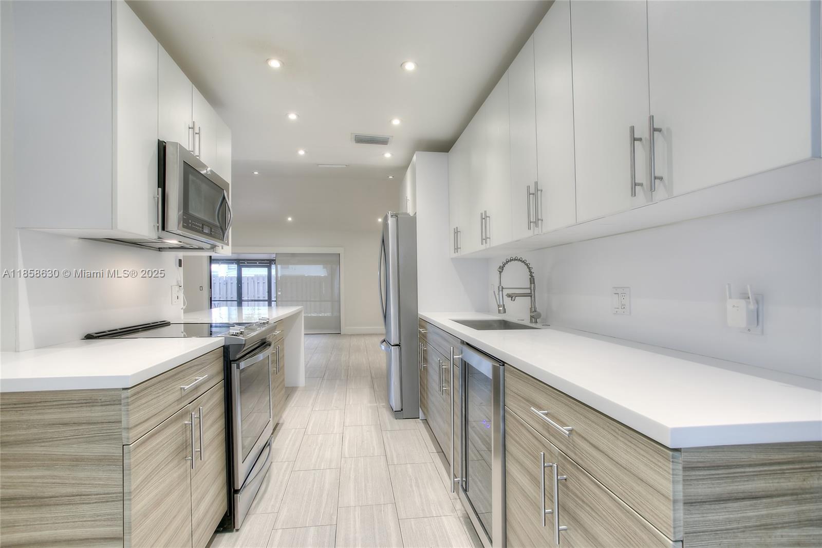 A full video of the property is available upon request. Nicely remodeled 2-bedroom, 2-bathroom townhome in the highly desirable East Lakes community of Pembroke Pines. Step inside to find modern wood-look tile flooring and LED recessed lighting throughout. The kitchen and bathrooms have been elegantly updated, featuring a sleek wine fridge. The spacious, fenced-in yard is perfect for family gatherings, complete with hookups for a TV and sound system. Enjoy peace of mind with recently updated A/C and electrical panel, along with a brand-new roof. Low HOA fee you’ll have access to amenities like a pool, playground, tennis court, and more. The property includes two assigned parking spaces and ample guest parking.