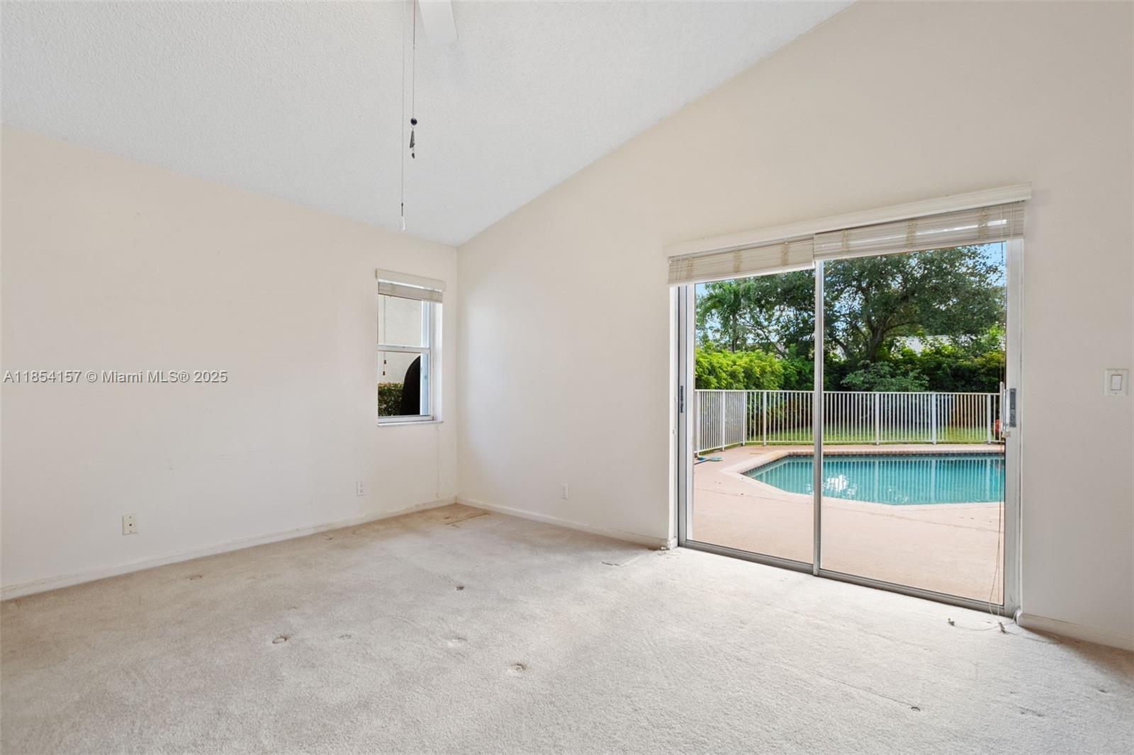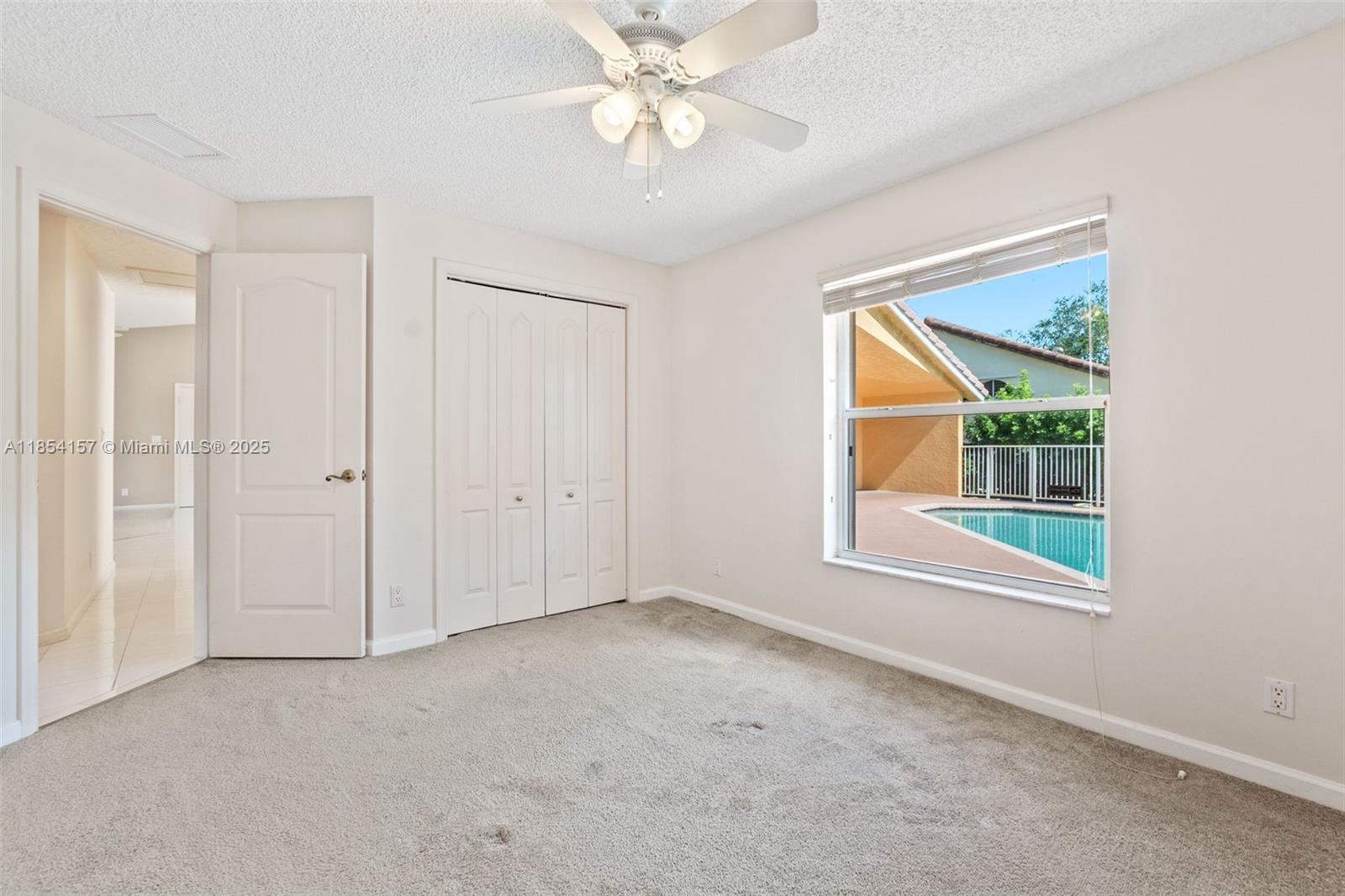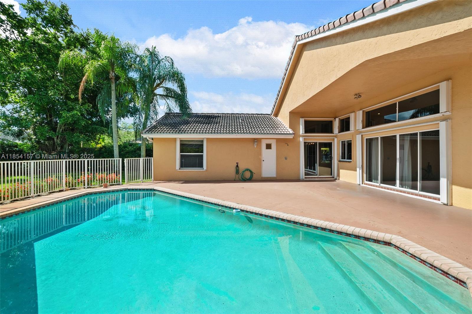Nestled in the heart of Coral Springs, this spacious 4-bedroom, 2.5-bath pool home sits on a quiet cul-de-sac and offers a desirable split floor plan w/high ceilings & low HOA! Additional features include....updated kitchen w/plenty of counter space & breakfast area; large laundry; walk-in primary closet; cabana bath for pool access; and Accordion shutters throughout for peace of mind! Roof replaced in 2007, A/C in 2017, W/H in 2022. Private backyard oasis with pool and outdoor shower. You’ll enjoy walking distance to the popular Betti Stradling Park—offering tennis, basketball, skate park, splash pad, playground, and more. Close to top-rated schools, shopping, dining, and major highways, this home combines comfort, style, and convenience in one perfect package.