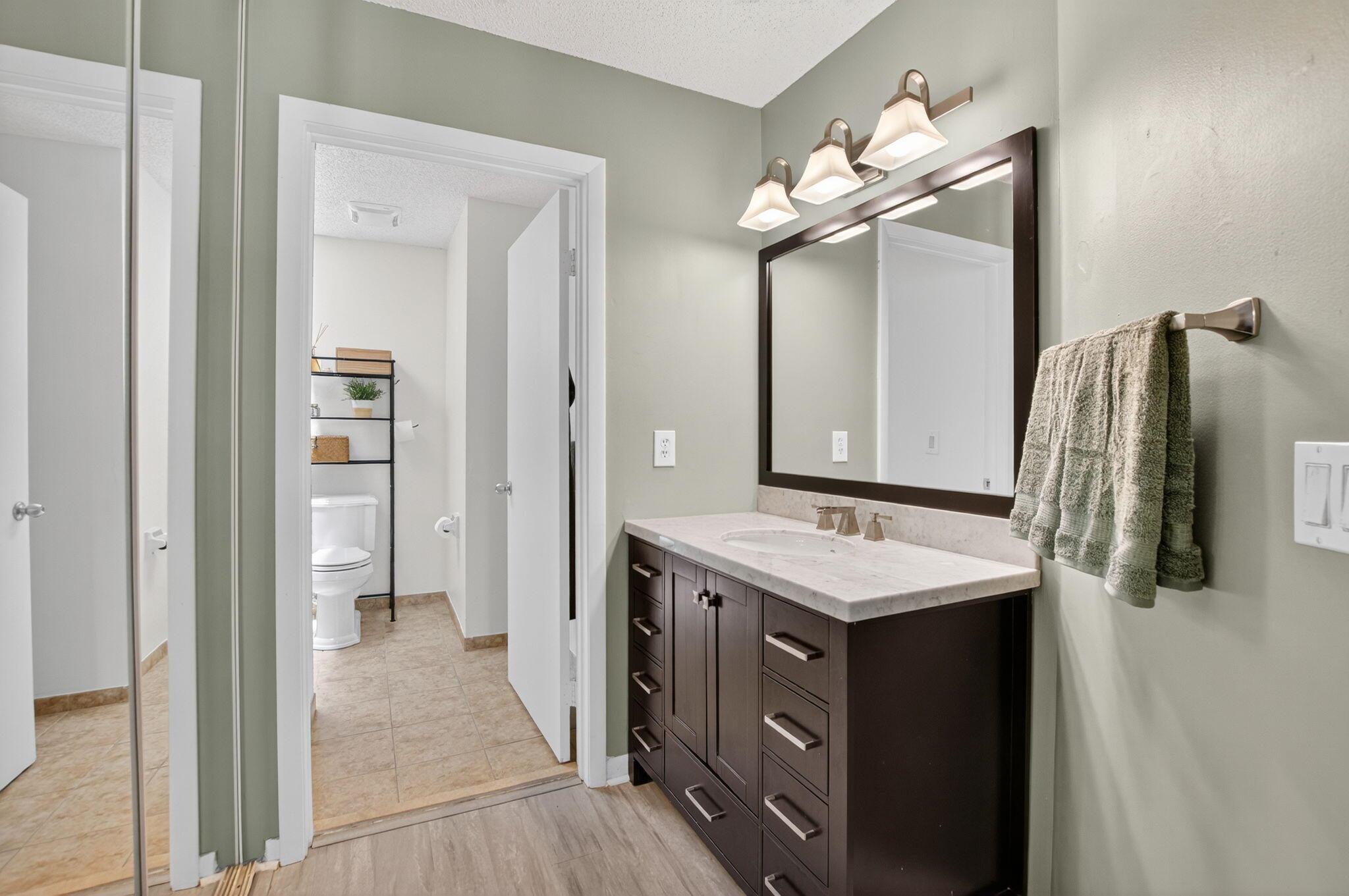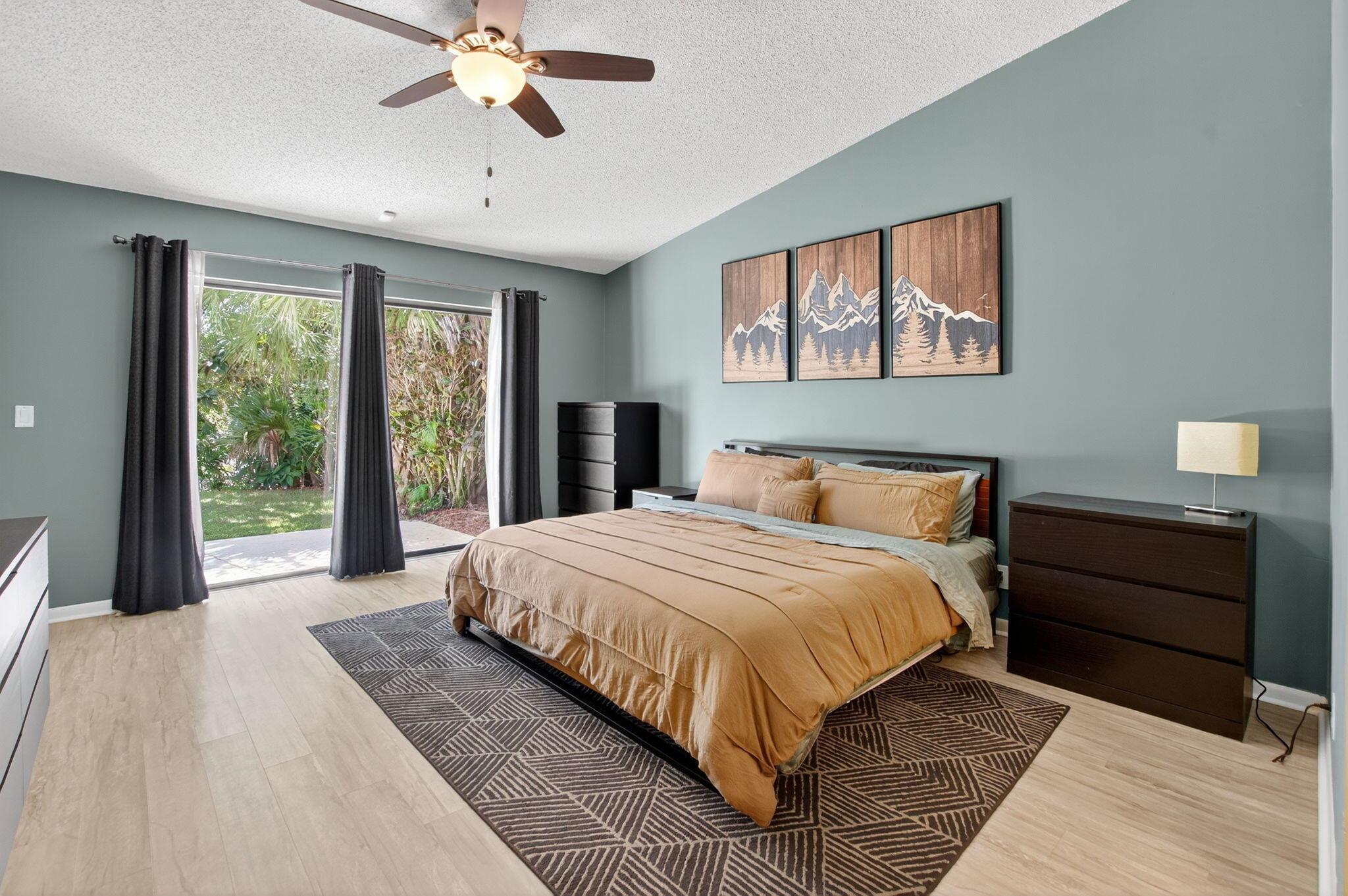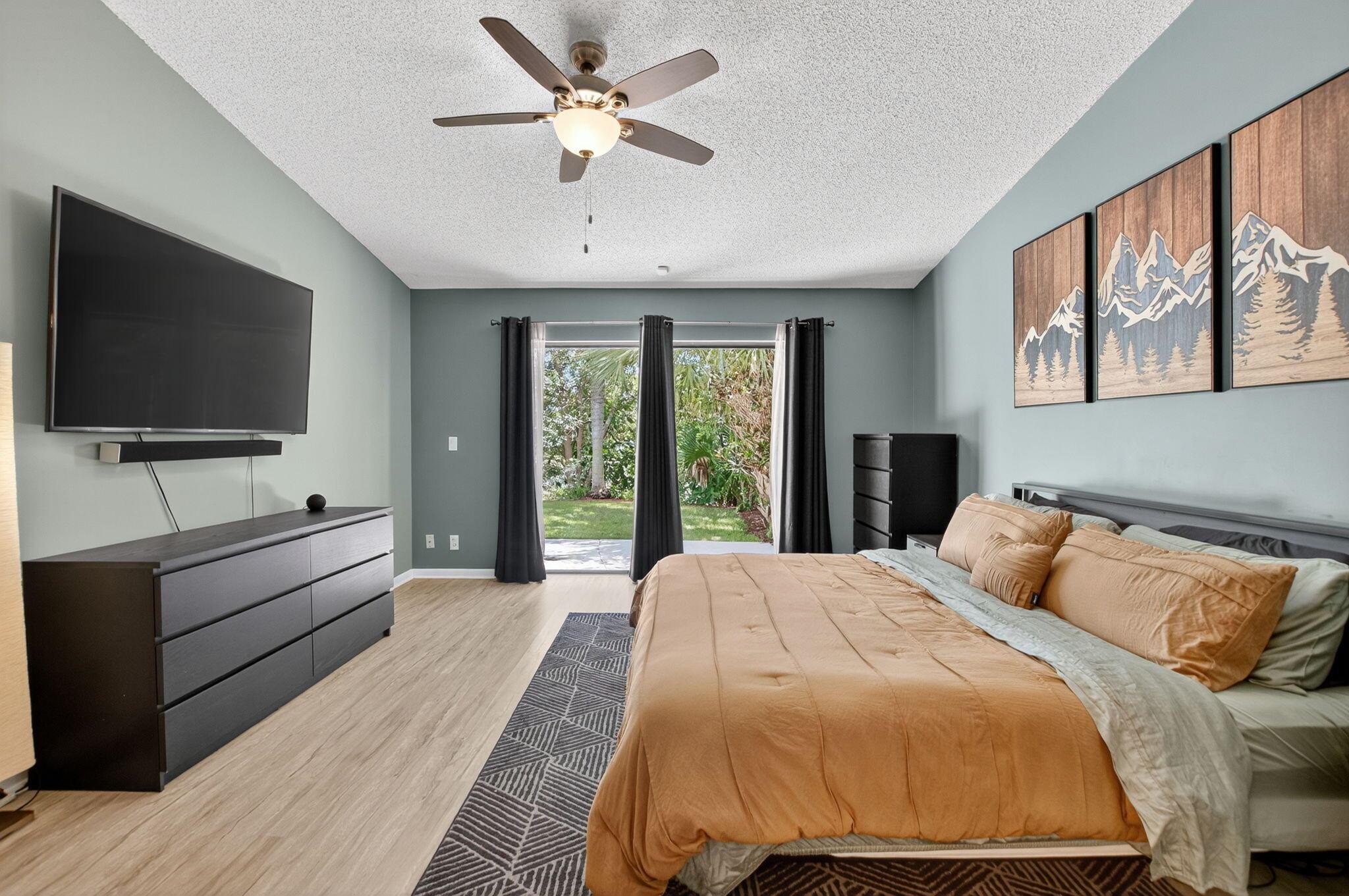 Welcome to this beautifully maintained home in the all ages community of Baytree at the Meadows. This home features 2 large bedrooms, 2 full bathrooms, and a 2-car garage. Step inside to discover a bright and open layout with vaulted ceilings and plenty of natural light. The kitchen boasts updated stainless steel appliances and ample counter space, perfect for cooking and entertaining.The main bedroom offers a peaceful retreat with a walk-in closet, ensuite bathroom, and sliding glass doors that open to the serene backyard. The guest bathroom has been beautifully renovated Step outside to your own private oasis--complete with a large screened-in patio, a firepit, new sod (2025), and a tranquil canal view. This is the perfect backyard for relaxing or entertaining.