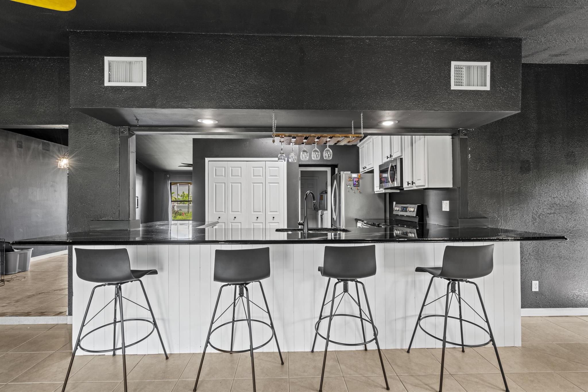 Sitting on nearly half an acre (0.46 acres) in a prime location just off Gatlin, this 3-bedroom, 2-bath home offers incredible outdoor living and unbeatable convenience. Enjoy a spacious backyard with RV parking, a storage shed, a deck with an outdoor kitchen, and a relaxing jacuzzi, perfect for entertaining or quiet evenings at home. Inside, you'll find a great layout and a brand-new roof for peace of mind. The popcorn ceilings have already been removed, and while the current all-black paint creates a dramatic look, it's an easy update for your own style. Giving you the opportunity to make this home truly yours without major renovations.With a double lot, spacious yard, and a family-friendly neighborhood, this property blends privacy, location, and potential in one unique package.