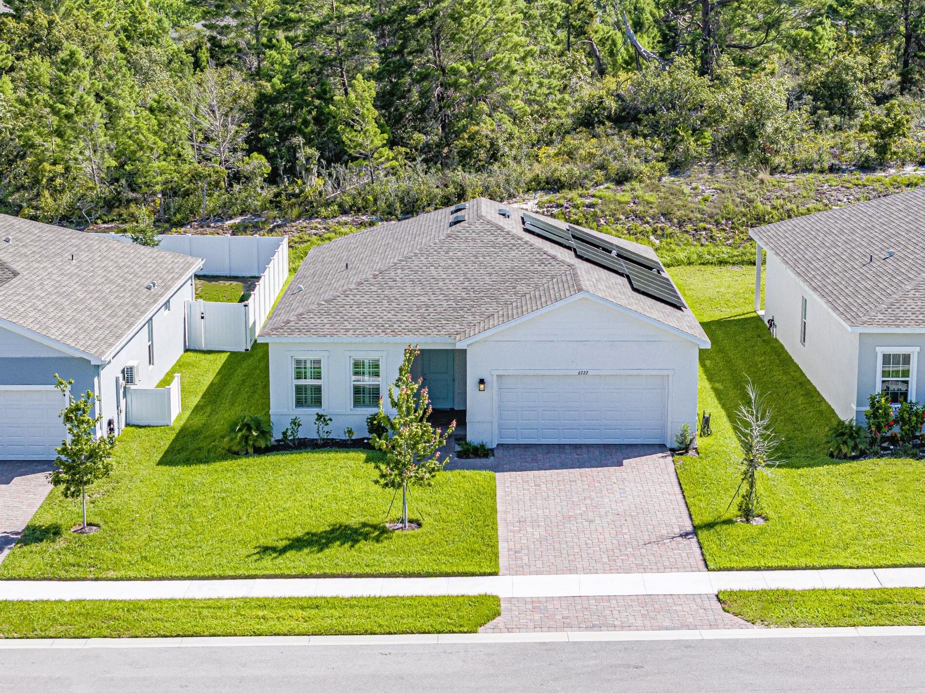 Welcome to 6722 Rumine Circle, ideally situated on the Atlantic Coastal Ridge--one of the highest natural elevations in beautiful Vero Beach, Florida. This stunning 2024-built home offers peace of mind and modern convenience with solar and brand-new everything: A/C, water heater, impact windows and doors, plantation shutters, and a 9-year structural warranty still in place. Located in the highly desirable, resort-style community of Lost Tree, residents enjoy access to a vibrant array of amenities designed for active living and relaxation.