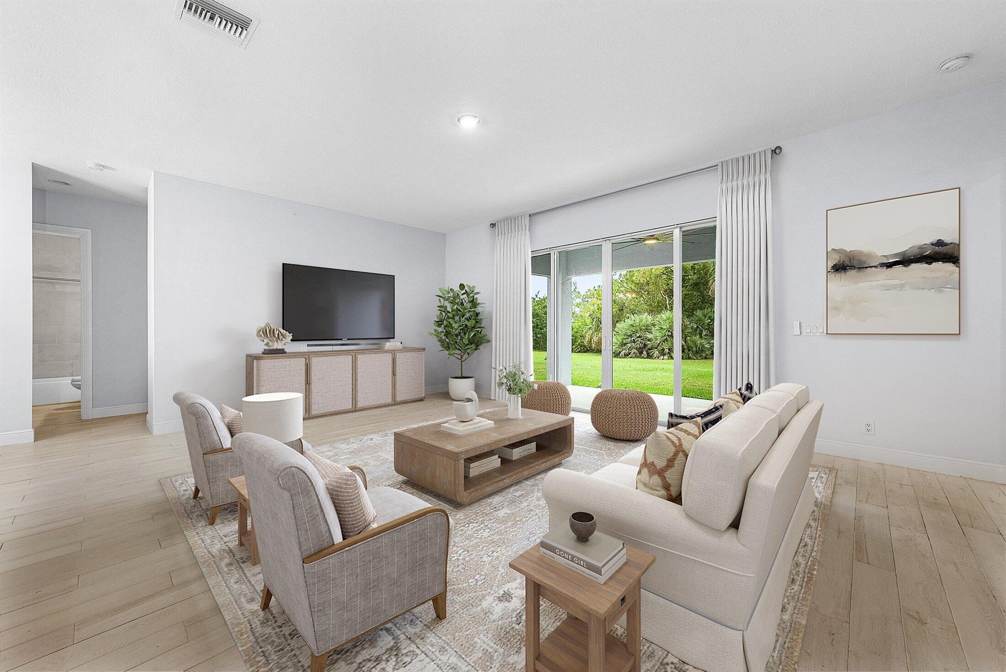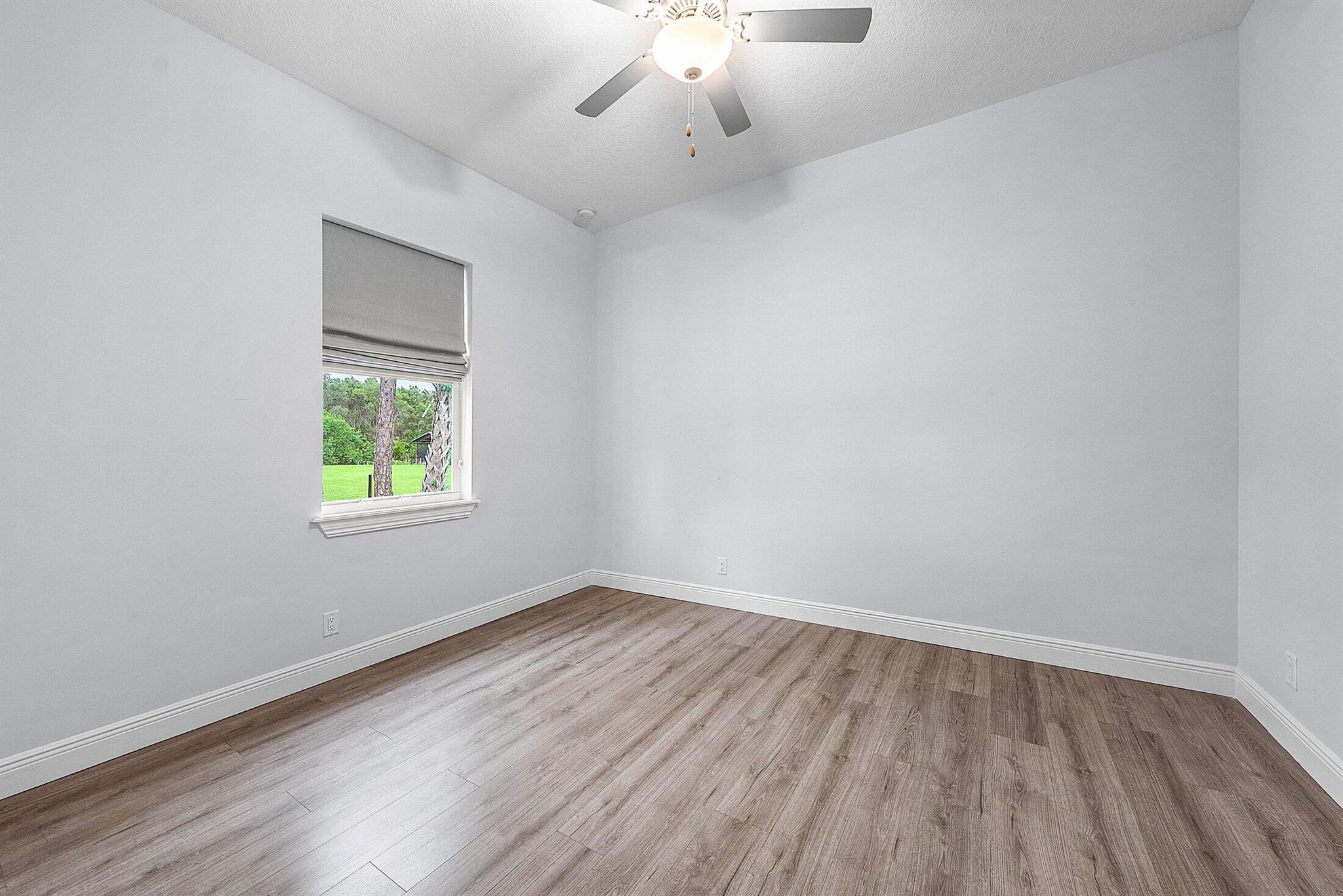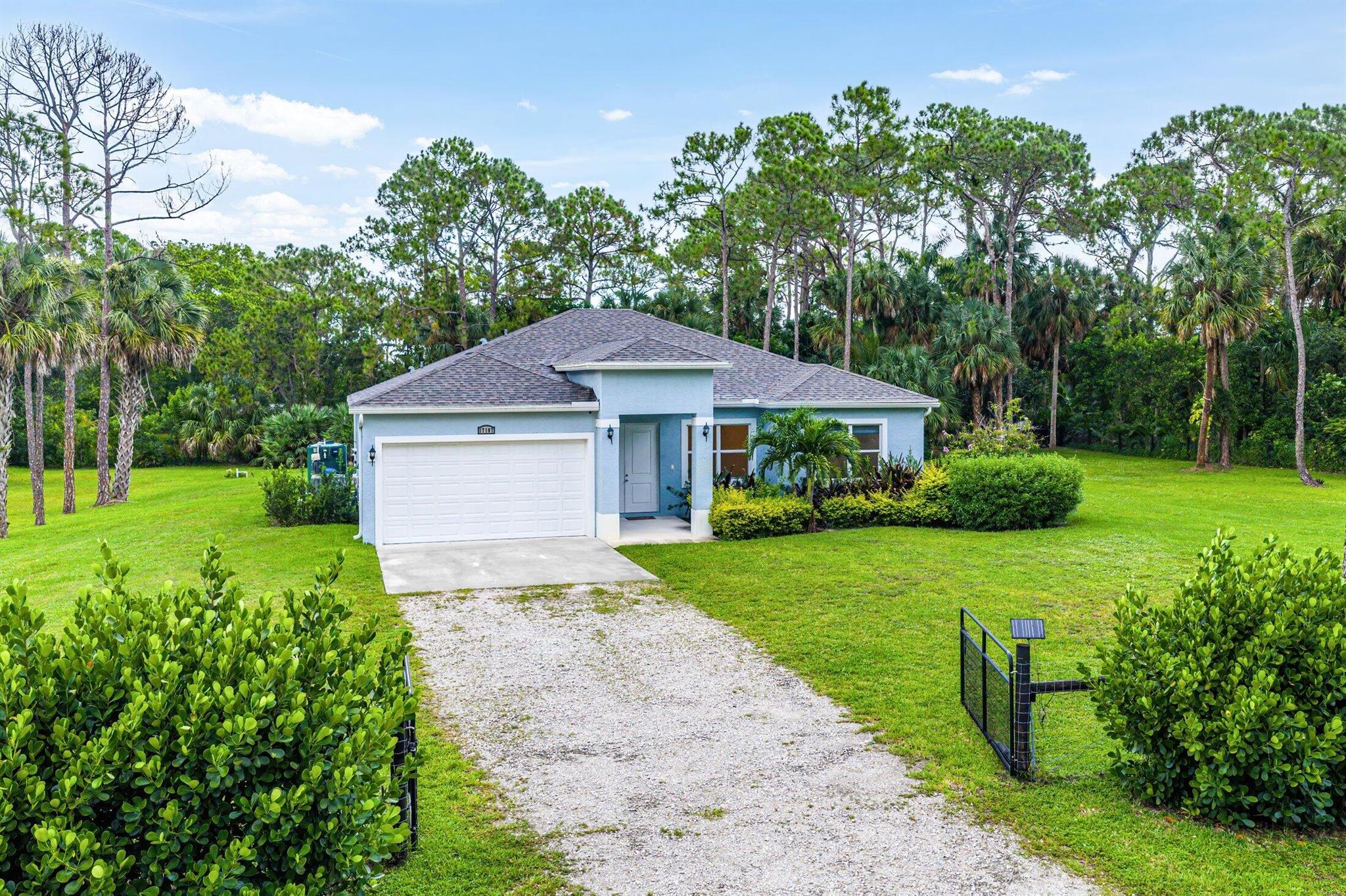 WELCOME HOME This well appointed 2022 built gem is resting on a premium 1.15 acre lot and boasting 4 true bedrooms, 2 full baths, 2 car garage, upgrades galore, hurricane impact windows and doors throughout and this beauty is in a peaceful location! ENTERING you will discover that this home is on a high and dry lot with no pond and fully fenced. The covered entry brings you inside where you are greeted by 10' volume ceilings, high-end flat wall finish, porcelain and luxury vinyl flooring, abundance of natural lighting and gorgeous kitchen that features; a stainless steel appliance package, quartz counter tops, lovely backsplash, spacious island with bar, shaker style cabinetry with two pantries, breakfast nook and great room that overlooks the expansive green space. (CLICK)