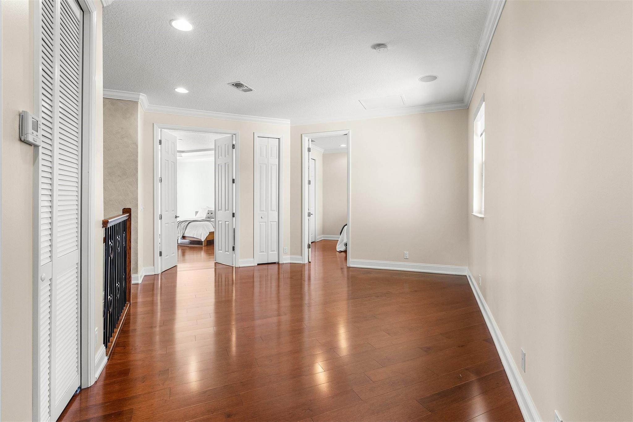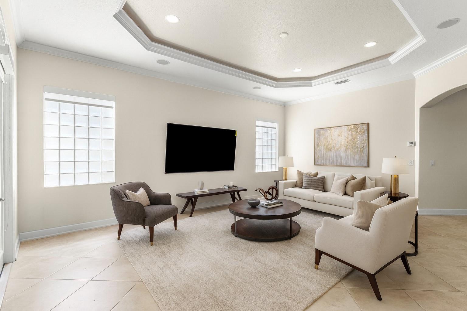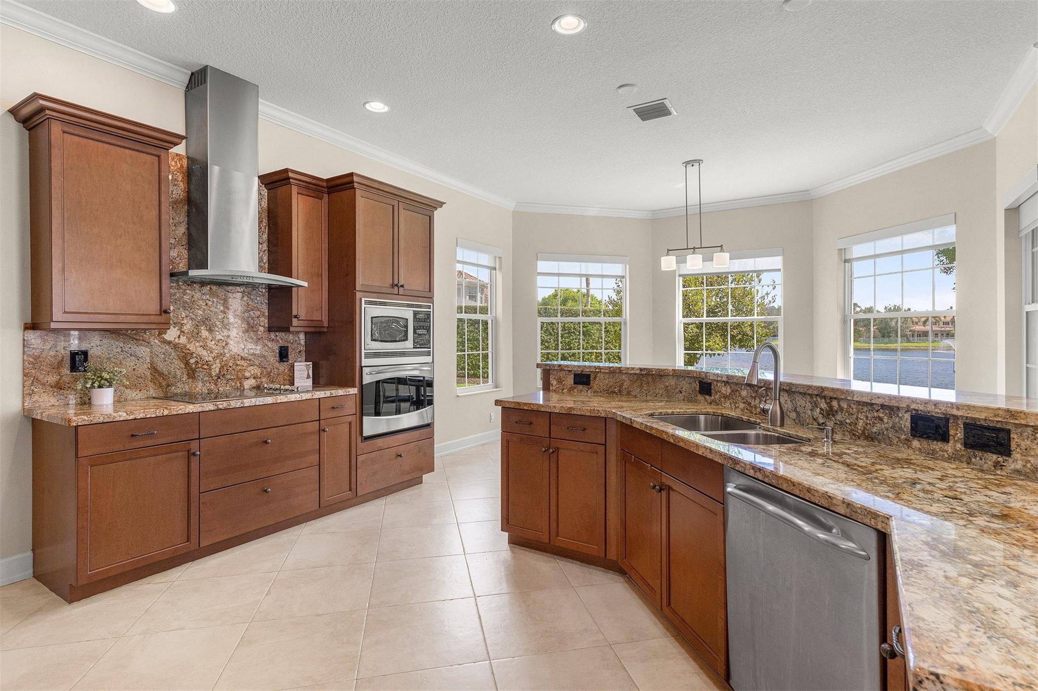 Stunning 5-bedroom, 4.5-bath lakefront home in a gated community with resort-style amenities. Enjoy wide water views and a light-filled layout featuring ceramic tile floors, knockdown ceilings, raised panel doors, and elegant Colonial trim. The gourmet kitchen offers European-style cabinetry, granite countertops, and stainless steel appliances. Upstairs, the spacious primary suite boasts a private lakefront balcony, custom closets, a sitting nook, and a spa-inspired bath with dual sinks, soaking tub, and separate shower. Generously sized bedrooms and open living areas make this home perfect for both everyday living and entertaining.