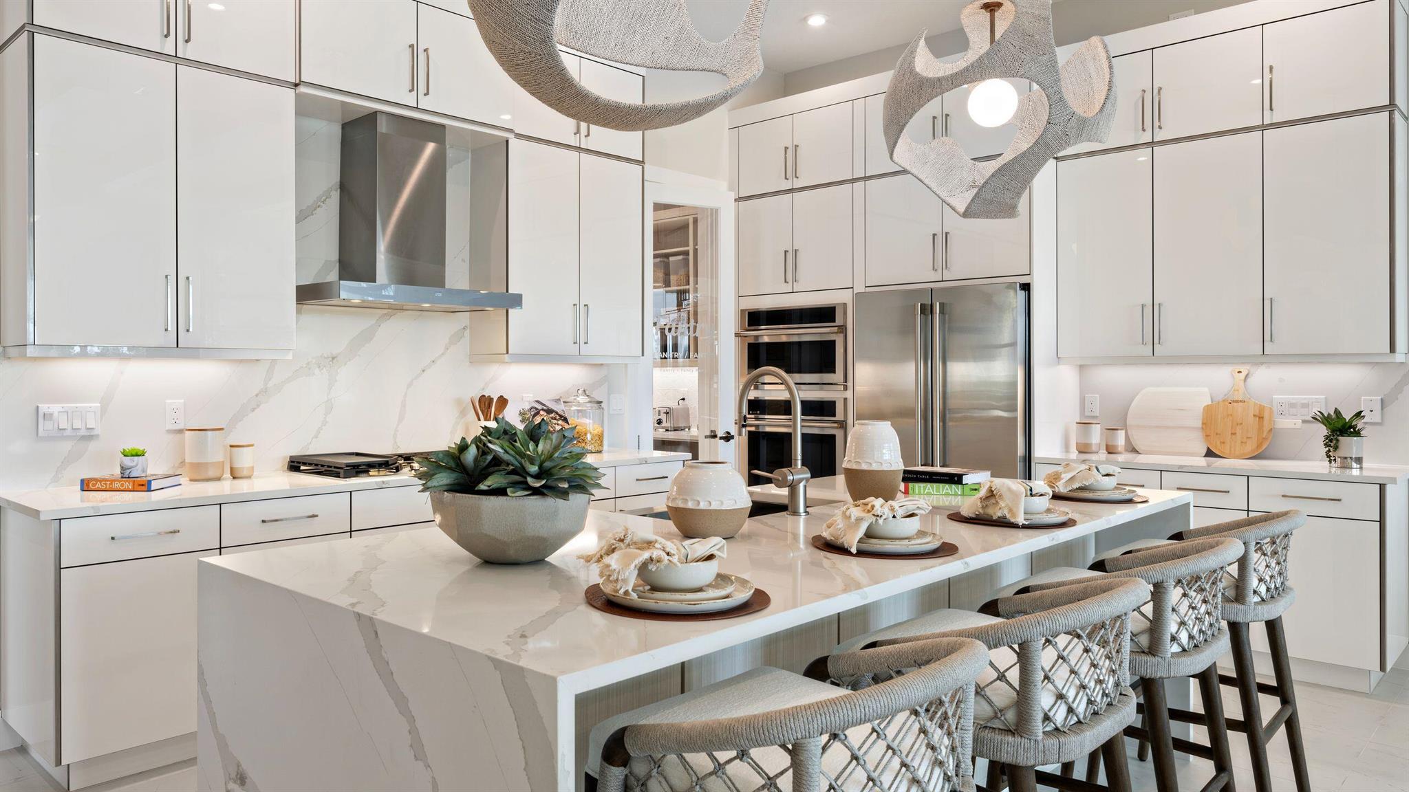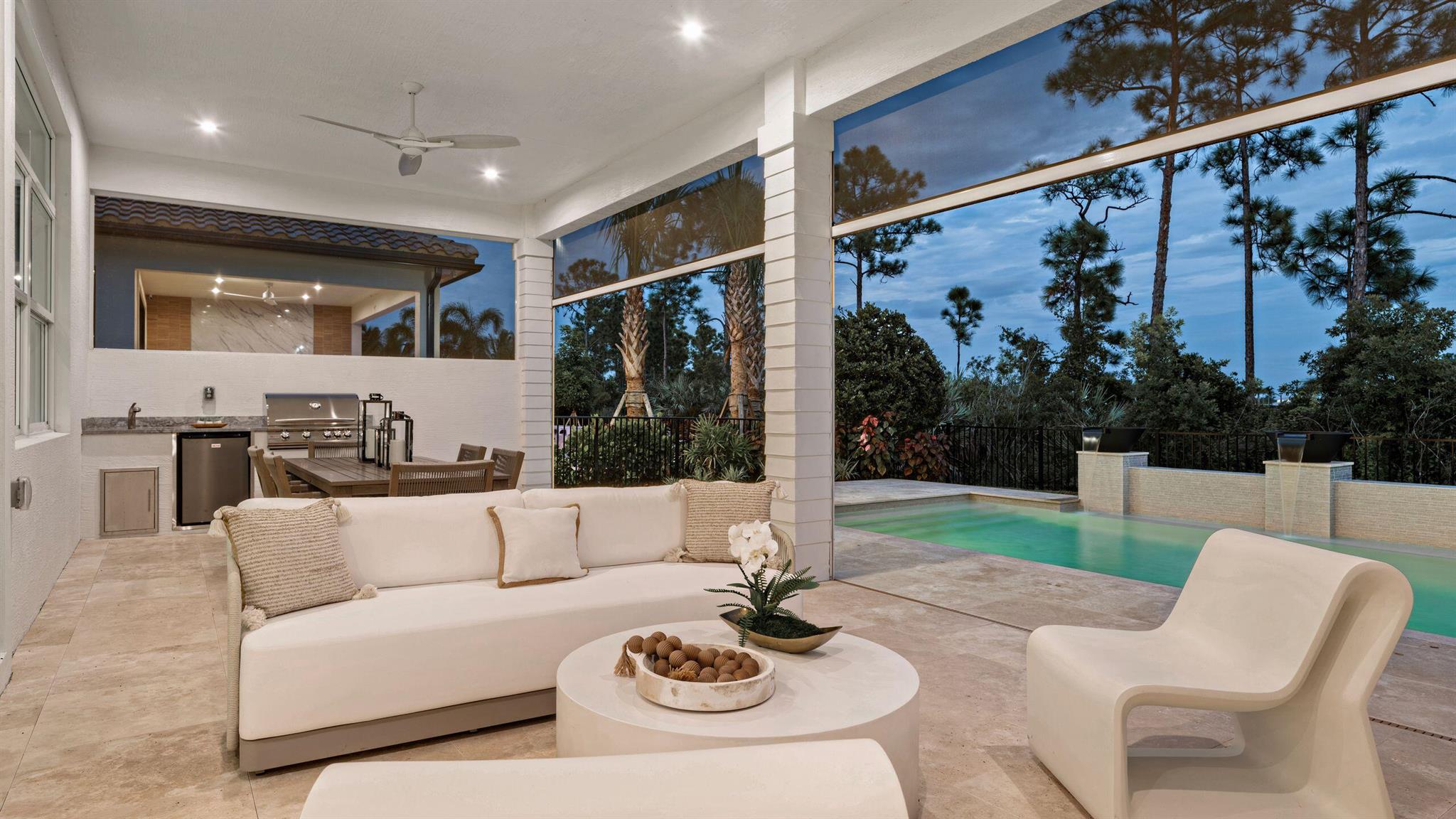 *NEW CONSTRUCTION* Fully Furnished, Decorated Paige Model for sale. This professionally designed and decorated builders' model is being offered for sale with everything you see included. A custom pool overlooking a preserve view, within the gated community of L'Ambiance. This Paige model, built by Kolter Homes has custom trim work and lighting throughout the home. A built-in closet and built-in pantry, as well as an upstairs bonus room with an additional bathroom and closet complete this 3-bedroom, 4 bathroom, 3-car garage, bonus room home. The owners' suite and lanai have been extended 4'. The lanai opens up through a 16' wide slider to a built-in outdoor summer kitchen and a custom pool.