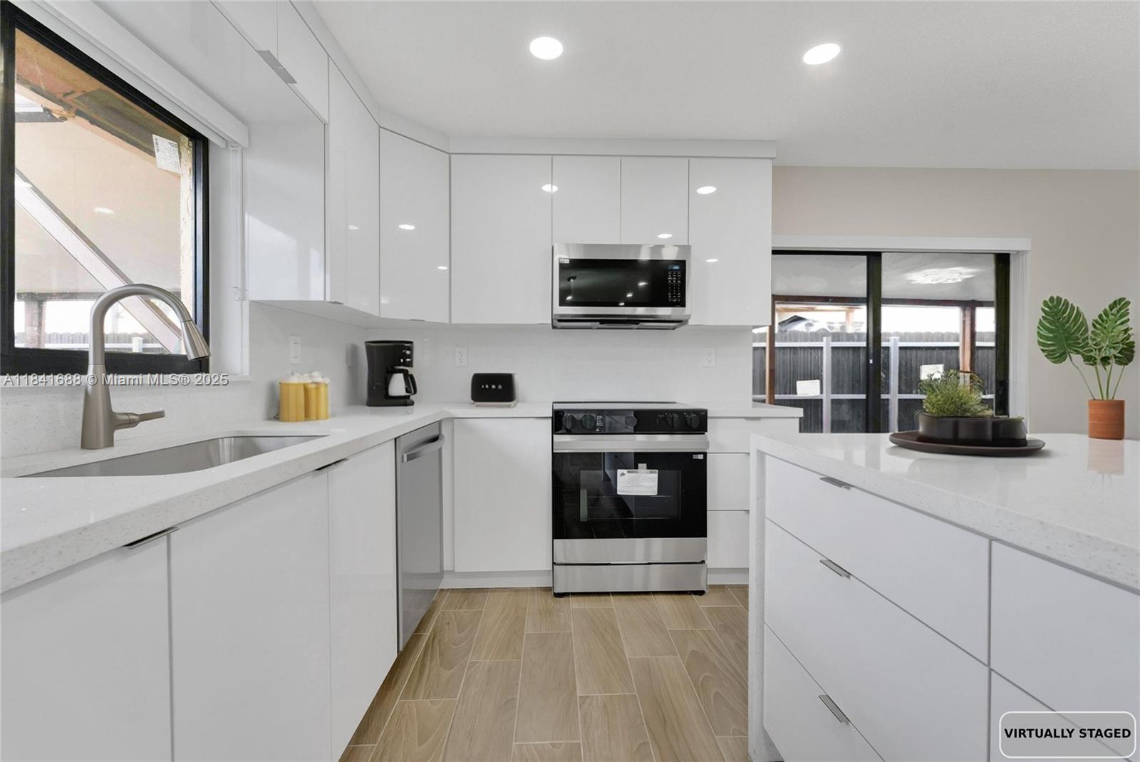 Welcome to this beautifully upgraded 4-bedroom, 2-bath home in desirable Country Lake Manors. Featuring over 2,400 sq ft, it offers a new Italian kitchen with quartz countertops, and bathrooms that have been fully remodeled with matching quartz finishes. Elegant ceramic tile flooring, impact windows, and a concrete tile roof (installed 1999) with approximately 10 years of life remaining complete this move-in-ready gem. The 7,492 sq ft lot includes a large patio with a concrete slab and aluminum roof—ideal for entertaining and with room to add a pool. Residents enjoy private parks and green spaces for only $38 quarterly. Conveniently located near top-rated schools, this is a rare opportunity in one of Hialeah’s most established neighborhoods.