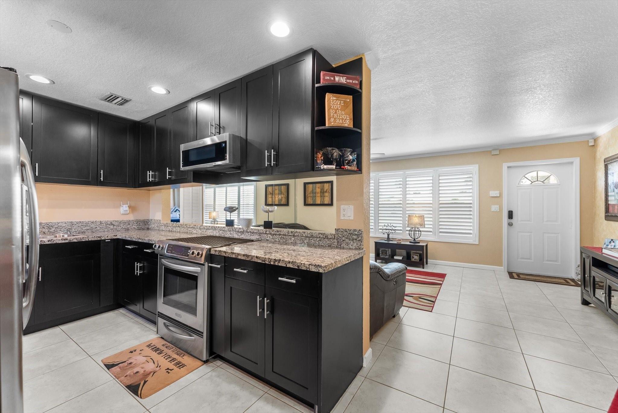 Brand-new roof! Perfectly updated & maintained! This beautiful home has an impressive curb appeal boasting an inviting front porch, oversized driveway, manicured landscape & a large front yard. The interior shines with plantation shutters, a beautiful kitchen with fine wood cabinetry, granite counters, & SS appliances. The spacious primary suite features a ensuite bath, large closet & wood-look tile floors. Out back, your private oasis awaits with a fenced yard, a full summer kitchen (refrigerator, grill, & sink), patio, gazebo, mosquito misting system, night lighting, & space for a pool, pets to roam, & kids to play. Bonus features include a sunny Florida room Impact windows/doors/some accordion shutters & roomy secondary bedrooms. RV, boat, trailer, etc. parking is allowed.