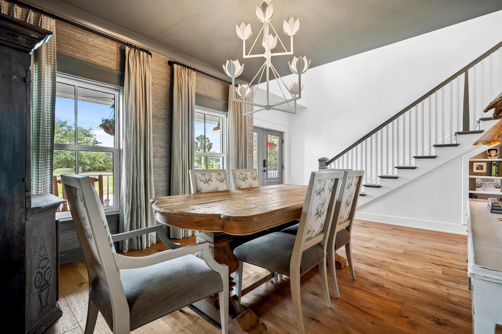 • Интерьер:BuiltInFeatures, ClosetCabinetry, DiningArea, SeparateFormalDiningRoom, DualSinks, EntranceFoyer, EatInKitchen, FamilyDiningRoom, FrenchDoorsAtriumDoors, HighCeilings, Pantry, SplitBedrooms, SeparateShower, WalkInClosets