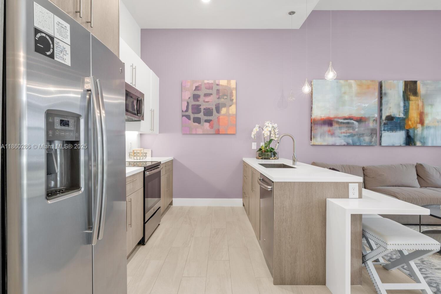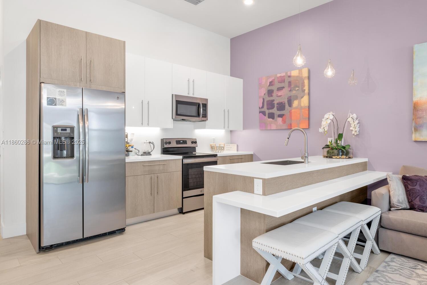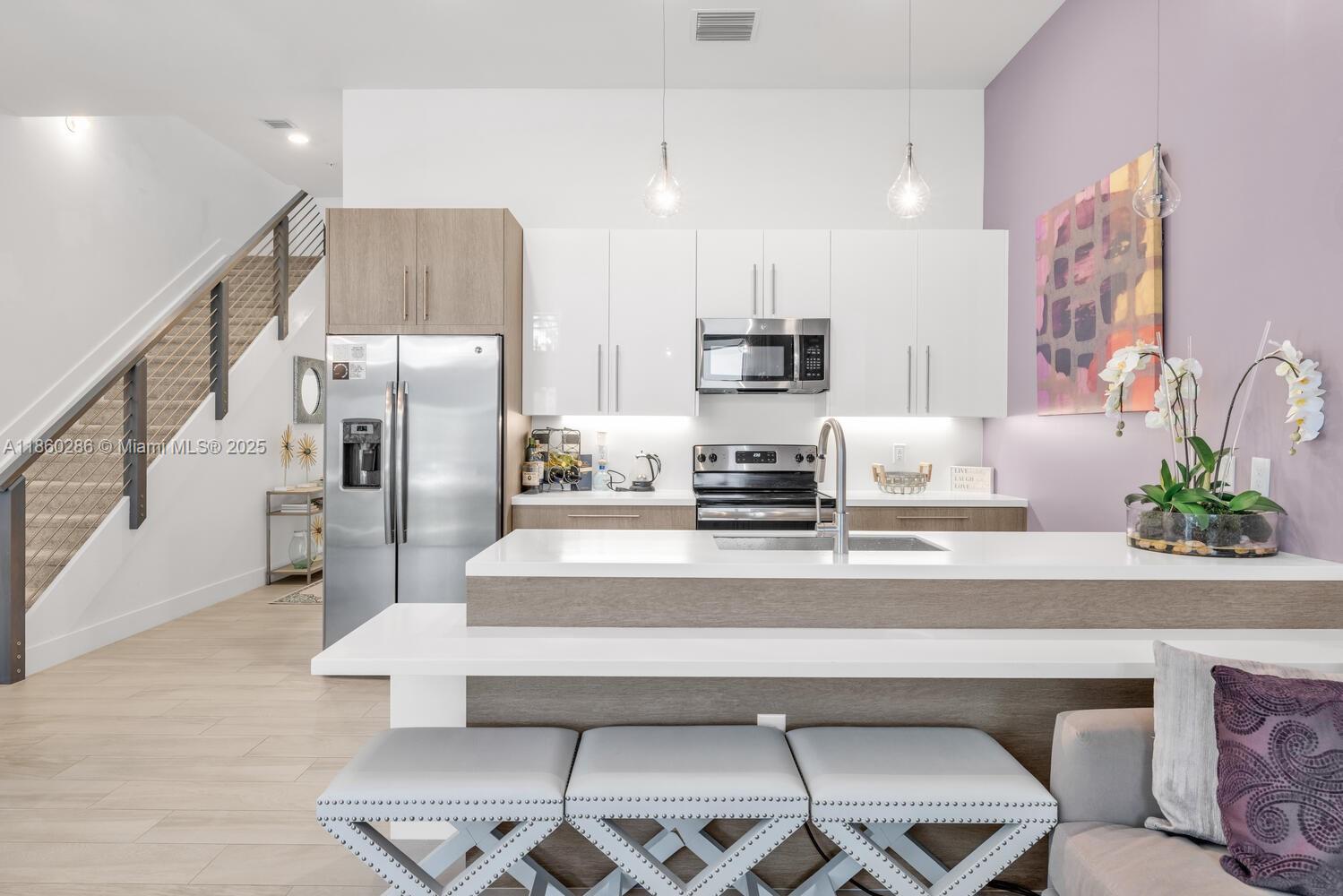 Beautifully maintained 3-bedroom, 2.5-bath townhome located in the highly sought-after gated community of Strata at Plantation. Built in 2019, this residence combines modern design with thoughtful details throughout. The gourmet kitchen boasts a two-tier countertop, stainless steel appliances, and opens seamlessly to the bright and spacious living and dining areas. Upstairs, the primary suite offers a walk-in closet and spa-inspired bath, while two additional bedrooms provide comfort and flexibility for family, guests, or a home office. Additional features include tile flooring, impact windows and garage door, LED lighting, and a private balcony. Residents of Strata enjoy resort-style amenities including a pool, fitness center, dog park, and clubhouse—all in the heart of Plantation.