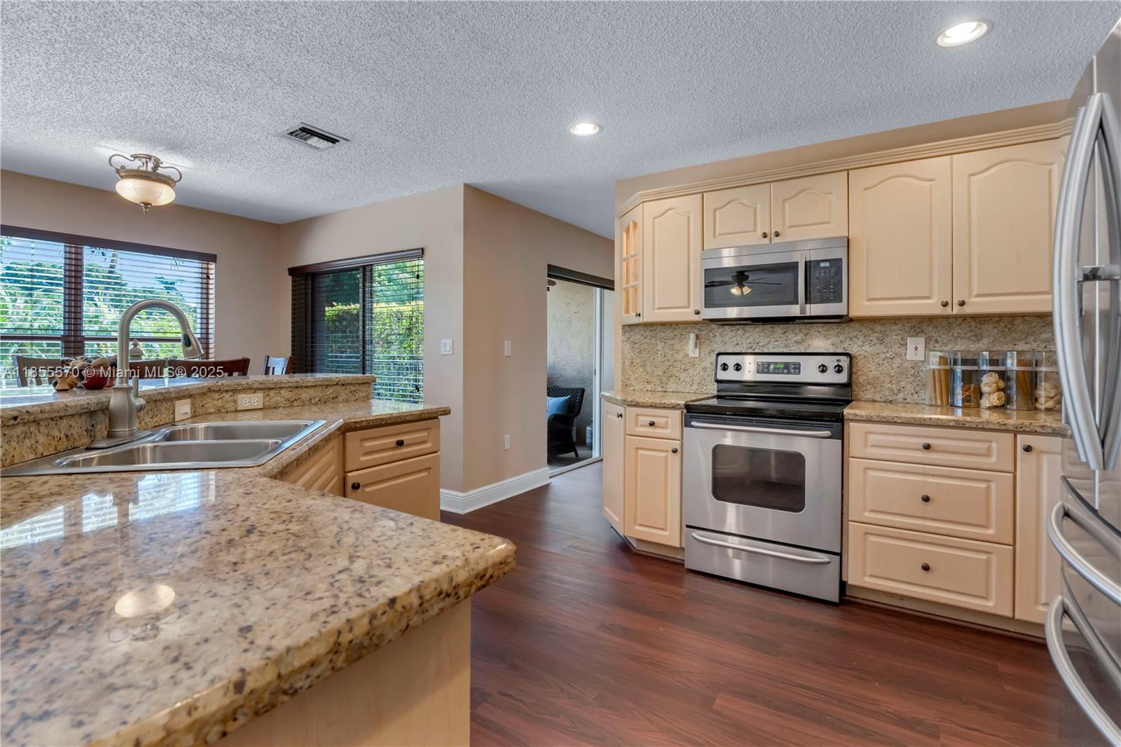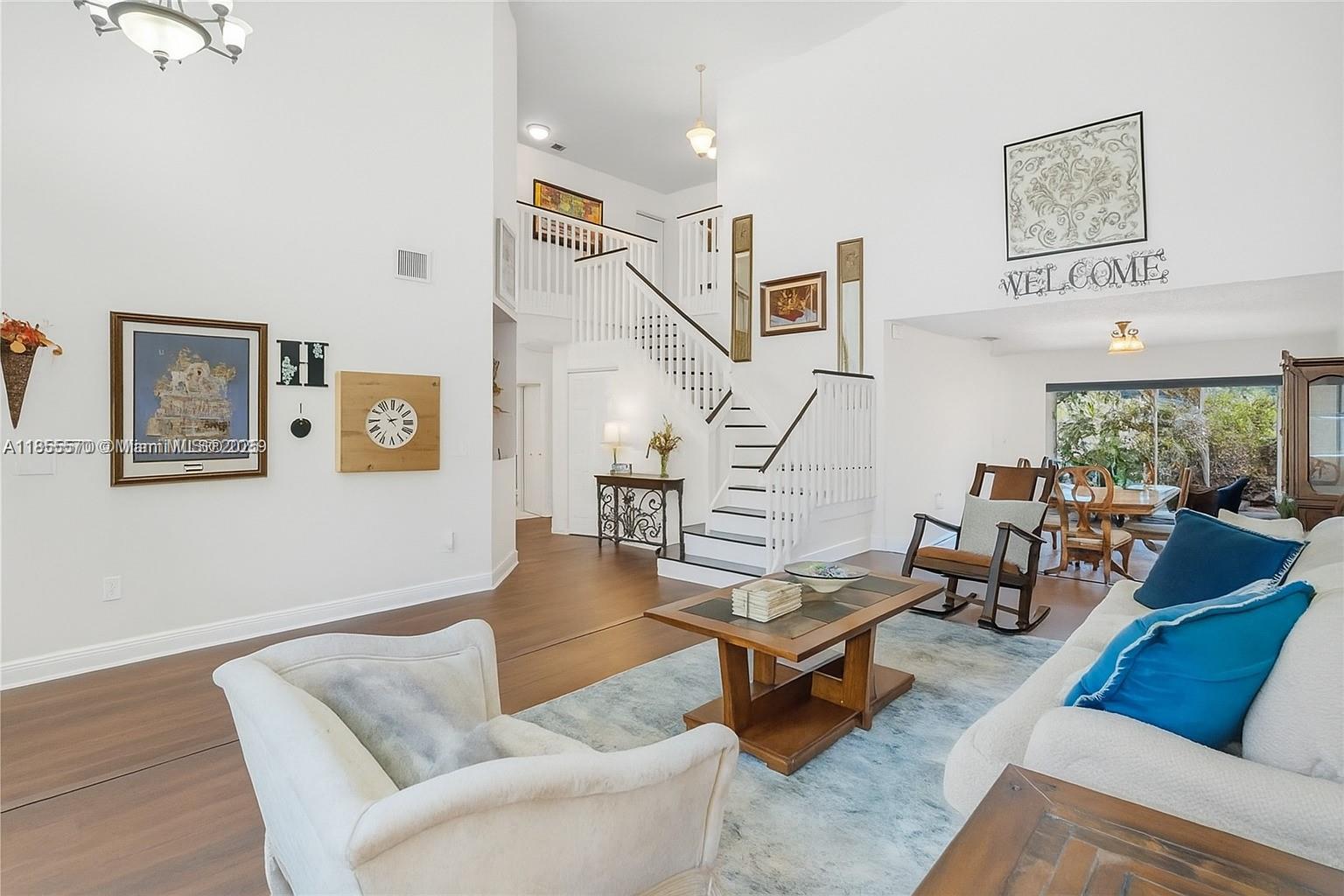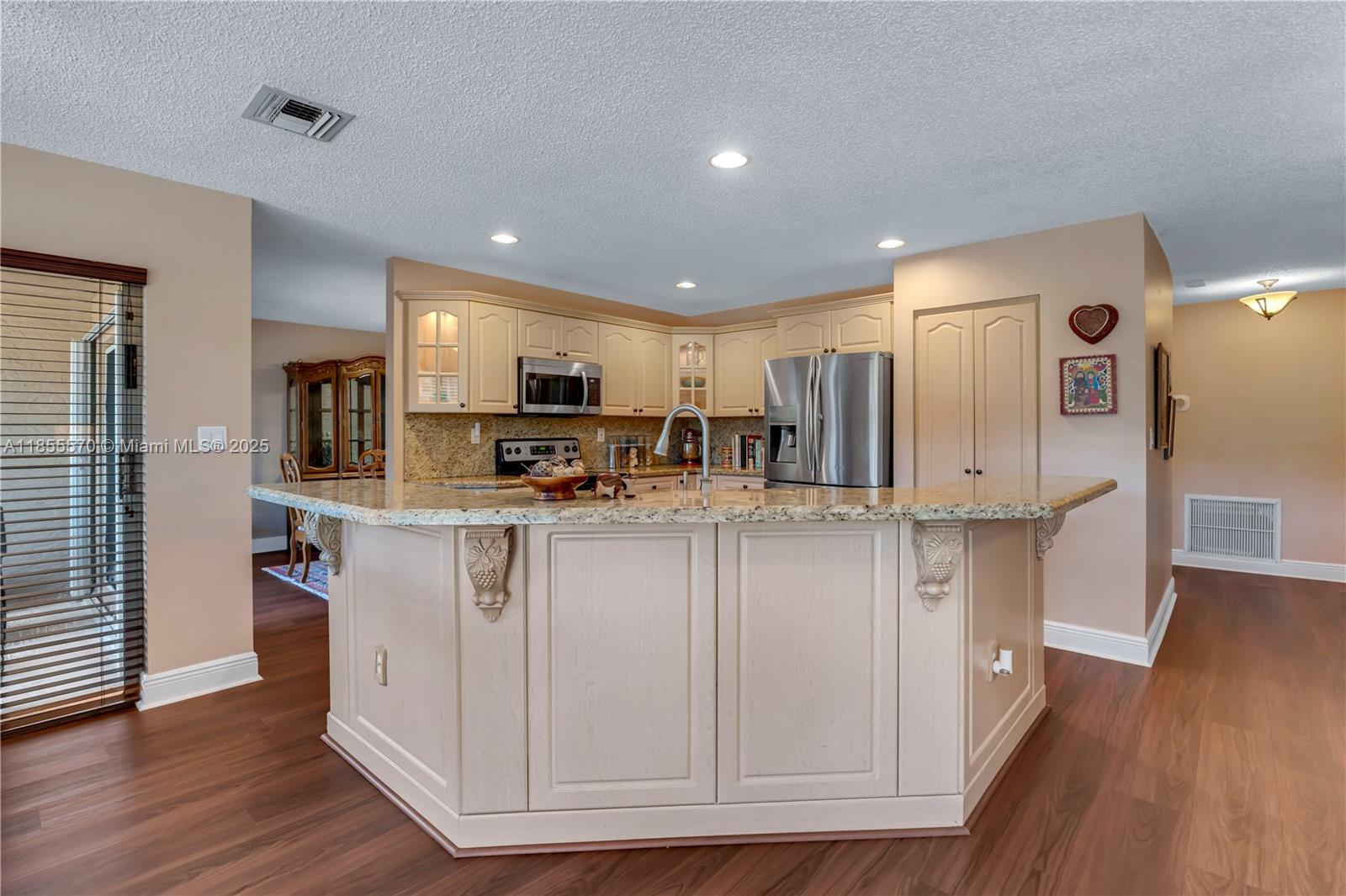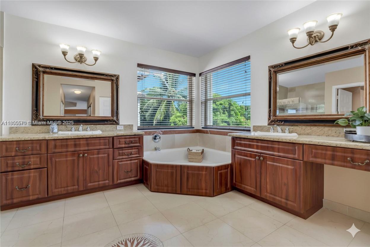 Welcome to this lovely 4-bedroom, 3-bathroom home in the desirable Marina Isles section of the guard-gated Silver Lakes community. You're welcomed by high ceilings and a peaceful lake view from the dining area. The kitchen offers granite countertops, stainless steel appliances, and plenty of space. Downstairs includes a bedroom and full bathroom, perfect for guests or a home office. Upstairs, the oversized master suite features walk-in closets and a spacious bathroom with double vanities, a Jacuzzi tub, and a walk-in shower. Two additional bedrooms share a Jack and Jill bathroom. The backyard is quiet and serene with a lake view and room for a pool. Enjoy community amenities like a clubhouse, multiple pools, and sport courts—all in a prime location near A-rated schools and shopping.