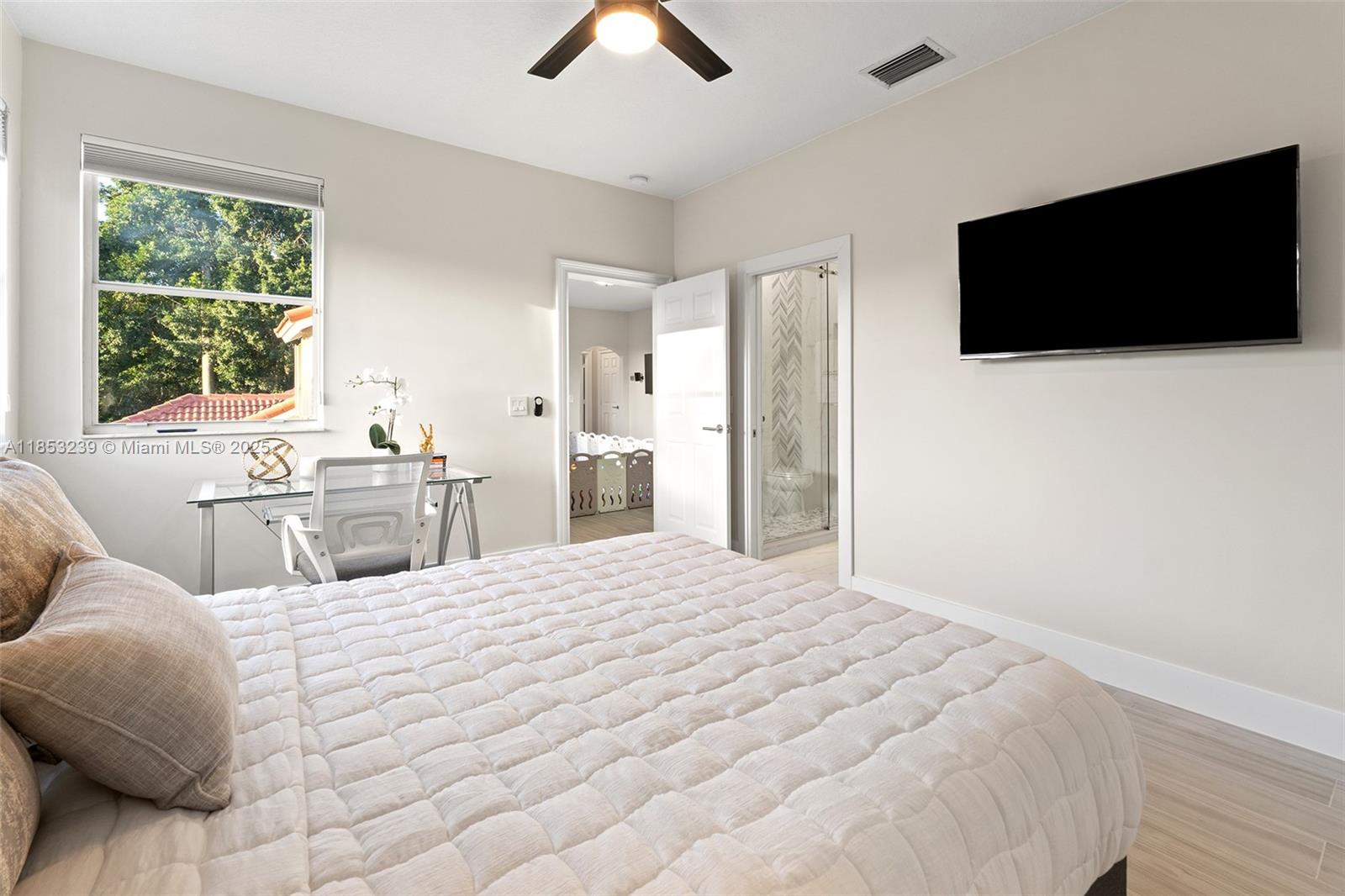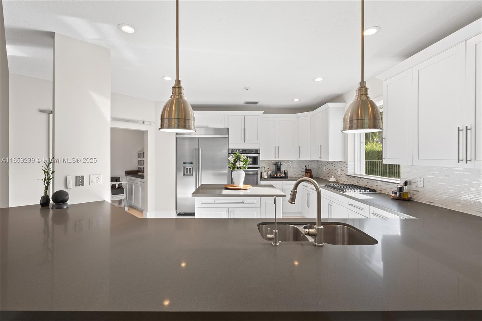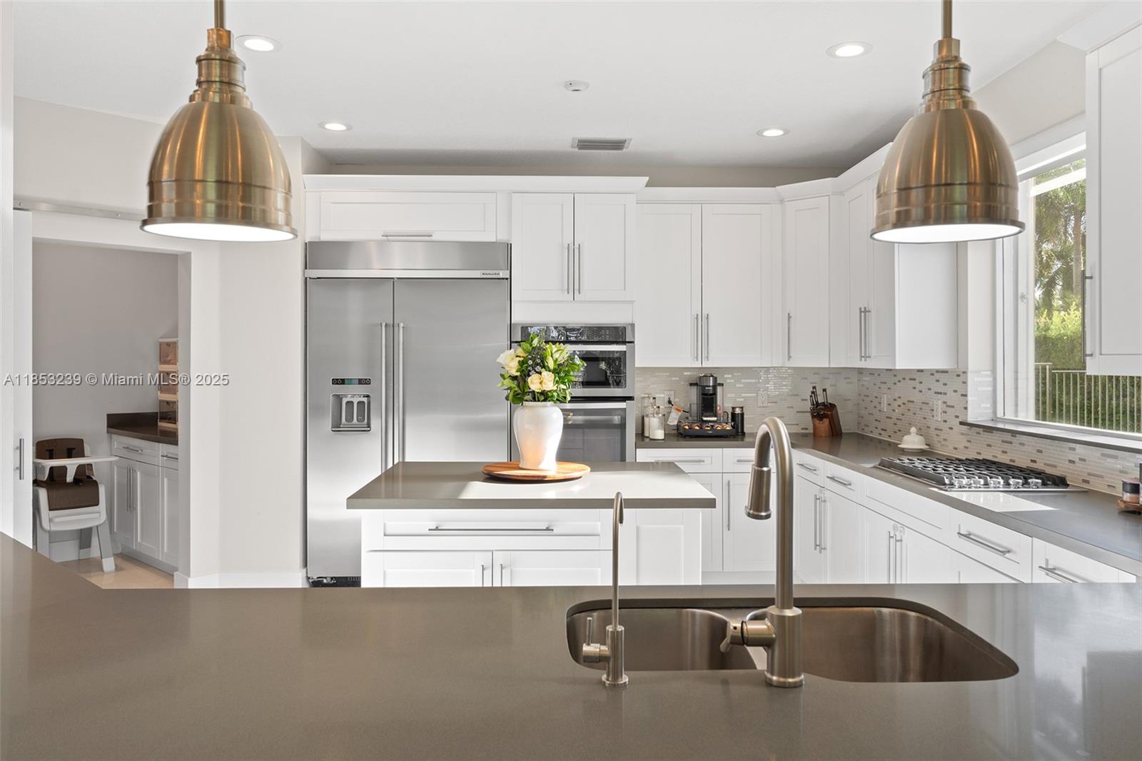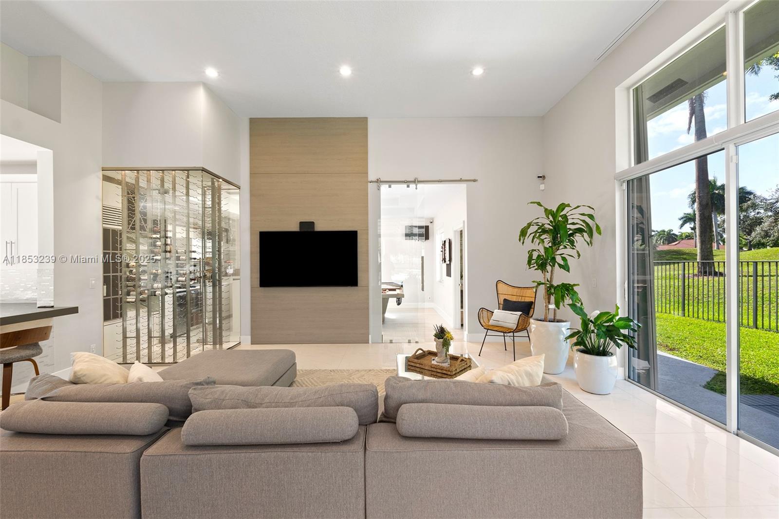 Welcome to Casa Solaris, a stunning custom home in Weston Hills filled w/ natural light, elegant finishes, & custom woodwork throughout. Enjoy golf course views framed by floor-to-ceiling windows & beautifully designed woodwork. Property offers 5 en-suite bedrooms w/ walk-in closets, a spacious office, & oversized clubroom w/ bar & climate-controlled 400-bottle glass wine cellar perfect to entertain. The primary suite offers pool views, a spa-like bath w/ soaking tub under a picture window, & a custom wood entertainment unit w/ vanity. Kitchen features white cabinetry & walk-in pantry. Includes laundry room, 3-car garage, heated saltwater pool w/ new tile & cover, renovated deck, summer kitchen w/ BBQ, 2019 roof, & full water purification + alkaline system. Near A+ schools.
