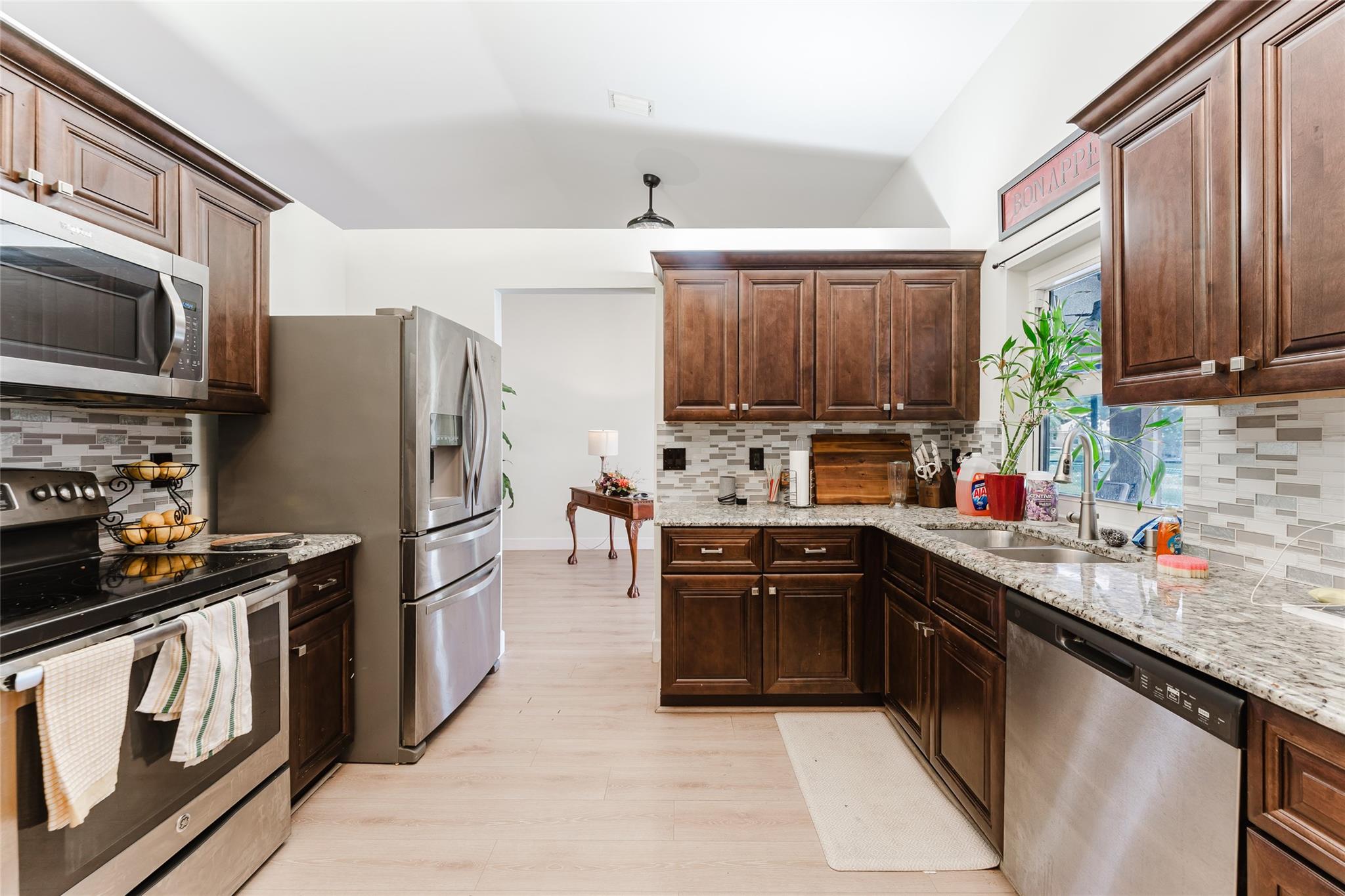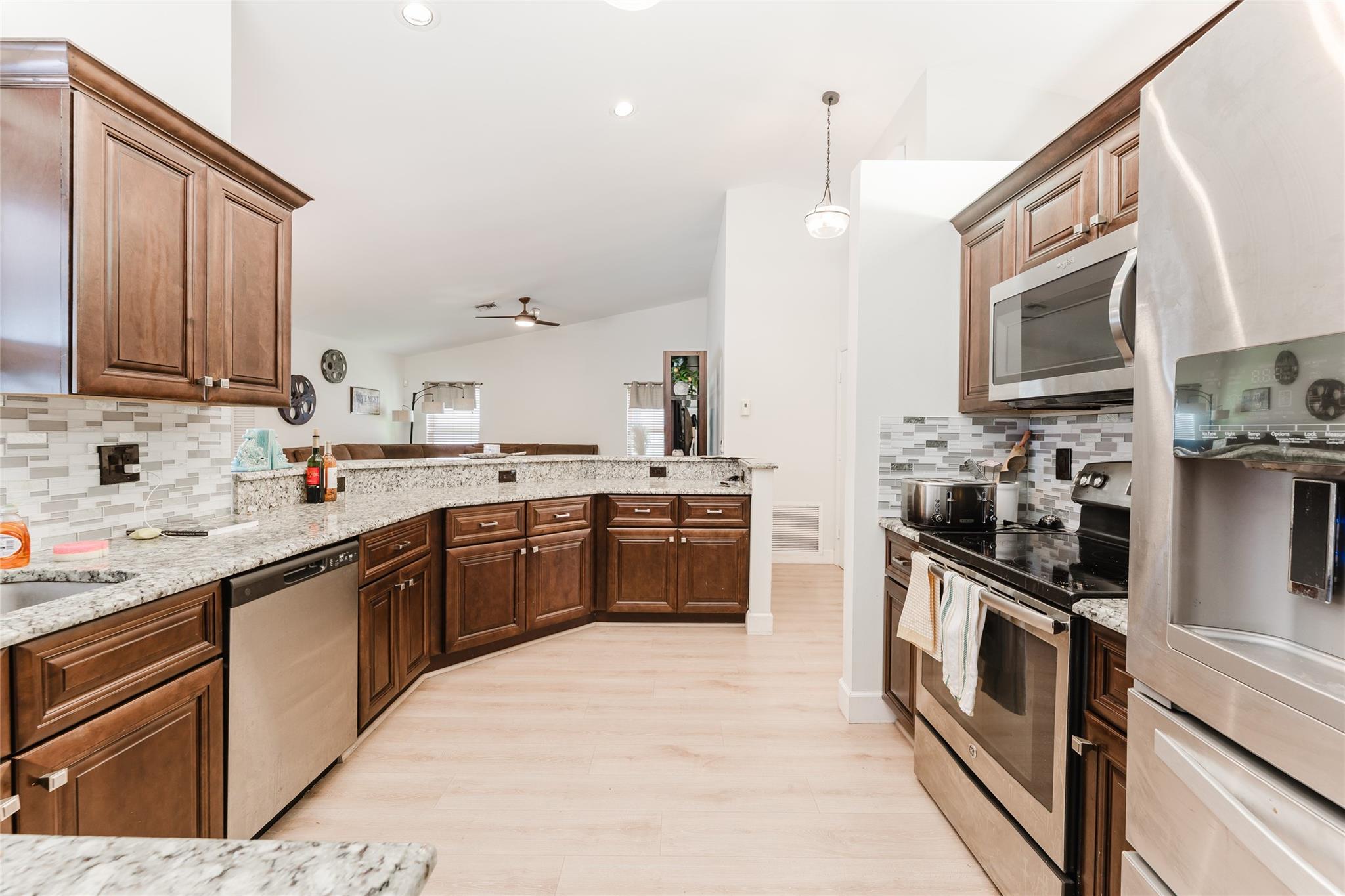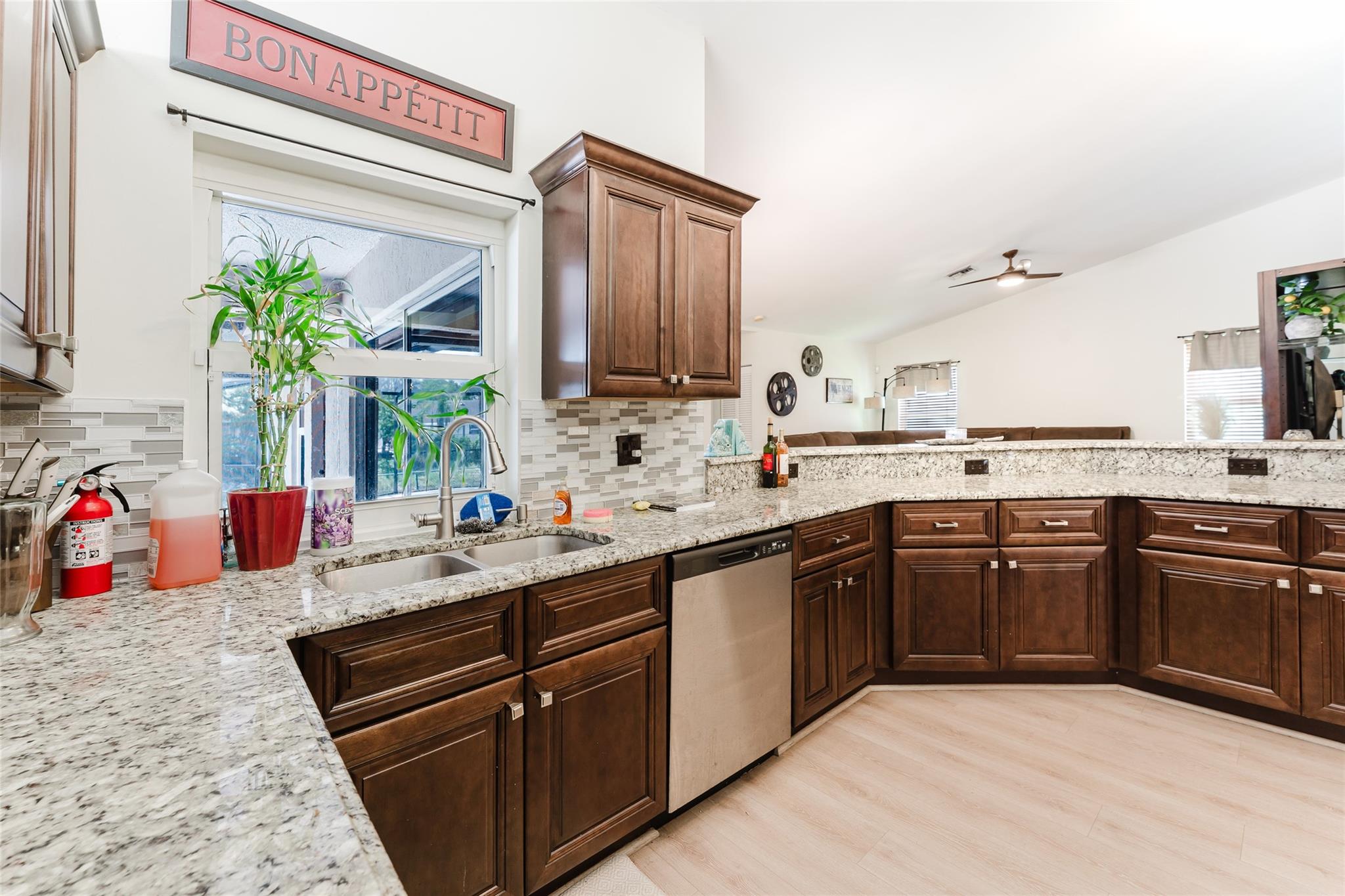 Beautifully remodeled waterfront screened-in pool home with all the bells & whistles!! Brand new roof!!! Vaulted ceilings, gorgeous open kitchen with stone & SS apps. Primary suite has custom closet, separate spa- shower & jetted tub. Windows are hurricane impact, seller is in process of making entire home ready for entire credit for insurance for your buyer., fenced yard, perfect for small children and/or pets. Great school district. & walk to local park.....................just waiting for your buyer to fall in love!!!!!