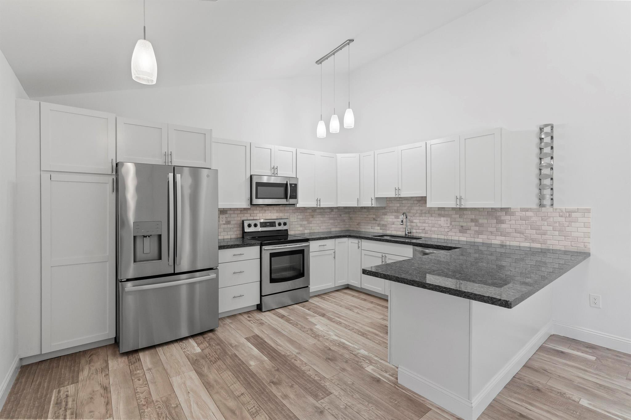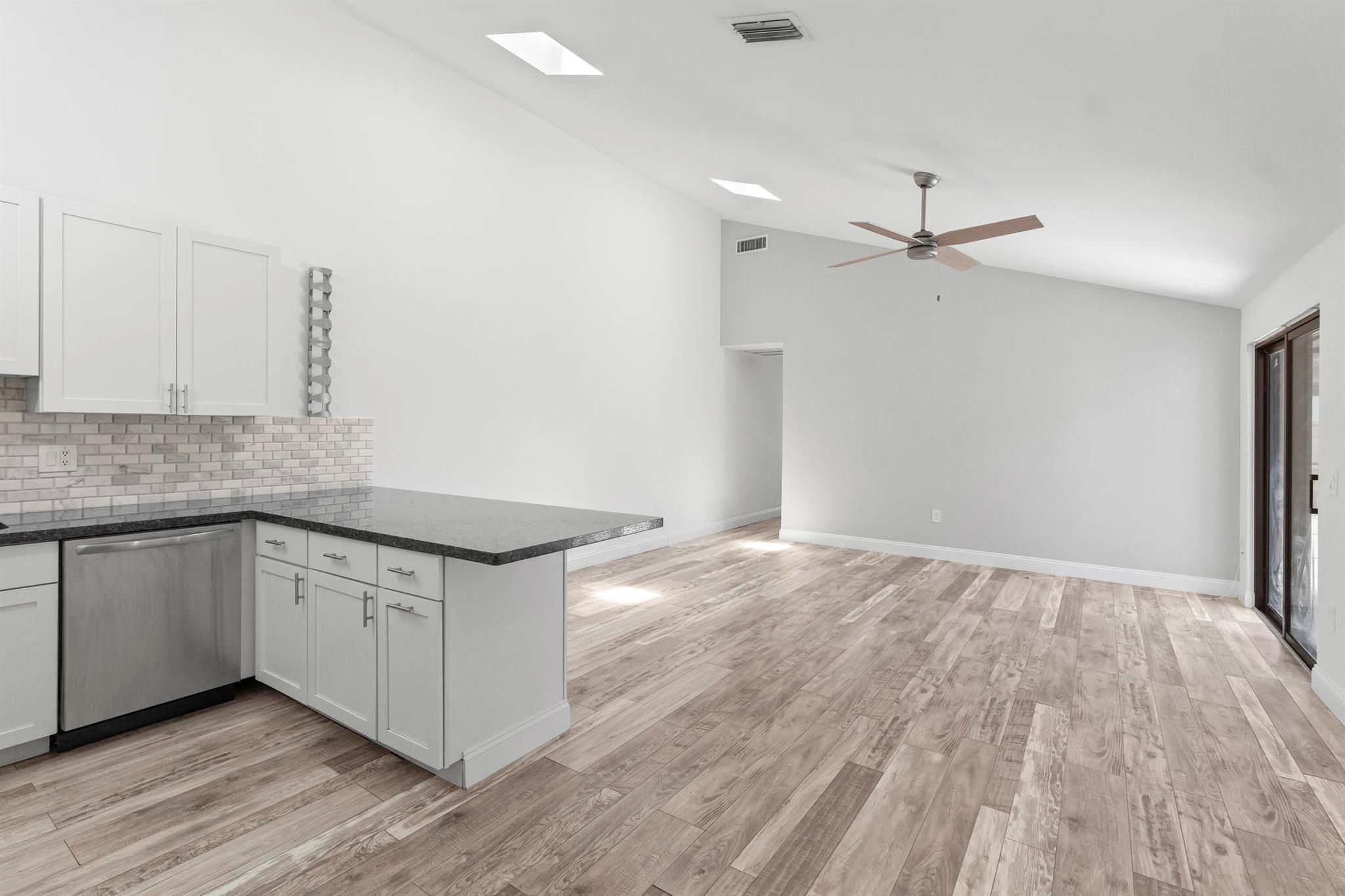 Step into your new home in the heart of Boca Raton! Enjoy the privacy and comfort of a single-family home in this move-in ready villa, located in the all-age community of Boca Gardens. With a split-bedroom layout, the master suite is privately situated on one side of the home with an upgraded bathroom featuring dual vanities, while the other two bedrooms are located on the opposite end for added privacy. Both the master bedroom and bedroom 3 have solar-tinted windows, and the home boasts all-new impact windows and doors (2023). The living area features soaring ceilings and skylights, filling the space with abundant natural light.