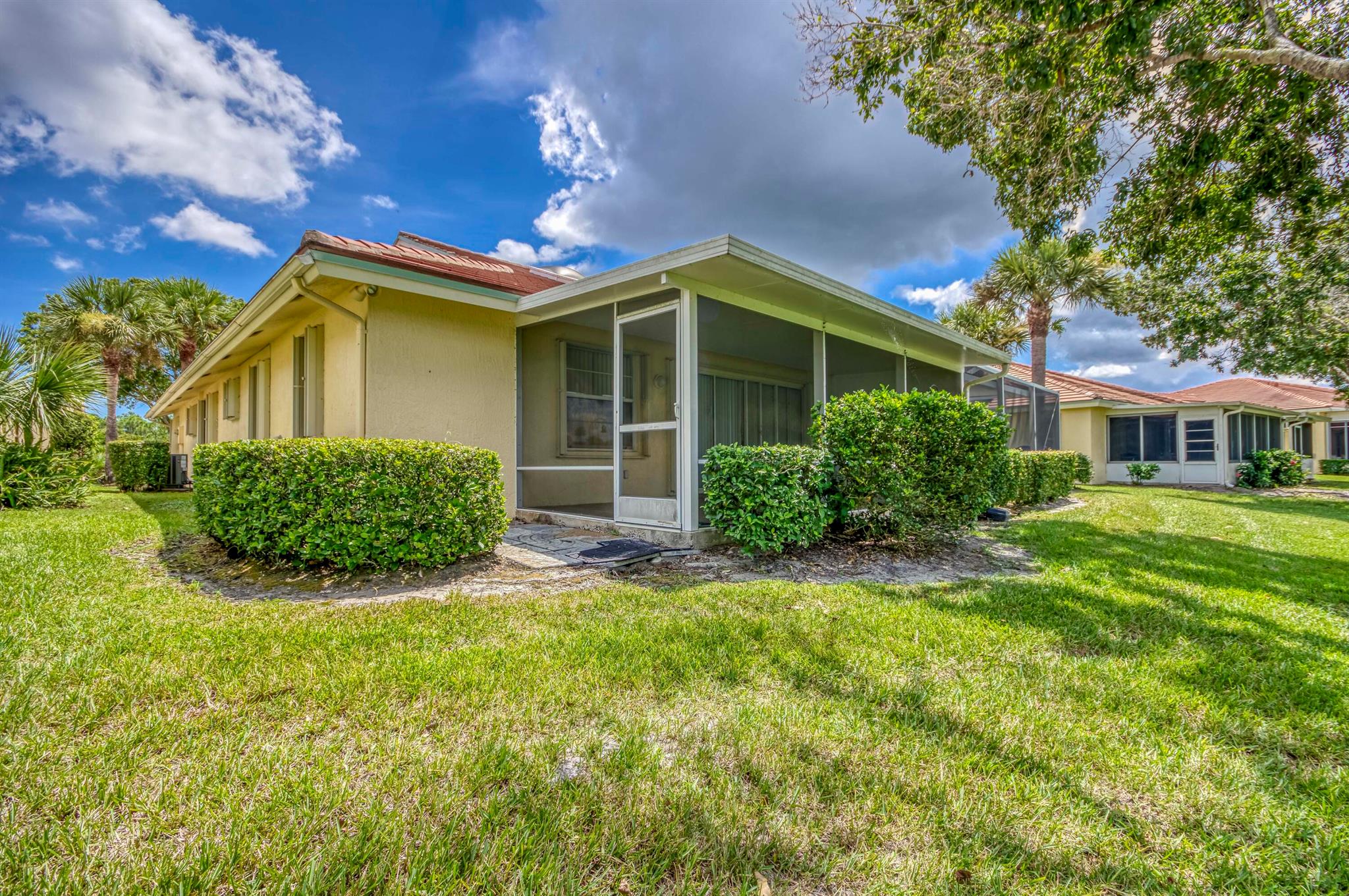 Well maintained lakefront villa in the highly sought after 55+ adult community of Whispering Sound in Palm City. This ''Chateau Green'' model is a 2/2 with 1 car garage and is one of the largest models in the community and one of the few that has a waterfront view. This home features a newer 2017 cement tile roof, newer water heater, a large screened patio overlooking the lake, accordion hurricane shutters, vaulted ceilings in living, dining, and kitchen areas, plus much more. The community offers a clubhouse, heated pool and spa, tennis, shuffleboard, and many activities. Schedule your private viewing today!