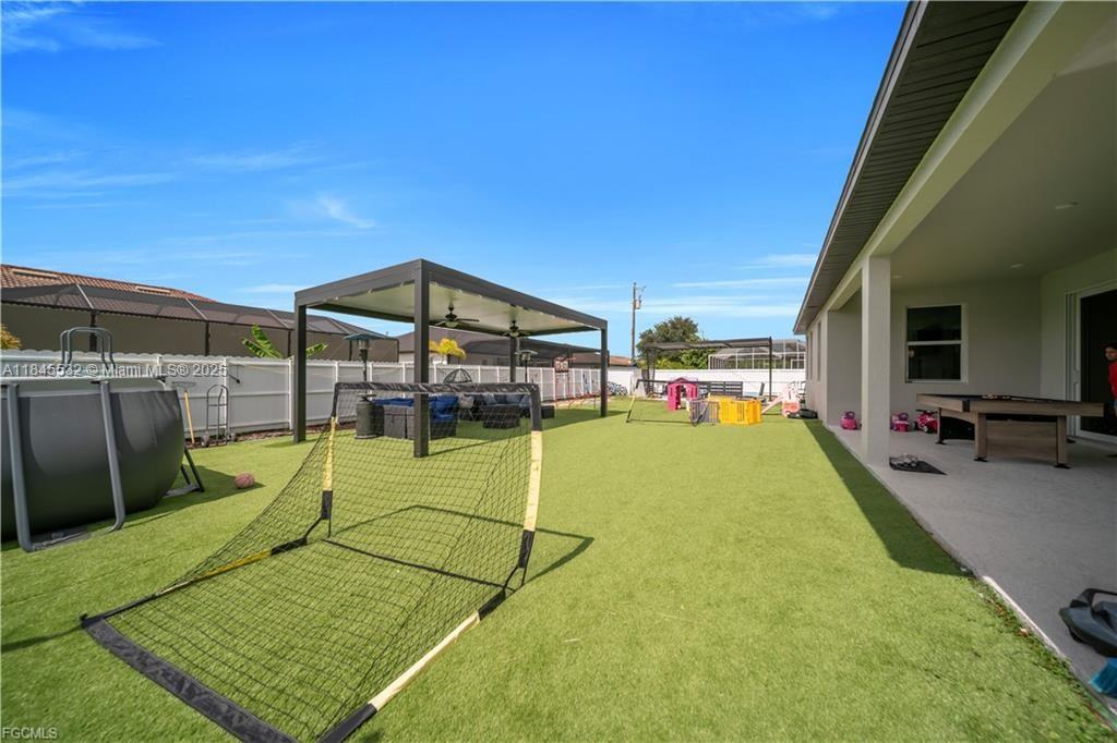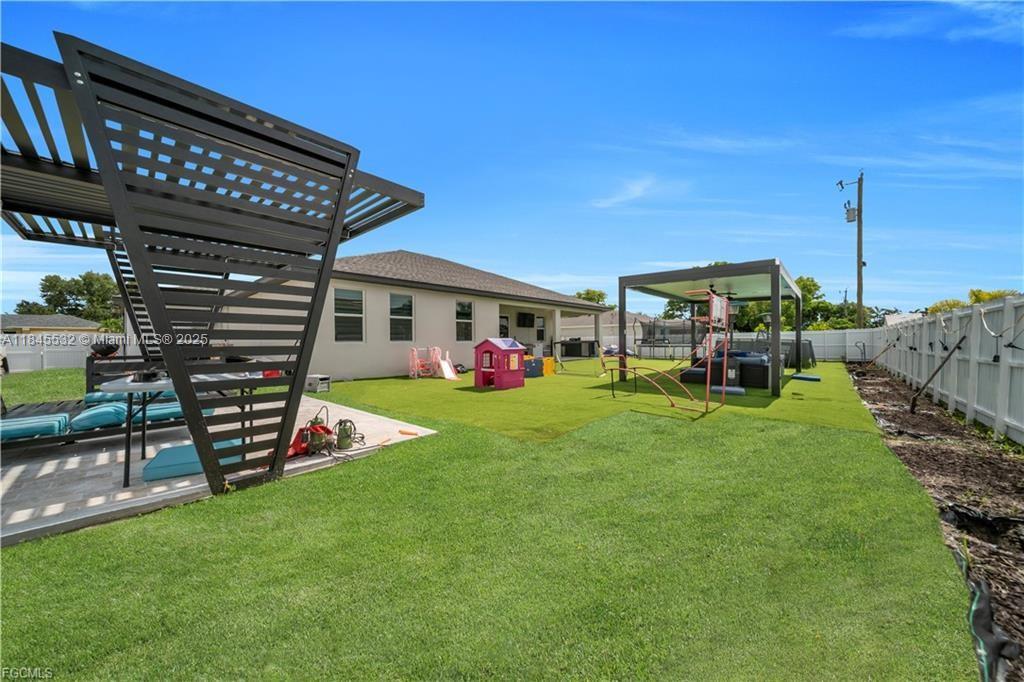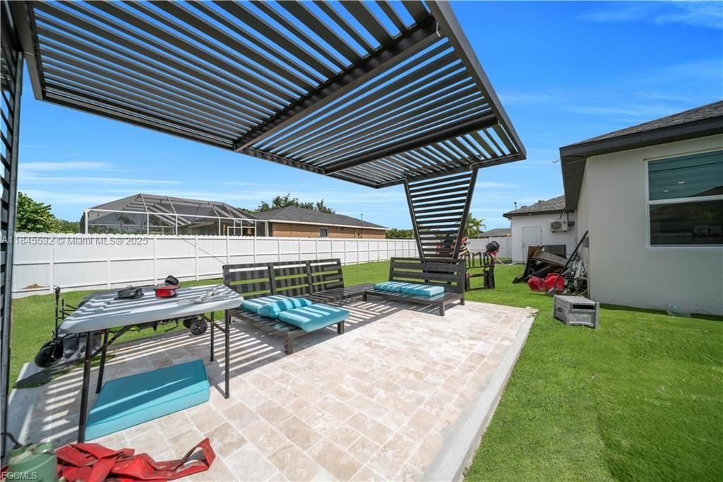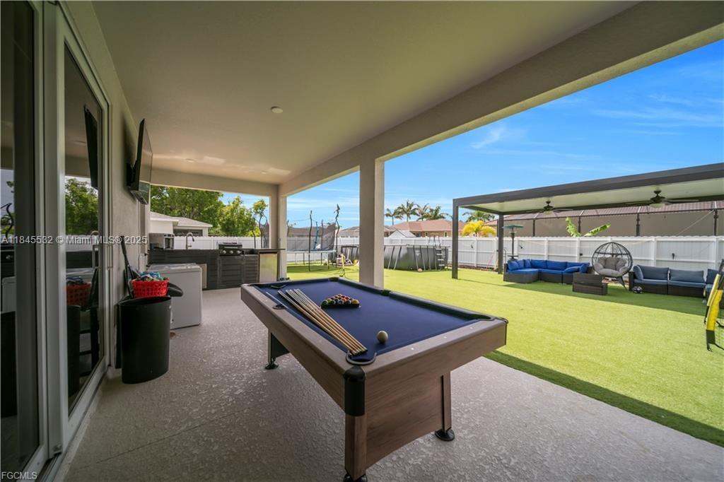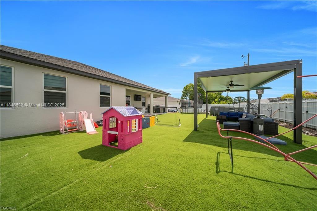 Discover the “Gran Caiman” model on an oversized lot in Southwest Florida! This new construction home offers 3 bedrooms + den and a 3-car garage converted into a 2-bedroom guest apartment with full kitchen and bath—ideal for guests or rental income. Enjoy a fenced backyard, outdoor kitchen, two pergolas, and a sparkling pool. Features include 9'4" ceilings with tray accents, 8-ft doors, tile flooring, and a modern kitchen with granite countertops, island, soft-close cabinets, and stainless-steel appliances. Built with solid concrete block, impact windows, high-efficiency A/C, sprinkler system, and elegant stone finishes. Furniture negotiable. Move-in ready—schedule your private tour today!