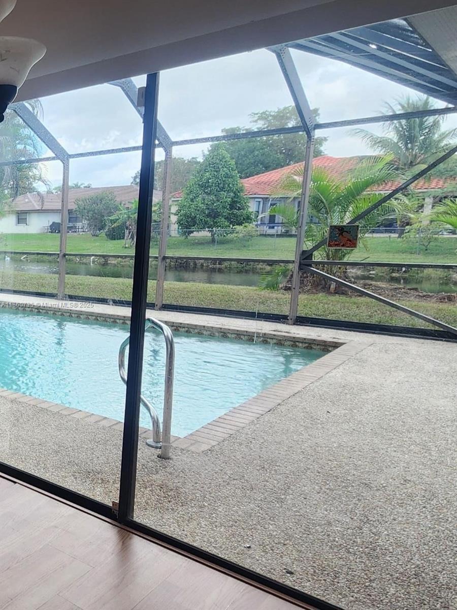 Investors, enjoy a great monthly income $4750, great tenants in the house. Most of the house is after renovation: popcorn ceiling removed, completely new bathrooms, fresh painting, new lights, fans, A/C system, laundry room, 2-car garage, and new water heater. Great 4/2.5 bedrooms one-story single house in an excellent family neighborhood. A split layout, a spacious patio with a big screen, a pool, and a canal. Great kitchen with real wood cabinets, granite counters & backsplash, stainless steel appliances, breakfast nook has the pool & water views, vaulted ceilings, and accordion Hurricane Shutters. All rooms around the house have laminate floors. Great schools, near Sawgrass Expwy, parks, shopping plazas. No HOA approval is needed; it's not a gated community, owner is motivated.