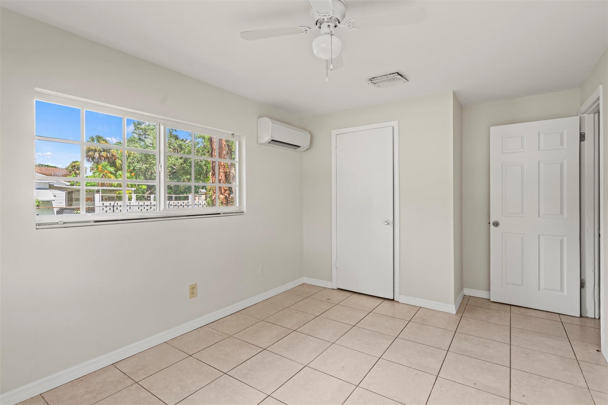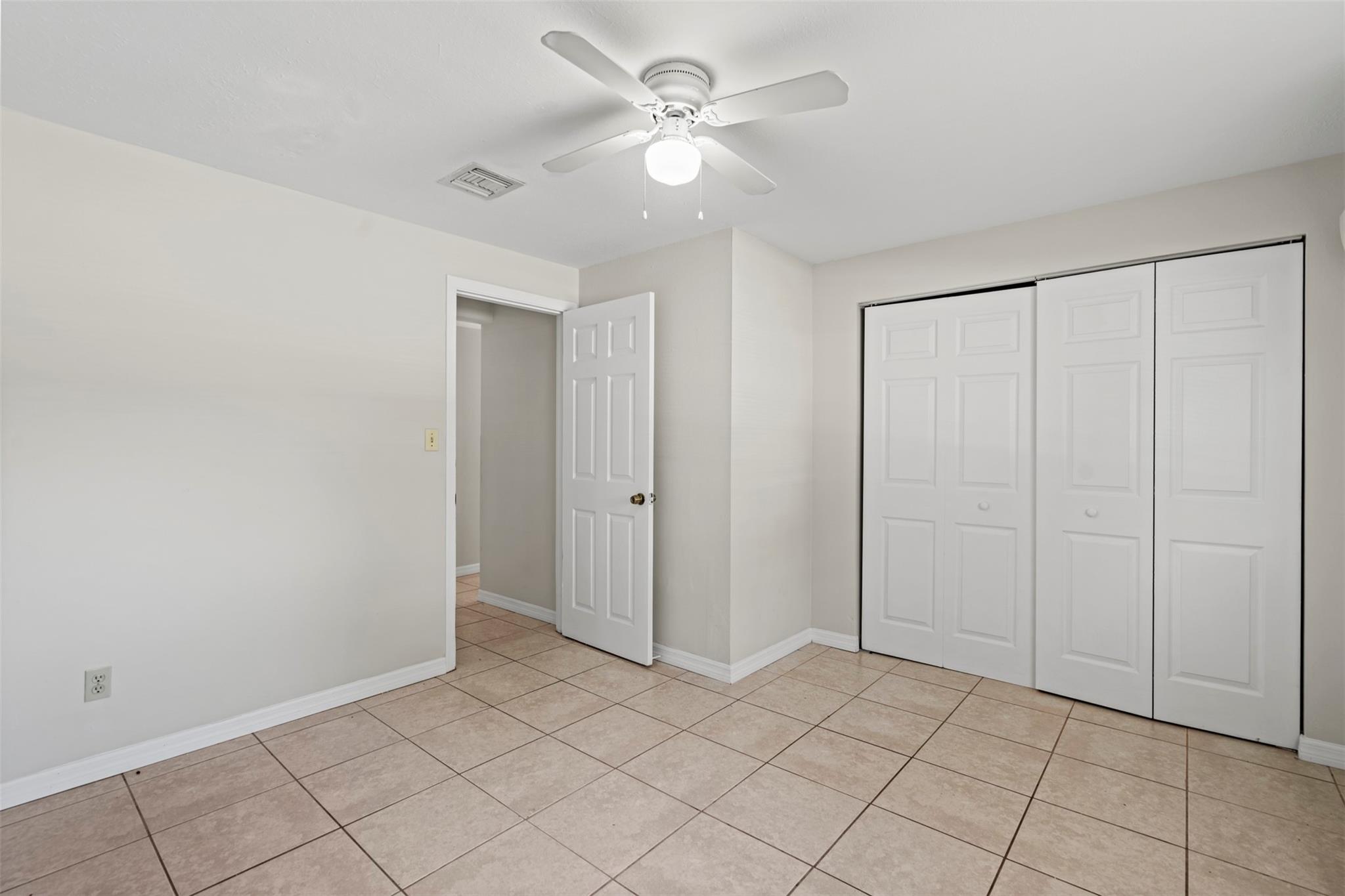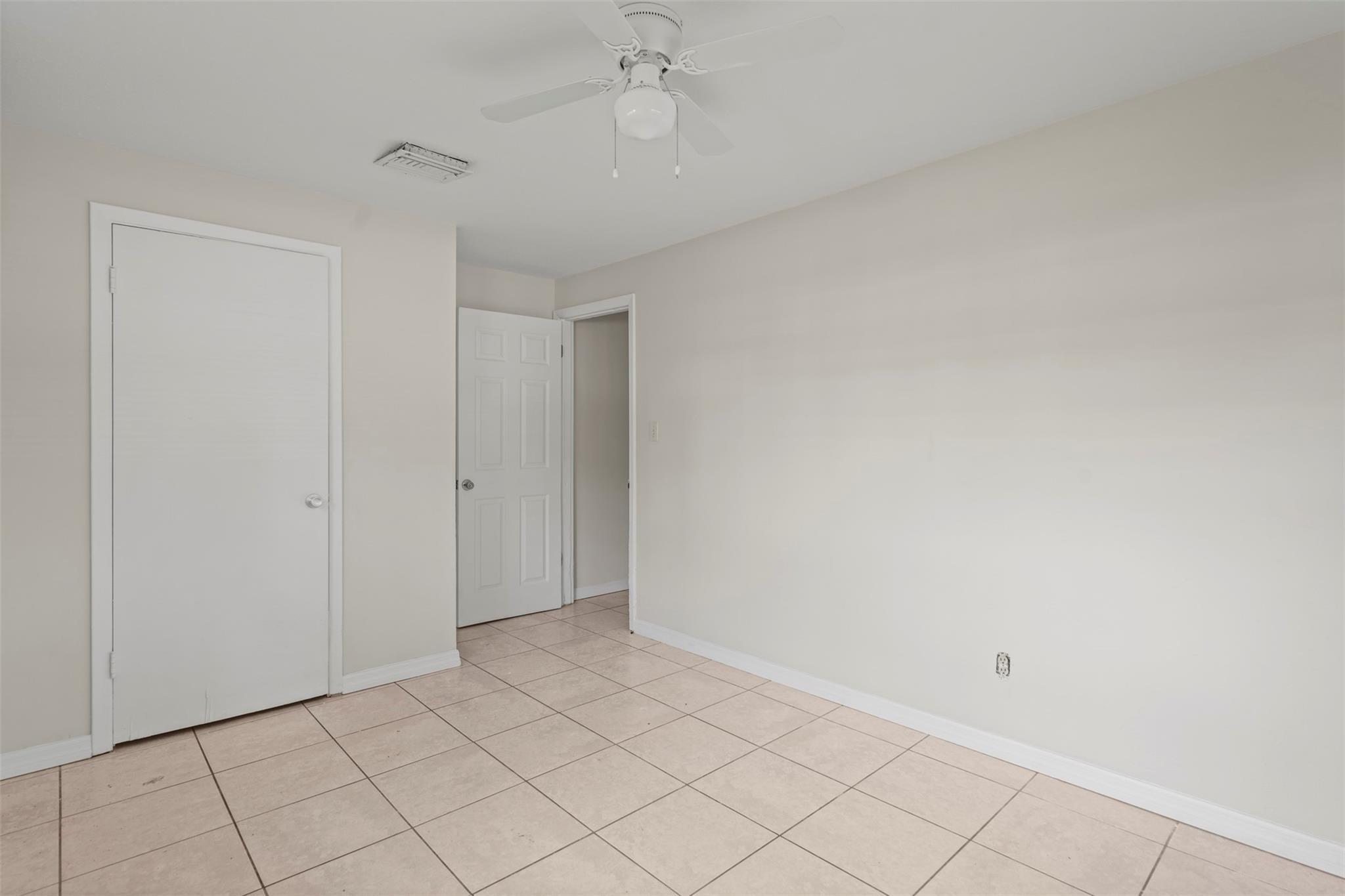 Spacious 3 bedroom, 2 bathroom home on a fully fenced 1/3 acre lot! This open layout features a welcoming kitchen, large family room, and a versatile front bonus room perfect for a den, office, or formal dining. The master suite offers its own private entrance from the back porch. Ceramic tile flooring runs throughout, and the windows were updated in 2014. Enjoy the covered back porch overlooking the large yard—ideal for relaxing or entertaining. Major updates include a NEW roof and AC in 2023. Nestled in a quiet neighborhood yet close to schools, parks, shopping, dining, and beautiful beaches!
