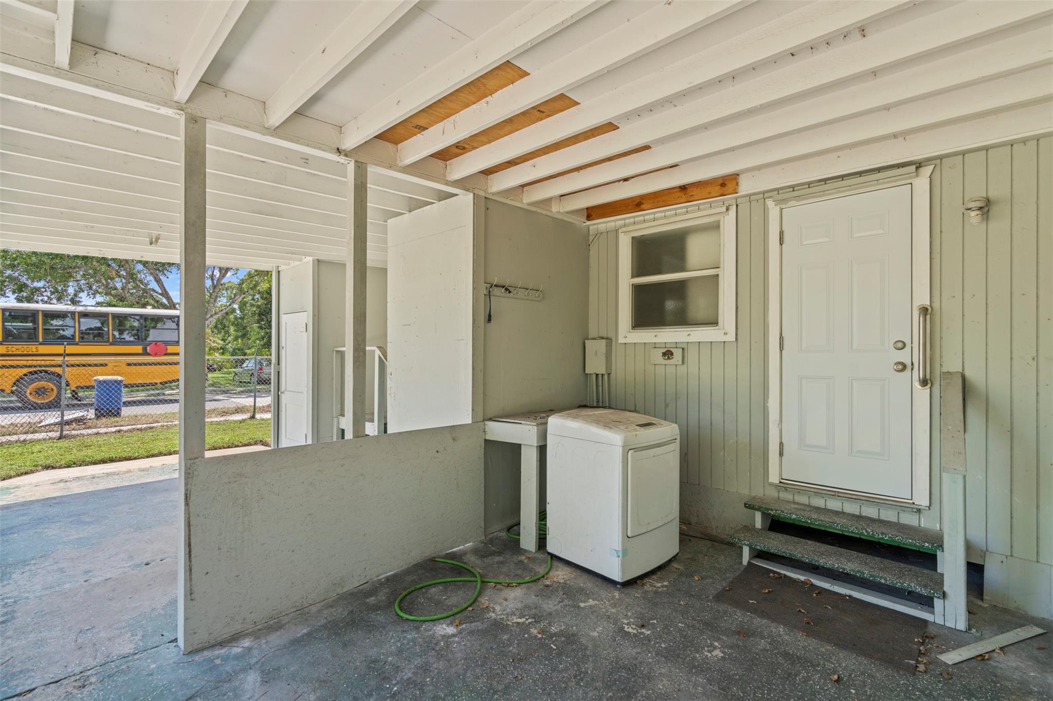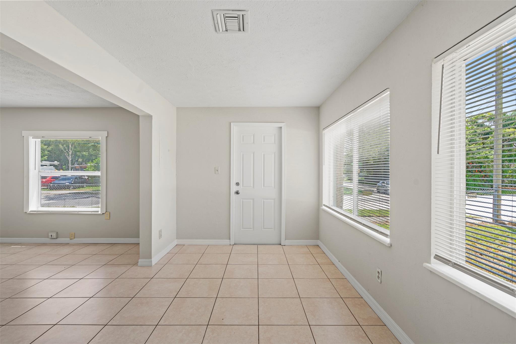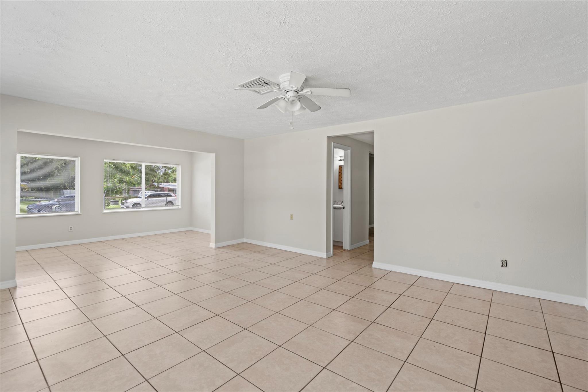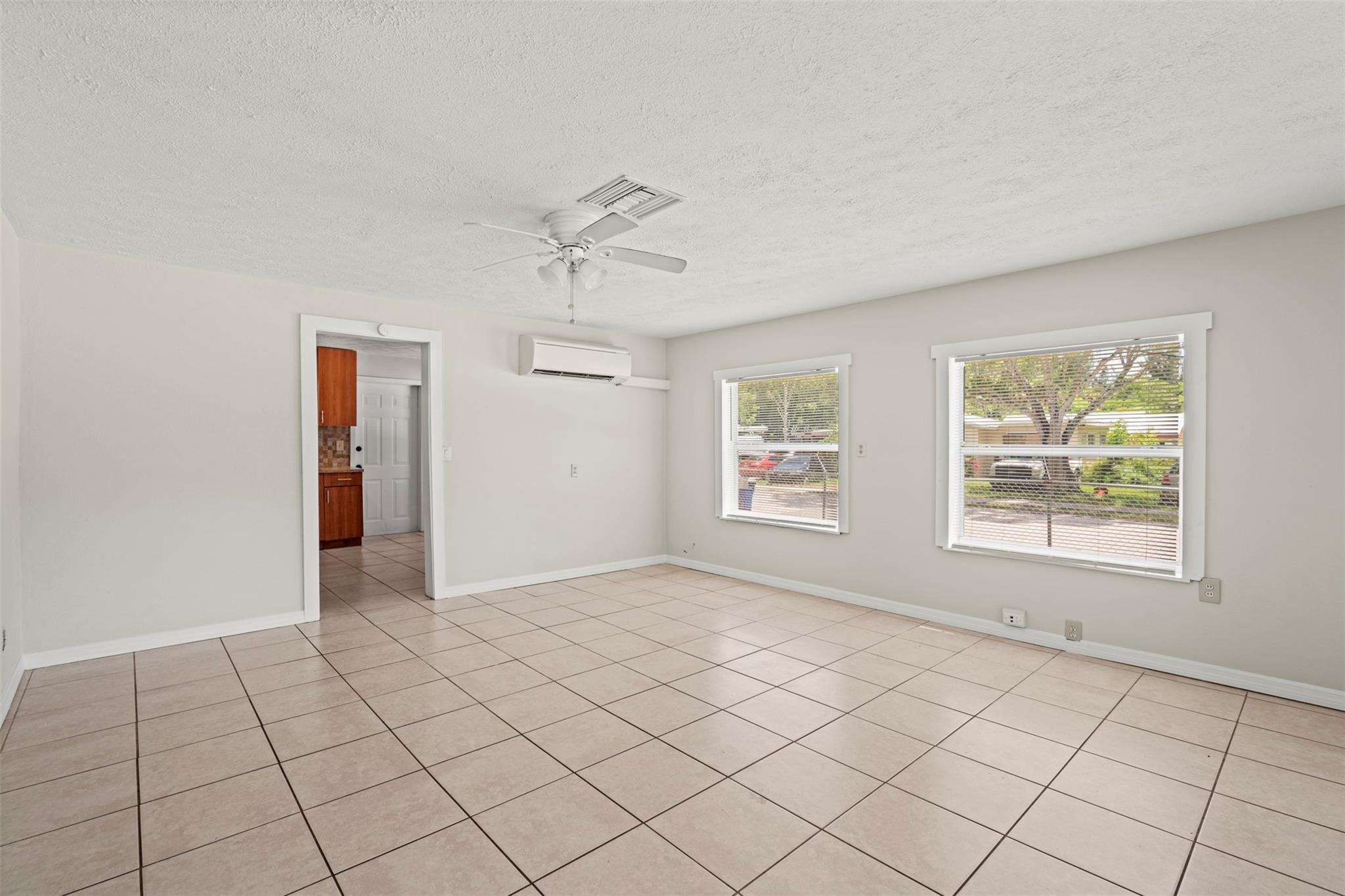 Spacious 3 bedroom, 2 bathroom home on a fully fenced 1/3 acre lot! This open layout features a welcoming kitchen, large family room, and a versatile front bonus room perfect for a den, office, or formal dining. The master suite offers its own private entrance from the back porch. Ceramic tile flooring runs throughout, and the windows were updated in 2014. Enjoy the covered back porch overlooking the large yard—ideal for relaxing or entertaining. Major updates include a NEW roof and AC in 2023. Nestled in a quiet neighborhood yet close to schools, parks, shopping, dining, and beautiful beaches!