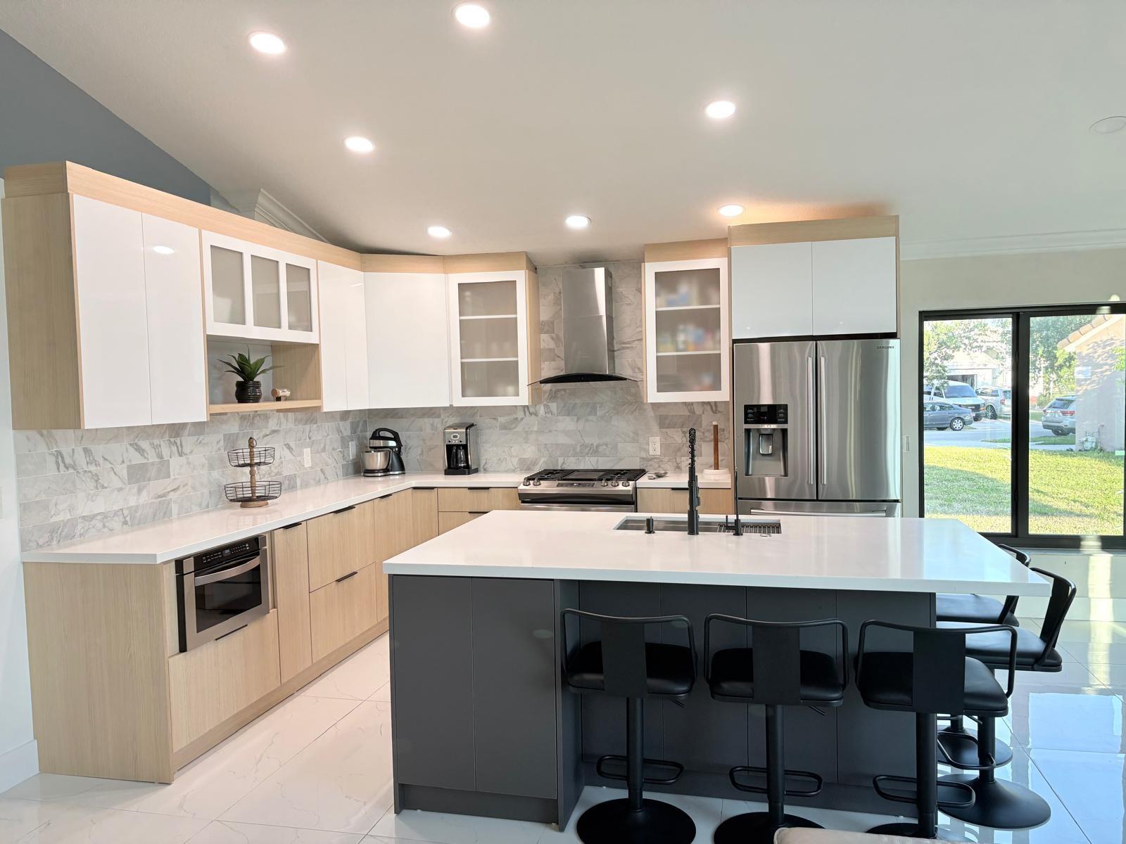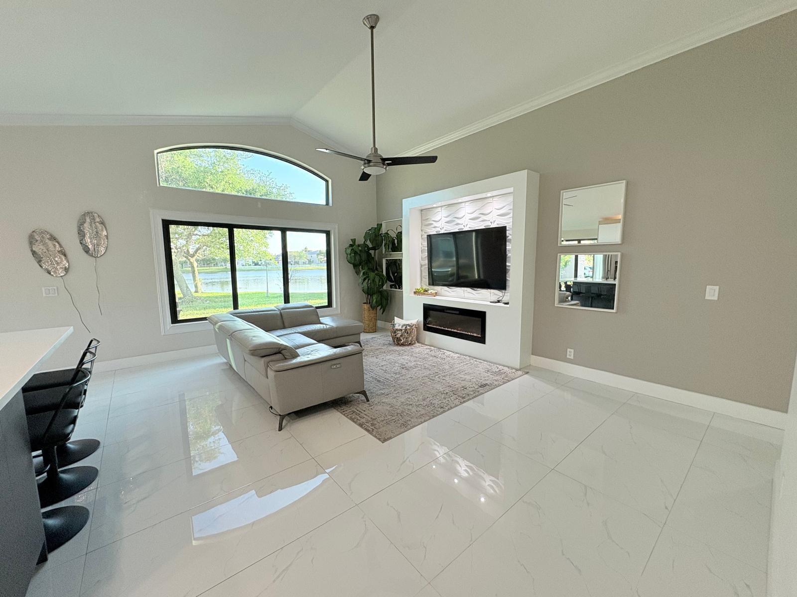 STUNNING LAKEFRONT MALIBU MODEL in desirable Pembroke Falls! This impeccably renovated 4-bedroom, 2.5-bathroom home is a true must-see! Located on Oversized Corner lot, it boasts luxurious finishes and modern design elements throughout. Features include high-impact windows and doors, beautiful new tile flooring in first floor, wood in the second floor. Modern gourmet kitchen with quartz countertops, stainless steel appliances, and a spacious central island. The open-concept floor plan is perfect for entertaining, with a spacious 1st-floor master suite featuring a large walk-in closet. The resort-style Pembroke Falls clubhouse, including a heated pool, spa, fitness center, tennis/pickleball courts, basketball court, and a grand ballroom.