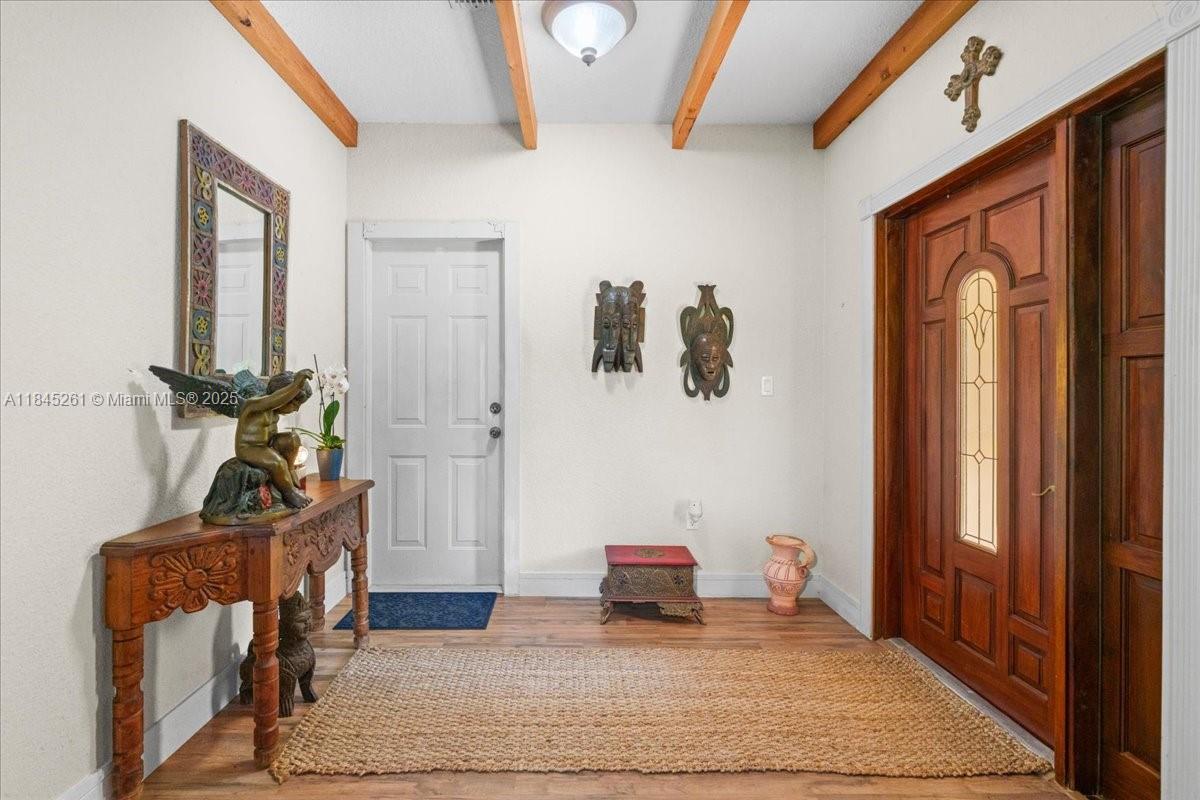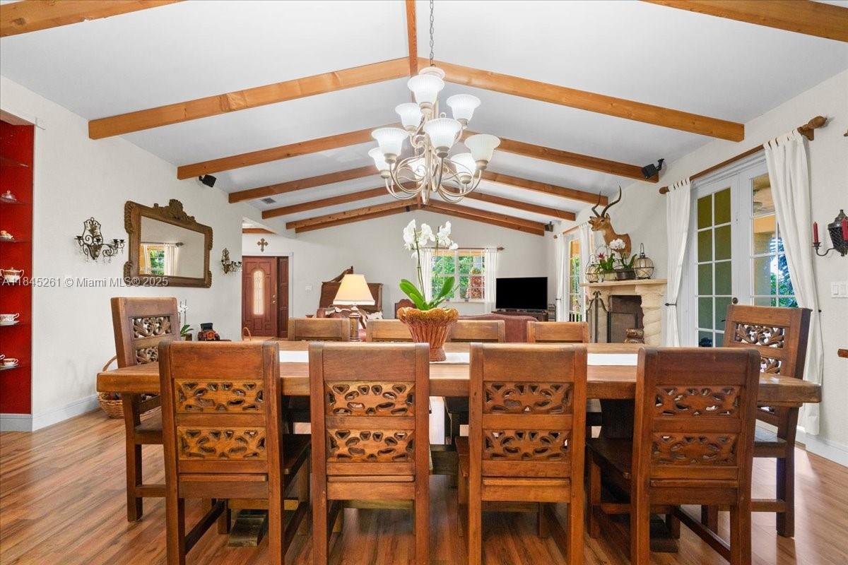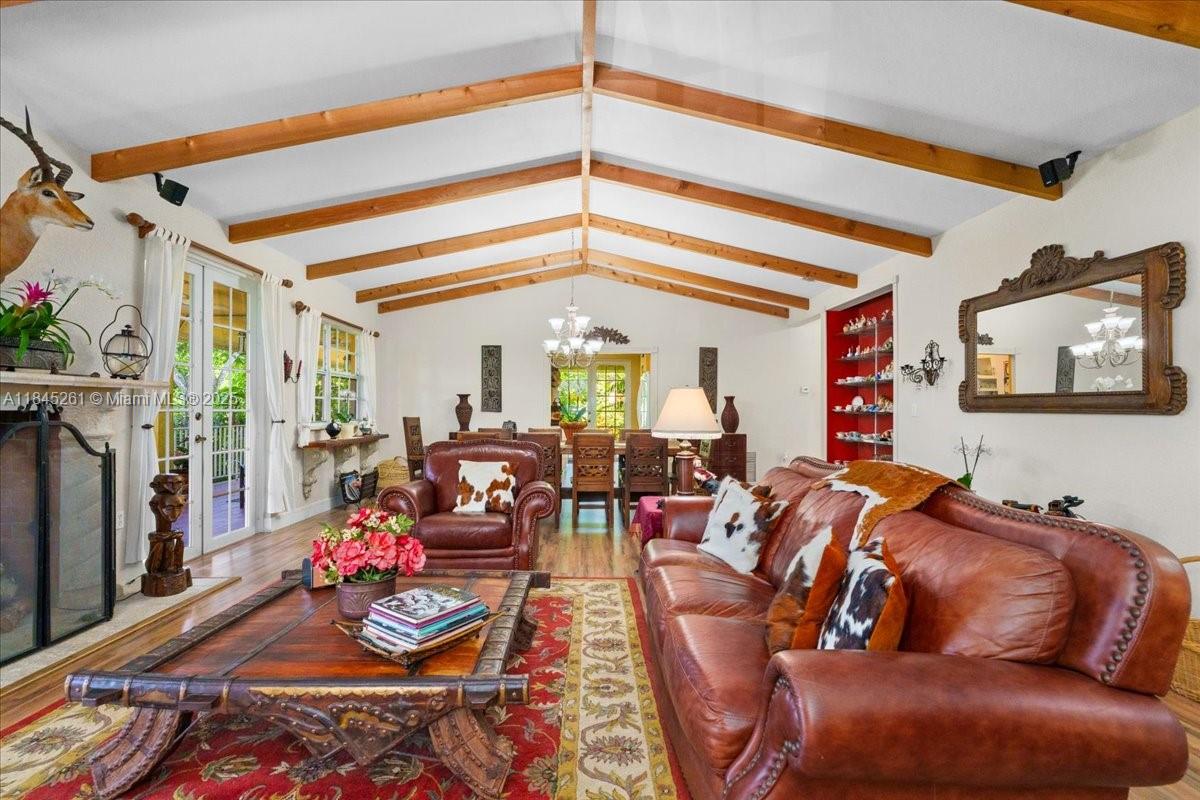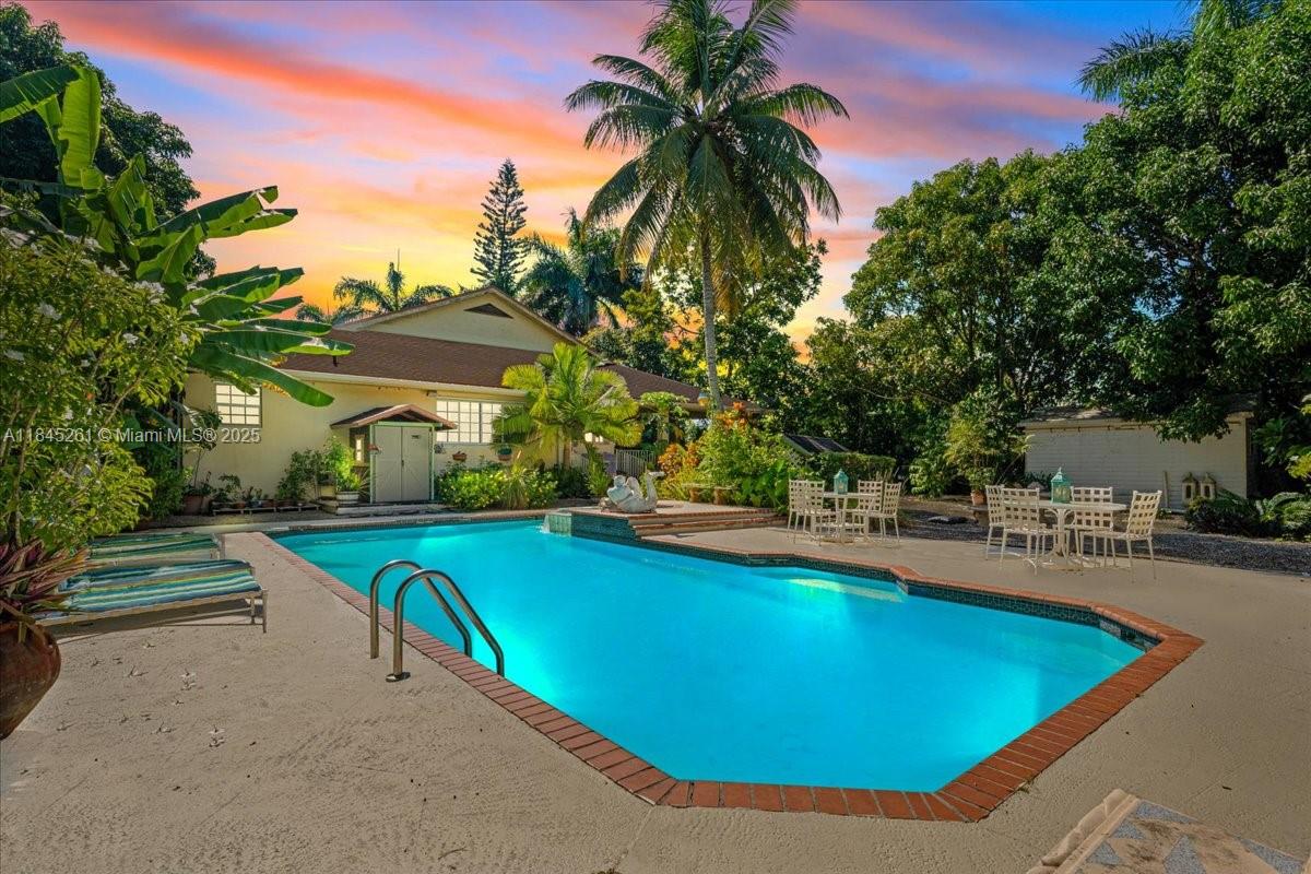 Welcome to your private tropical oasis in the heart of Redland. Recently appraised, this 2002-built estate sits on nearly an acre of lush, landscaped grounds, blending refined living with a sustainable lifestyle. The main residence offers 3 bedrooms, 2.5 bathrooms, plus a flex space that can serve as an optional 4th bedroom, office, or guest suite. Interior highlights include cathedral ceilings with exposed wood beams, French doors, a wraparound porch, and a chef’s kitchen with white cabinetry, wall oven, and ample storage. The primary suite is spacious and serene, and all bathrooms throughout the home are extra large, offering comfort and functionality. Outdoor living truly shines with a 16x40 resort-style pool and spa, a professional outdoor kitchen, mature fruit trees, and ample space for gardening or small-scale farming. Additional features include a full two-car garage with an attached carport, RV and boat parking, and a large detached shed with power and water, ideal for a workshop or storage. Recent upgrades include a new roof, new pool pump, and hurricane protection. The property is serviced by well and septic, has no HOA, and is conveniently located minutes from shopping, dining, and top-rated schools.