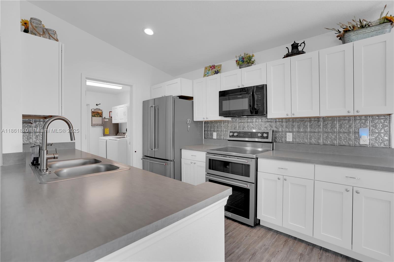 LIKE NEW CBS 2/2 FENCED BACKYARD & CARPORT GREAT LOCATION IN THE GLADES COUNTY AREA OF PORT LABELLE NEAR THE PORT LABELLE RANCHETTES! Coveted Beck-built concrete block home, built in 2021 and still like new with luxury vinyl flooring throughout and brand-new upgraded KitchenAid appliances including a double-oven stove, super-quiet dishwasher and French door refrigerator. The separate laundry features a Samsung washer and dryer. Home is designed with a split bedroom and bathroom floor plan. Home has a convenient carport, and a black chain link fenced backyard. Located in the West Glades School district (K thru 8), a Grade A school. This location is convenient to both Clewiston and LaBelle, and is NOT in a flood zone.
