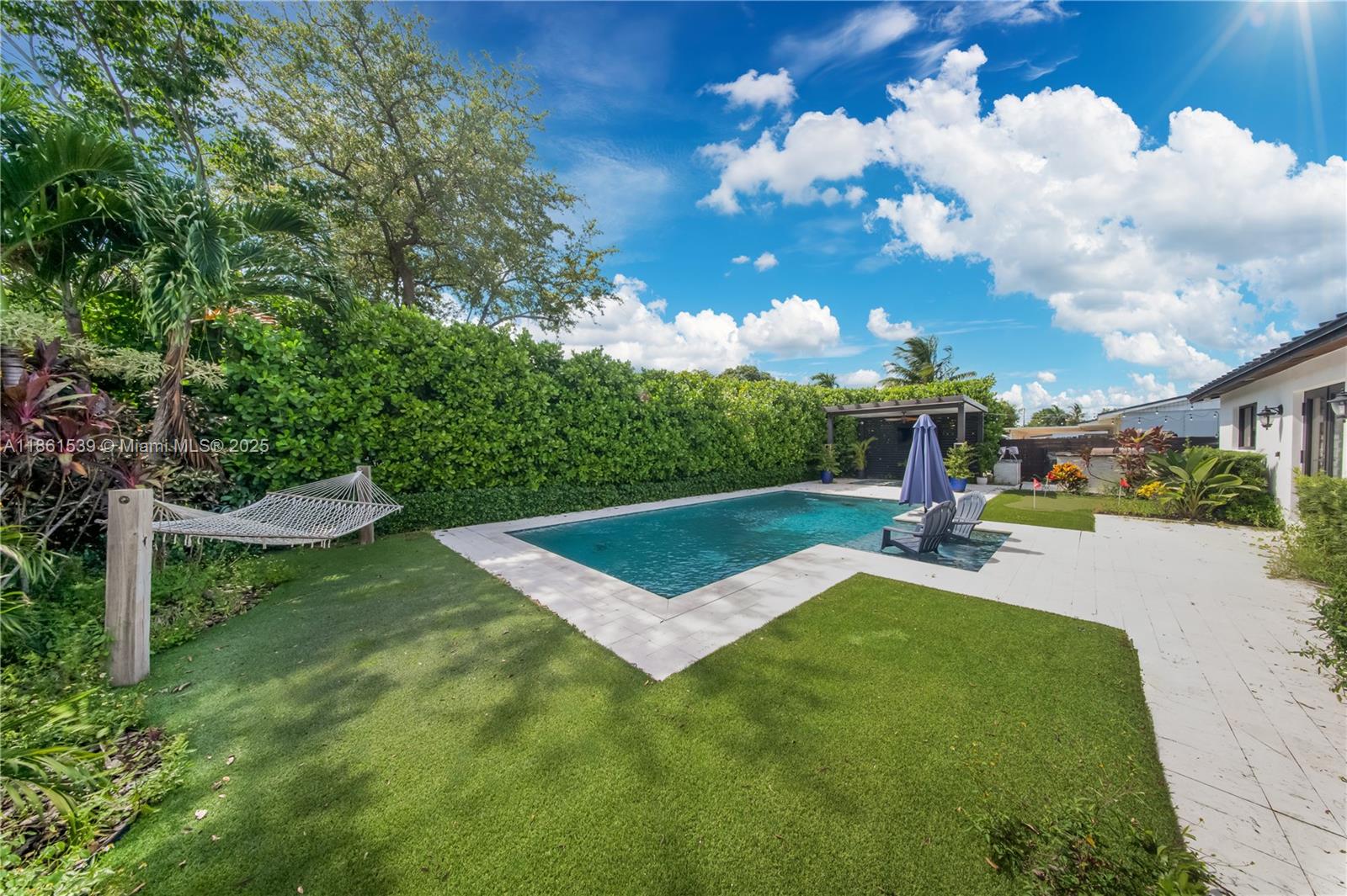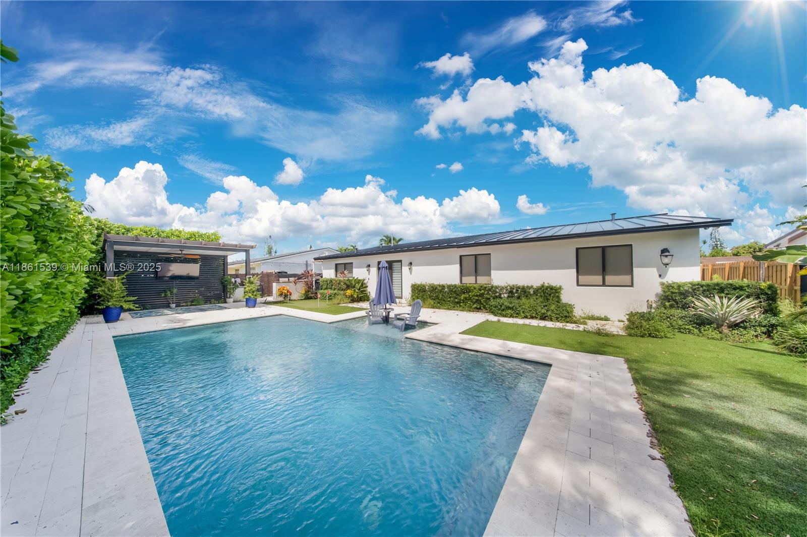 Beautifully remodeled 4-bedroom, 2-bath single-family home in desirable Winston Park. This charming residence features a fully updated pool (2020), a brand-new metal roof, new A/C system, and impact glass windows and doors throughout. The outdoor space is enhanced with artificial grass for low maintenance and year-round enjoyment. Inside, stylish finishes and modern upgrades complement the spacious layout, offering comfort and convenience. Additional highlights include a newly built bungalow, adding flexibility for guests or entertainment. Truly move-in ready!