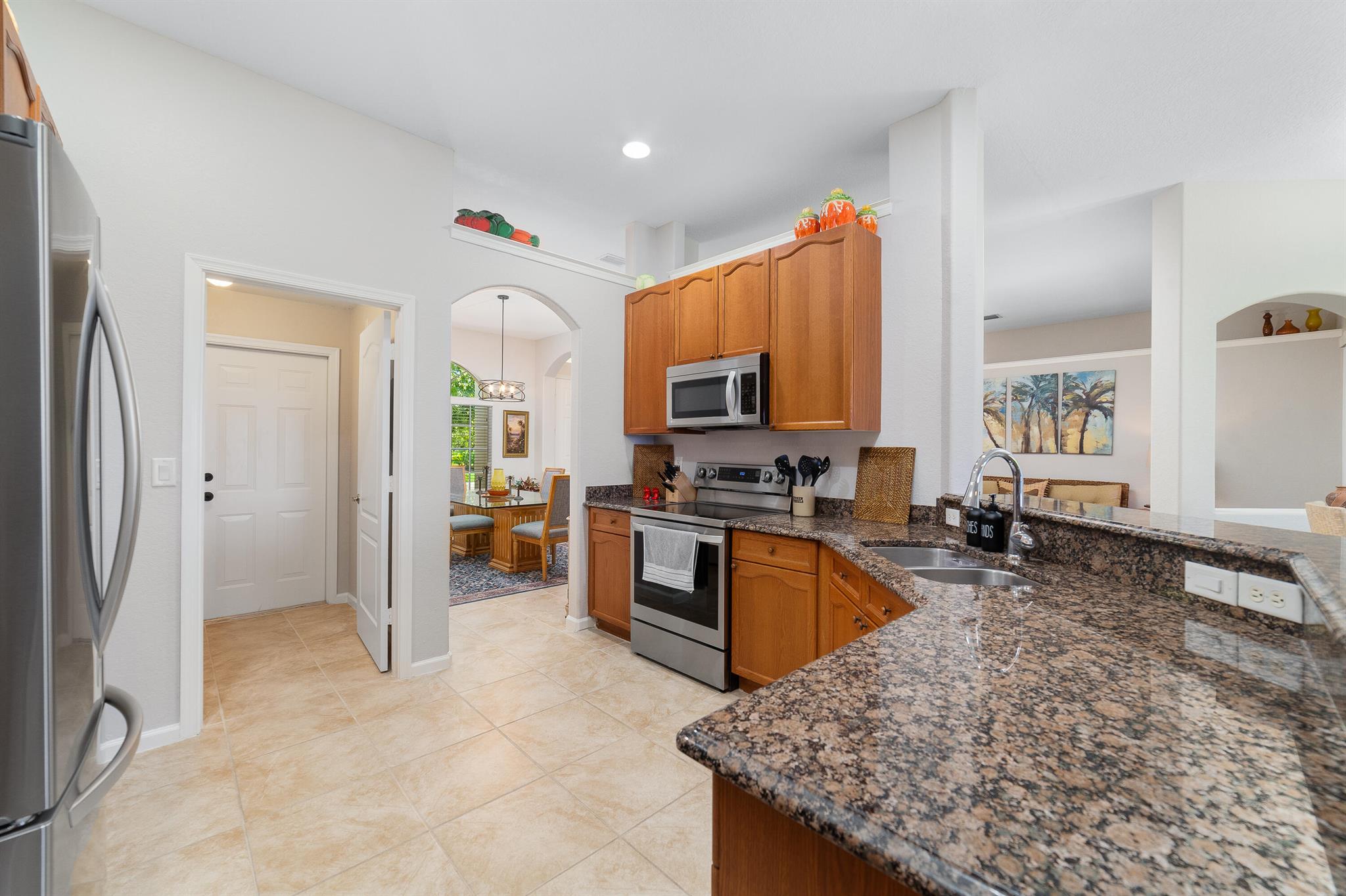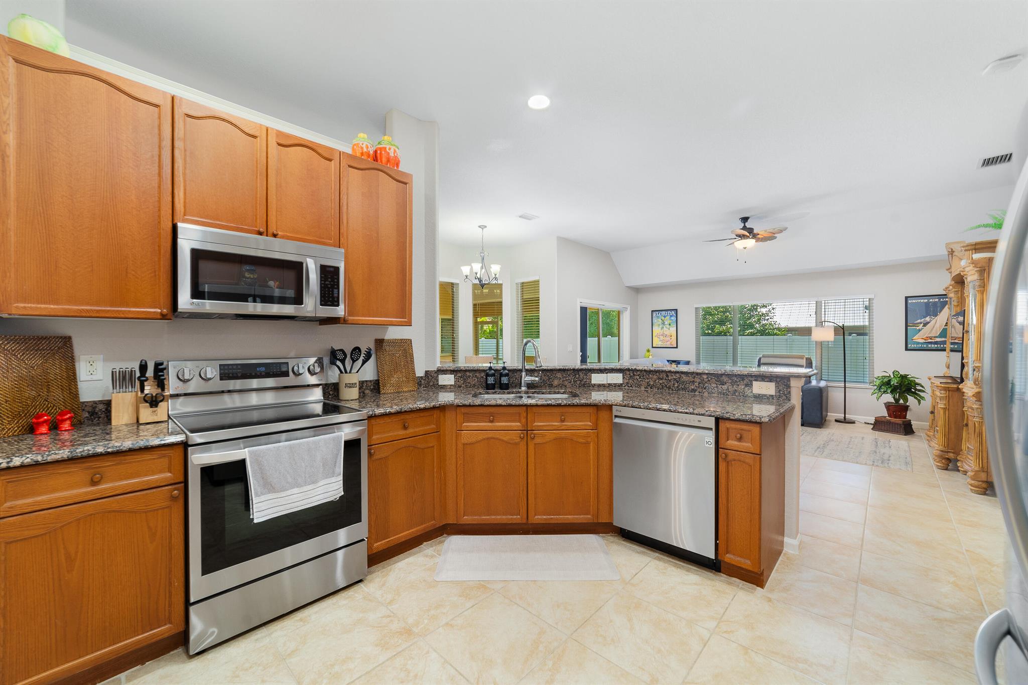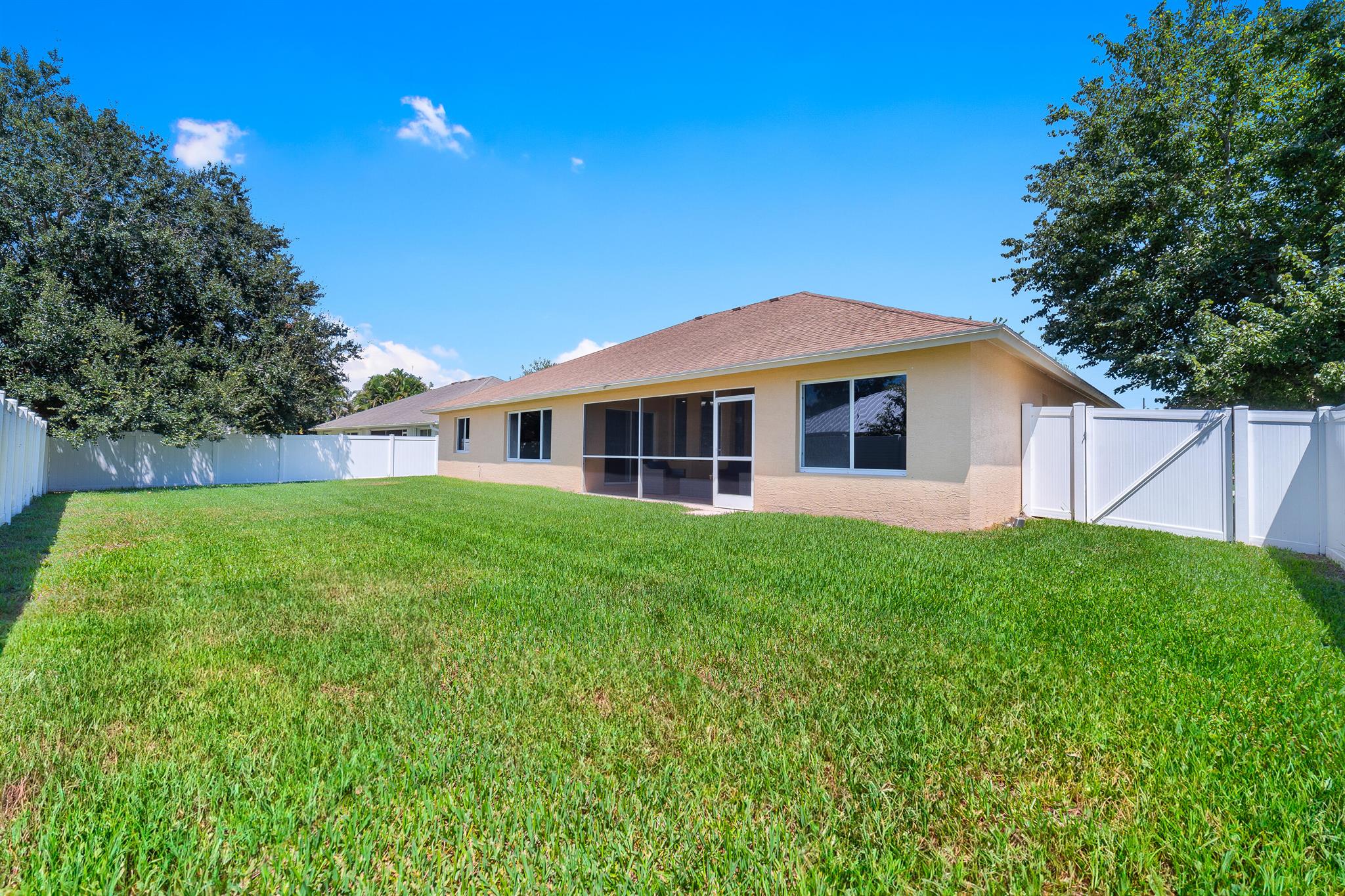 Nestled on a large corner lot in the desirable community of The Preserve of Vero Beach, this beautifully maintained home offers comfort, style, and convenience. The private fenced backyard provides room for a pool and includes a screened, covered patio, perfect for relaxing or entertaining. Inside, an open floor plan with volume ceilings flows seamlessly from the living room, through the kitchen, and into the family room, complemented by both formal and casual dining areas. NEW ROOF coming soon, The kitchen features stainless steel appliances (new in 2022), granite countertops, abundant storage, and a center gathering space.
