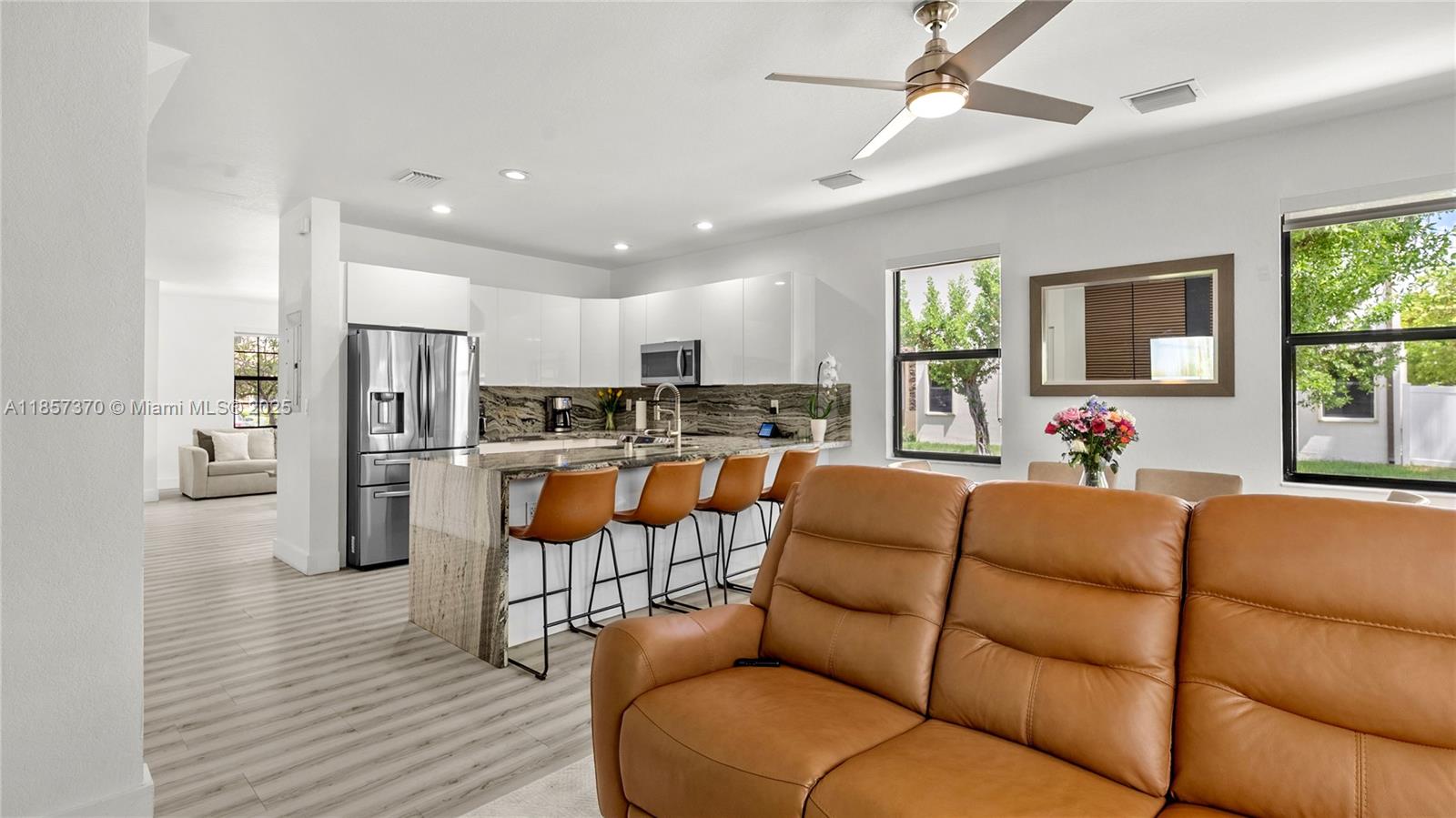 Beautifully updated 3-bedroom, 2.5-bath corner unit filled with natural light. Featuring a remodeled kitchen with stunning quartz countertops, unique stone finishes, and modern cabinetry. The spacious layout offers comfort and style, perfect for entertaining. Enjoy outdoor living under the backyard pergola, ideal for gatherings or relaxing. As the only corner unit in the neighborhood, this home provides extra privacy and brightness throughout. A rare find,don’t miss this opportunity!