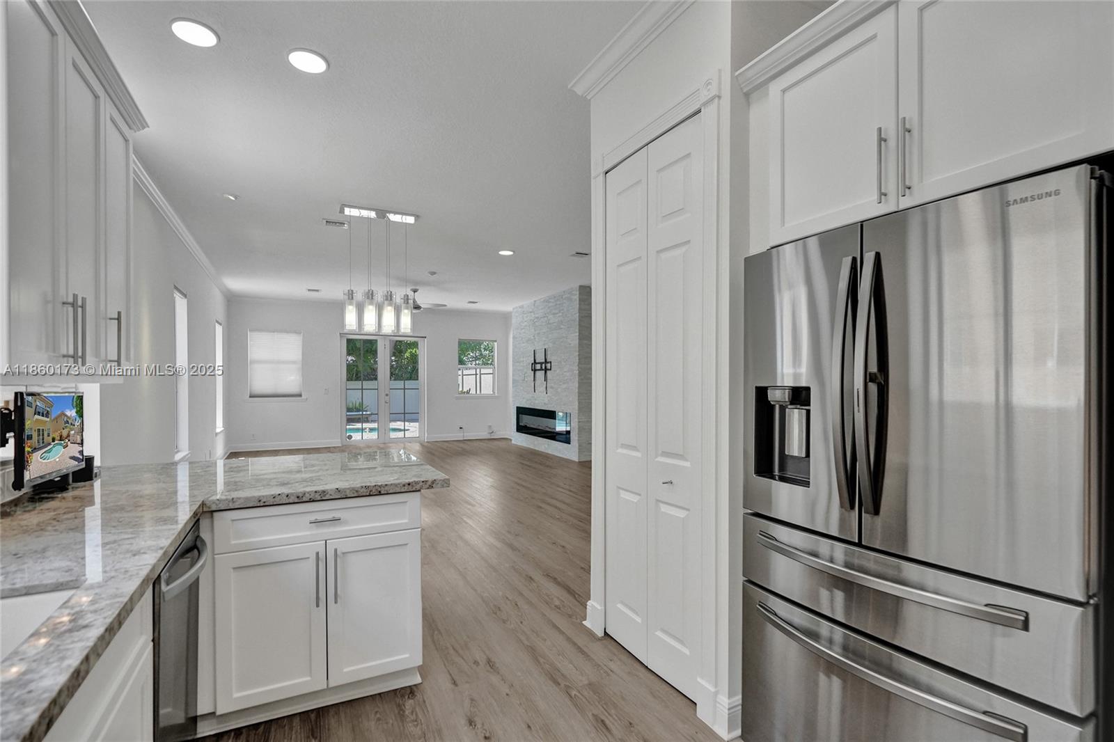 This updated corner townhome combines modern design with comfort, ideal for today’s lifestyle. The open floor plan is filled with natural light, volume ceilings, and sleek finishes. The chef’s kitchen with snack bar offers abundant counter space and flows into the dining area, custom bar, and great room. French doors with impact windows lead to a private tropical retreat featuring an free-form pool, patio, custom BBQ, dining area, lighting, and Bluetooth sound. The primary suite includes two walk-in closets, spa-style bath with Jacuzzi and shower, plus a balcony overlooking the pool. The junior suite has two balconies, and the third bedroom can be used as an office.
