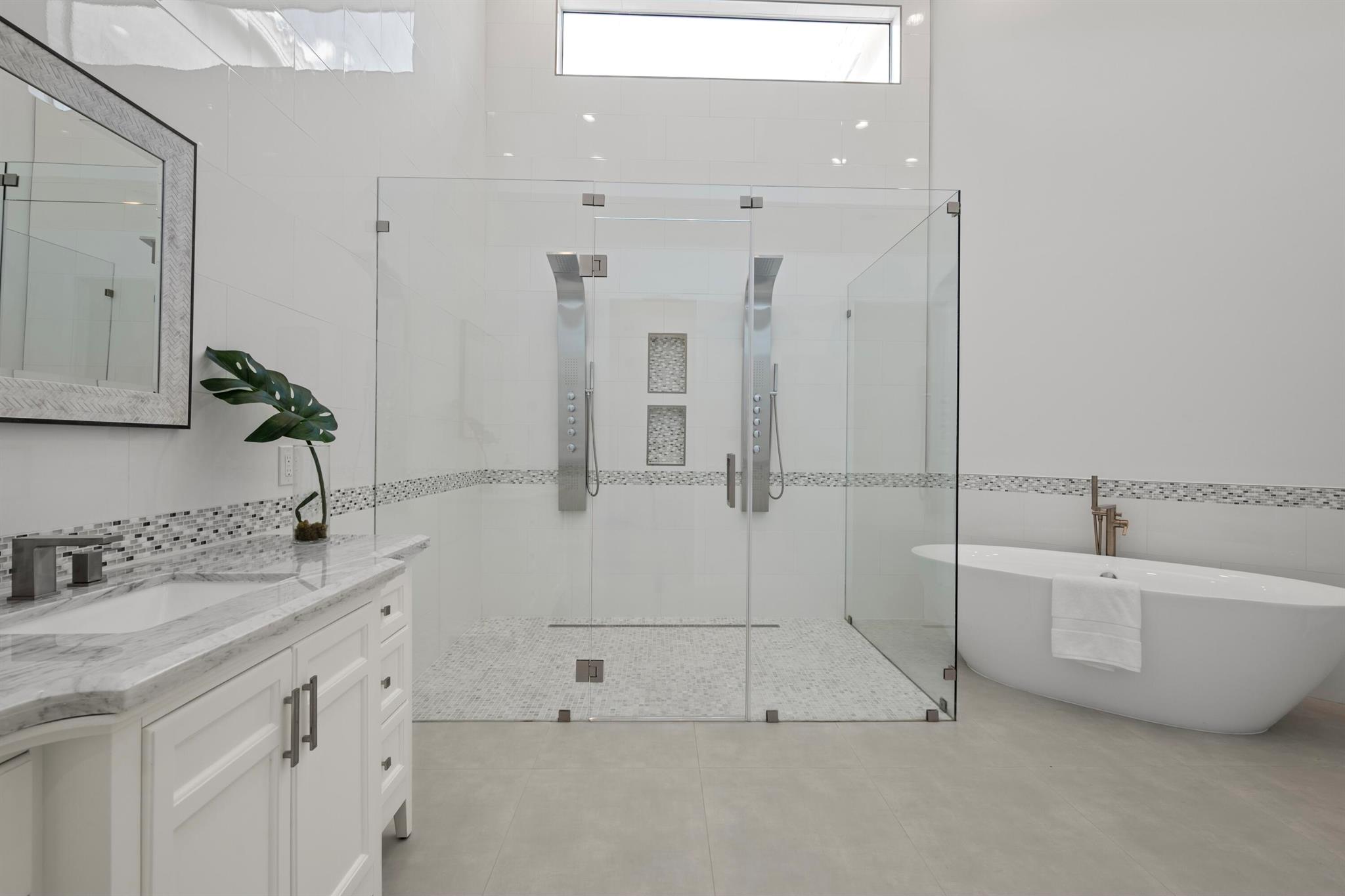 Step into this exquisitely renovated home, where modern design meets comfort and functionality. As you enter, you're welcomed by soaring ceilings and expansive windows that flood the space with natural light, creating a bright and inviting atmosphere. The open-concept layout seamlessly blends elegance and practicality, offering an ideal everyday living and entertaining setting. The spacious living room, perfect for gathering with family and friends, features a striking fireplace and flows effortlessly into the breathtaking chef's kitchen. This culinary haven boasts sleek, custom cabinetry, an oversized island with ample seating, and high-end Frigidaire appliances. The kitchen also offers a casual eat-in area and a formal dining space, catering to any occasion. The luxurious primary suite