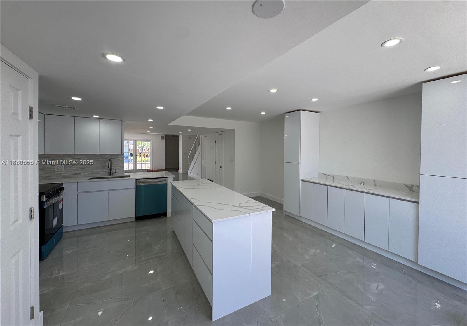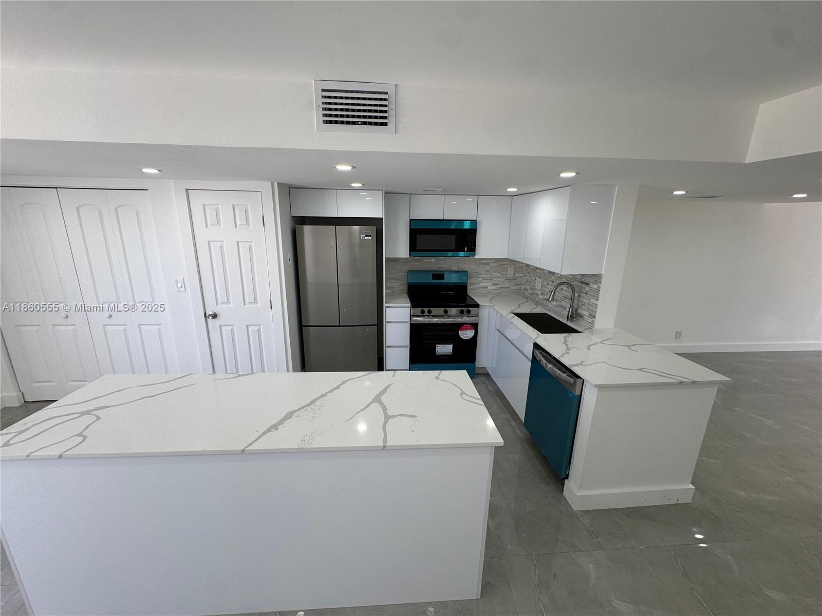 Fully renovated townhouse 2-bedroom 2.5 bathroom in prime location, Hallandale Beach! Bright and move-in ready with marble floors downstairs, laminate upstairs, recessed lighting, and abundant natural light. Modern kitchen with oversized island, buffet-style credenza, and brand-new high-end stainless steel appliances. Two large bedroom suites with walk-in closets and updated baths. Features new A/C, full-size washer/dryer, private patio, and ample storage. Quiet, well-managed community with clubhouse, pool, tennis courts, and playground. Walking distance to parks and synagogue, minutes to the beach, Gulfstream, dining, and shopping. No special assessments!