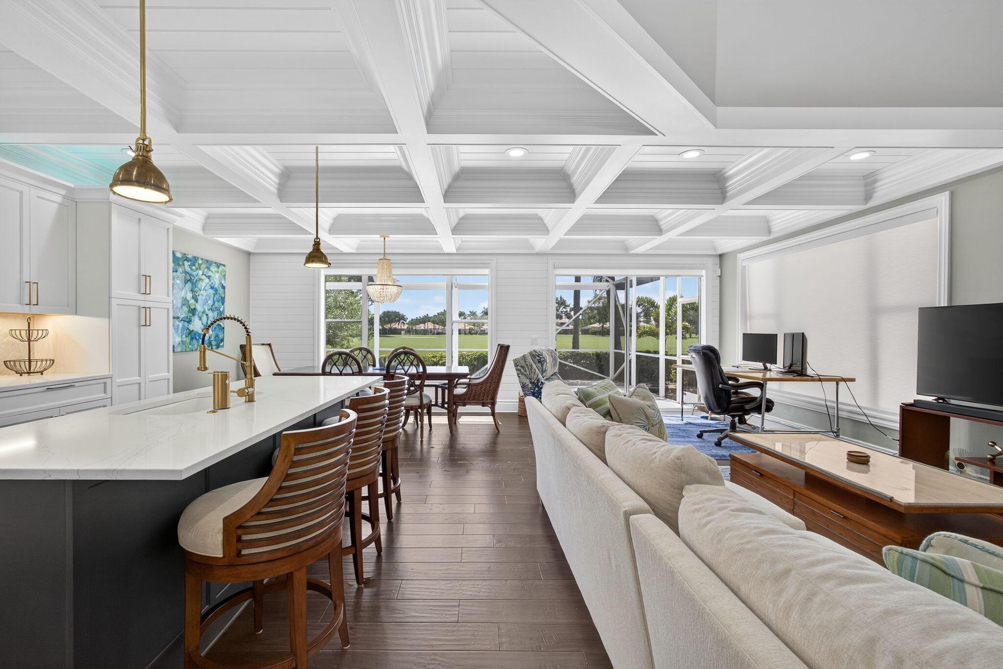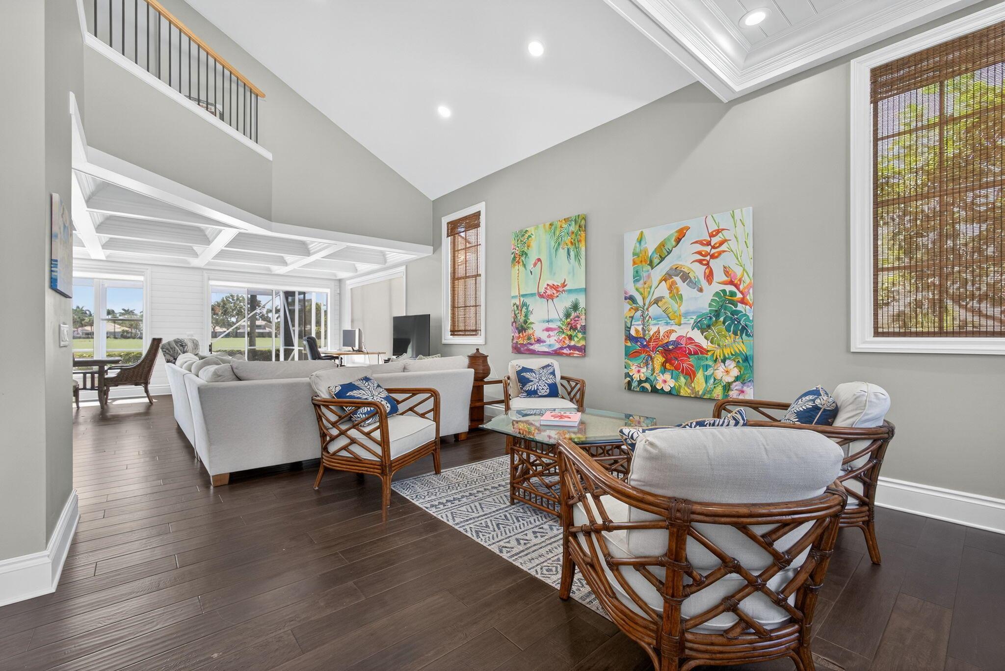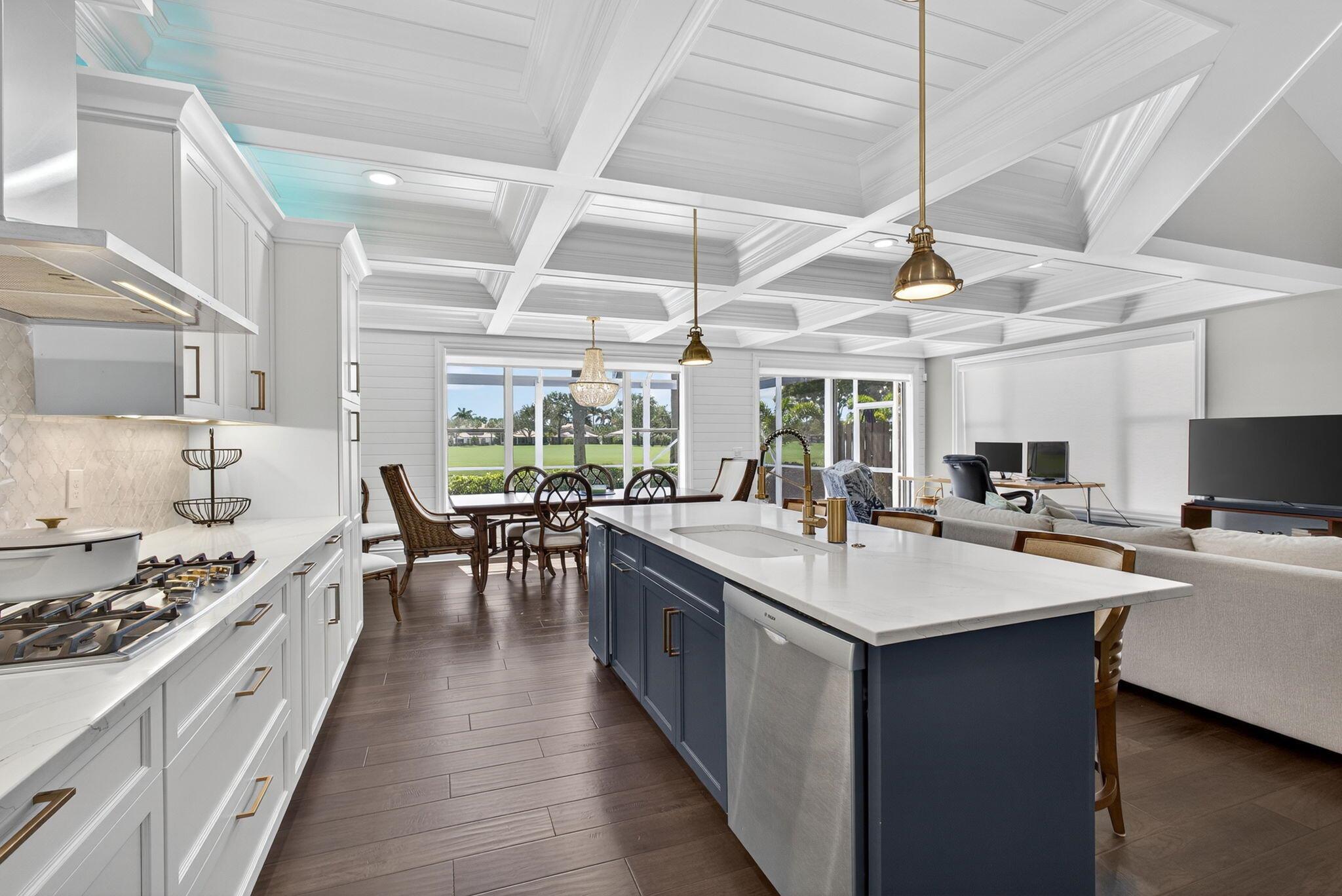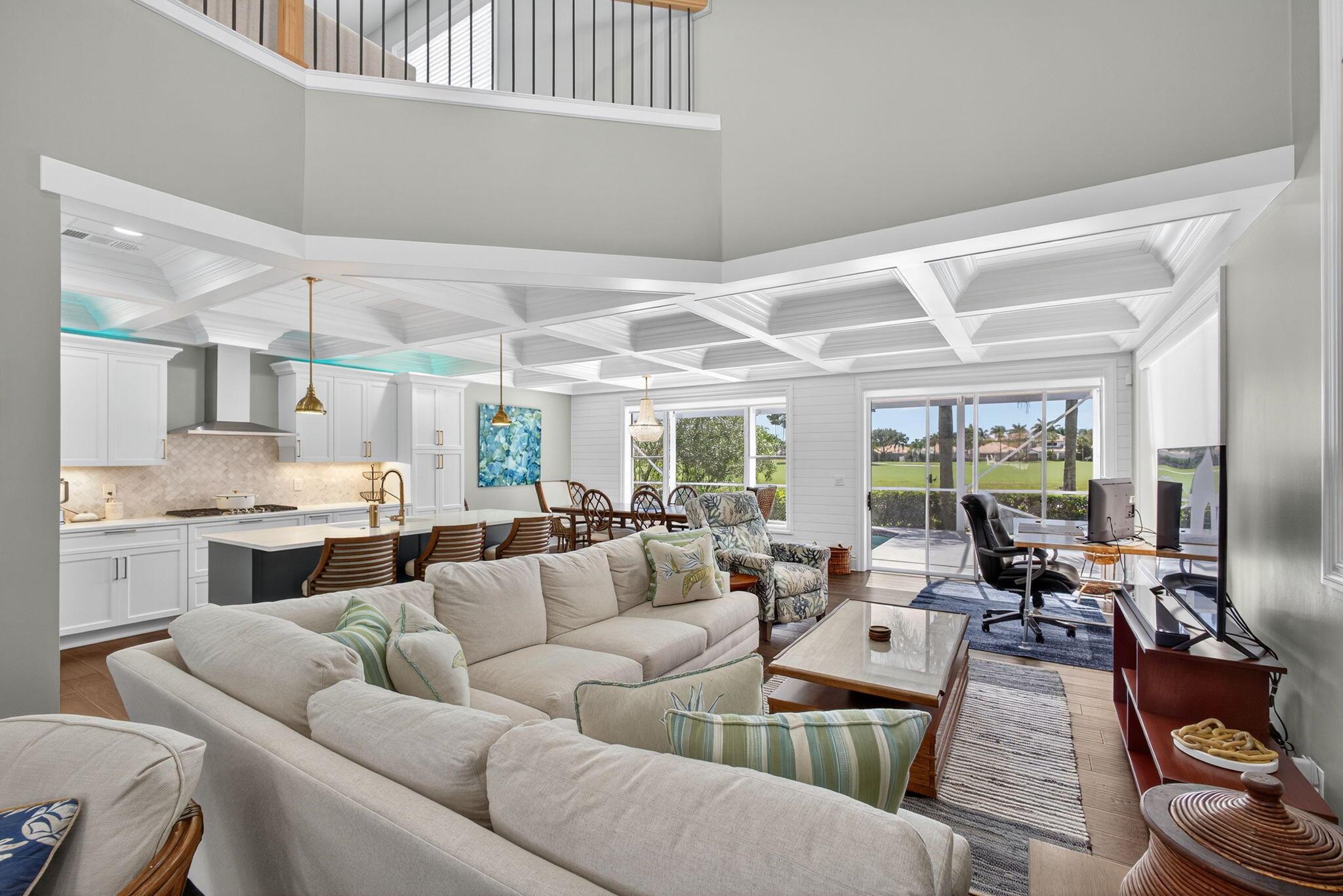 Completely renovated in 2021, this fabulous two-story home radiates modern coastal elegance. The main level features a private master suite with a spa-inspired ensuite, while upstairs offers two spacious bedrooms and a versatile loft. Soaring coffered ceilings, designer lighting, and an open, airy layout fill the home with incredible natural light and a breezy coastal vibe. High-end finishes and thoughtful details are found throughout, creating a sophisticated yet comfortable atmosphere. Enjoy breathtaking water and golf course views from nearly every room, then stroll to the clubhouse to experience the world-class amenities at The Club at Ibis. Move-in ready and tastefully reimagined, this home is truly a showpiece. Located in the NW corner of WPB, only 20 min from PBIairport.
