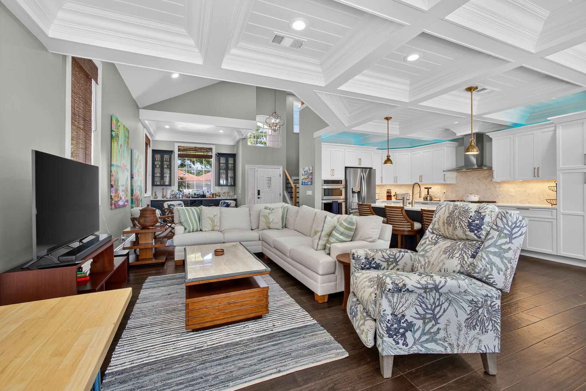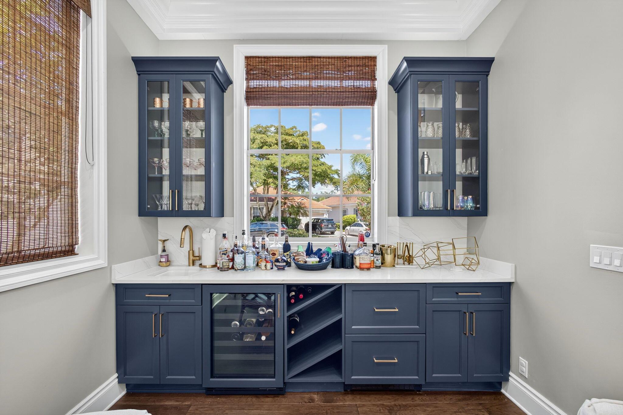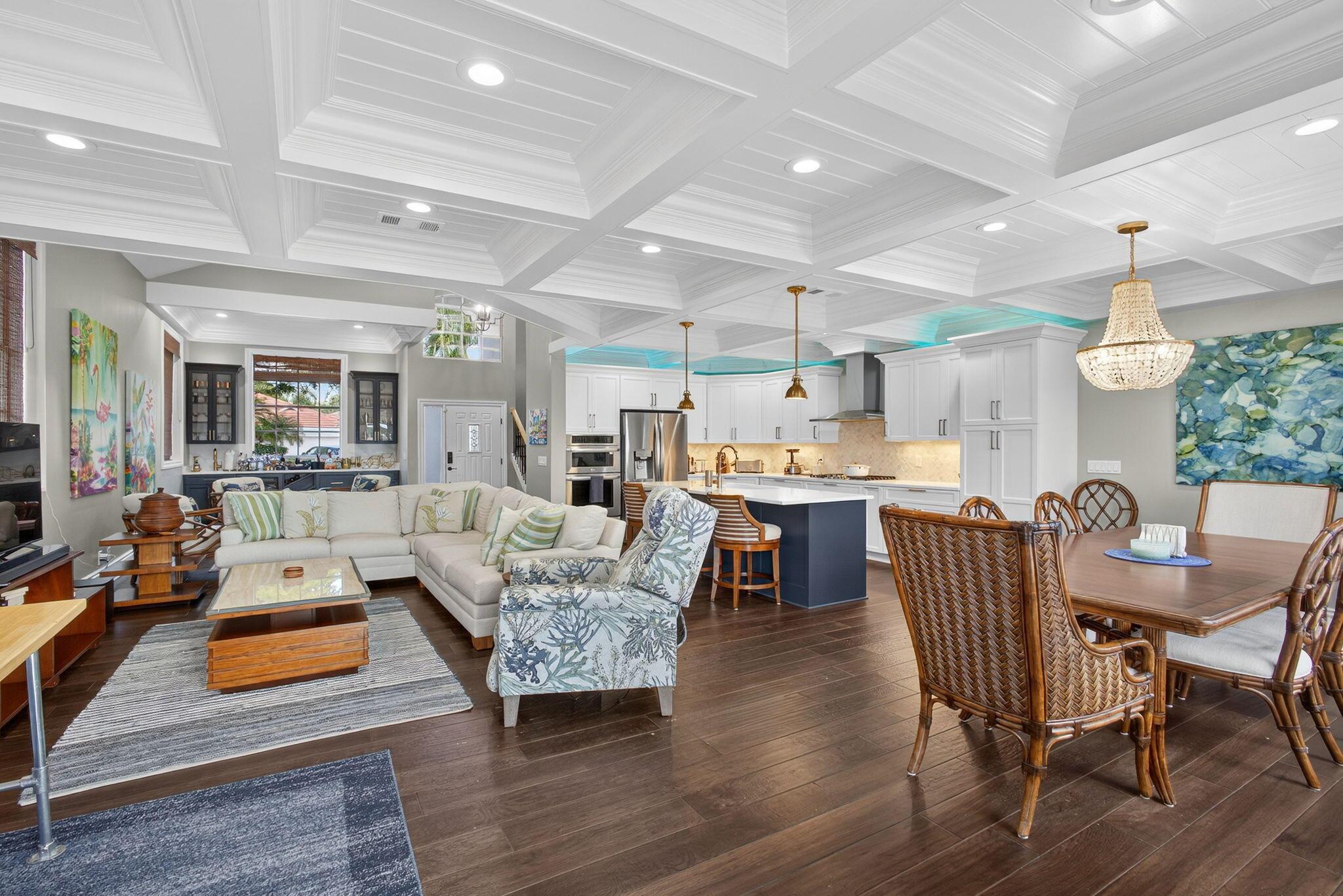 Completely renovated in 2021, this fabulous two-story home radiates modern coastal elegance. The main level features a private master suite with a spa-inspired ensuite, while upstairs offers two spacious bedrooms and a versatile loft. Soaring coffered ceilings, designer lighting, and an open, airy layout fill the home with incredible natural light and a breezy coastal vibe. High-end finishes and thoughtful details are found throughout, creating a sophisticated yet comfortable atmosphere. Enjoy breathtaking water and golf course views from nearly every room, then stroll to the clubhouse to experience the world-class amenities at The Club at Ibis. Move-in ready and tastefully reimagined, this home is truly a showpiece. Located in the NW corner of WPB, only 20 min from PBIairport.