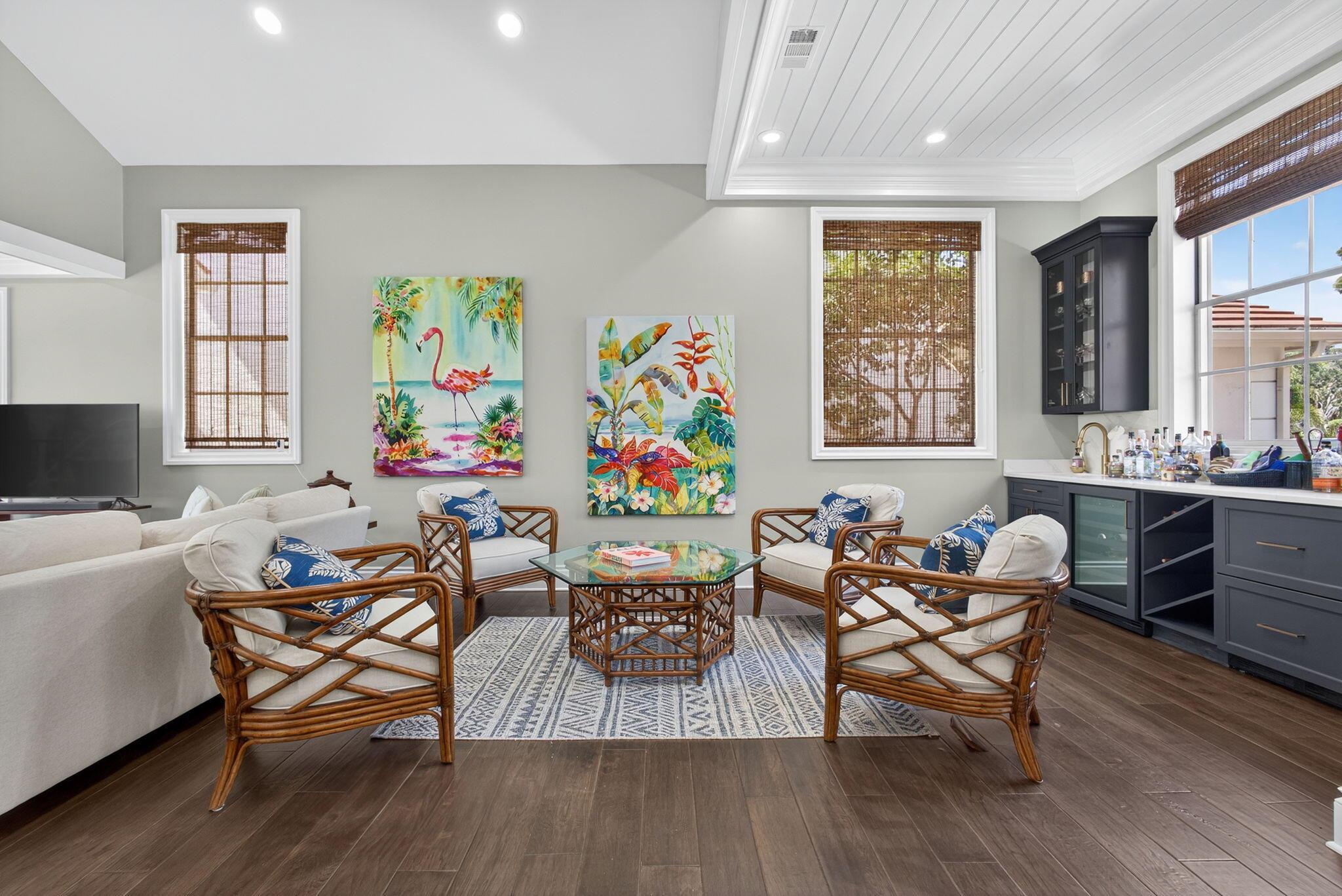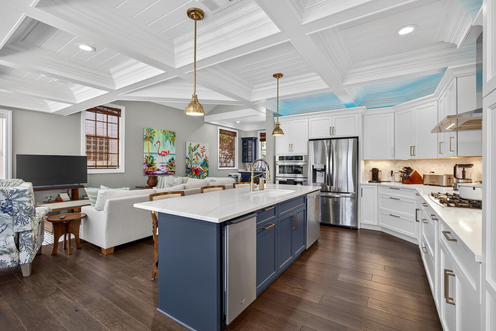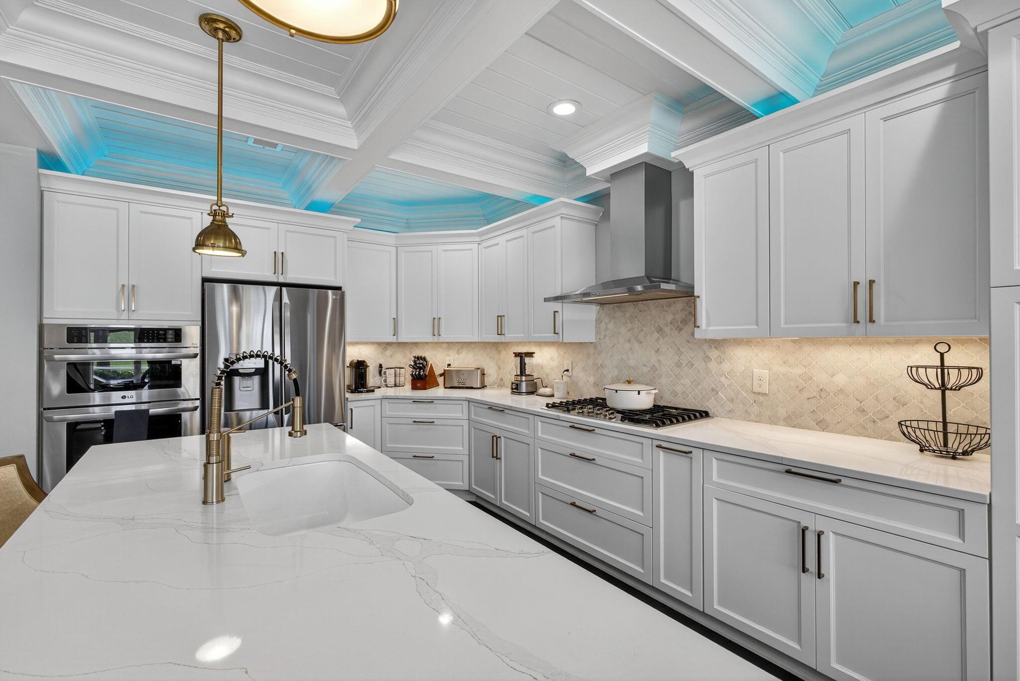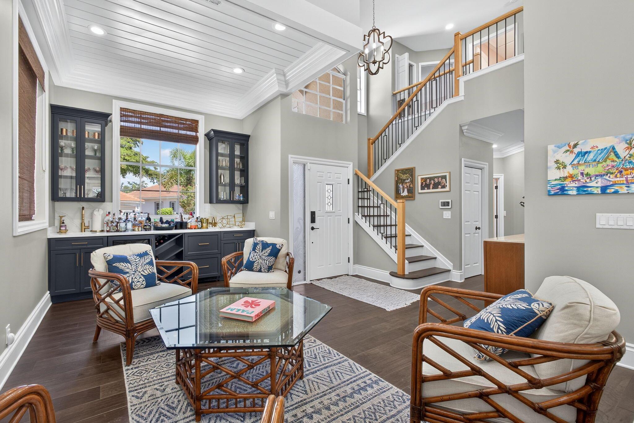 Completely renovated in 2021, this fabulous two-story home radiates modern coastal elegance. The main level features a private master suite with a spa-inspired ensuite, while upstairs offers two spacious bedrooms and a versatile loft. Soaring coffered ceilings, designer lighting, and an open, airy layout fill the home with incredible natural light and a breezy coastal vibe. High-end finishes and thoughtful details are found throughout, creating a sophisticated yet comfortable atmosphere. Enjoy breathtaking water and golf course views from nearly every room, then stroll to the clubhouse to experience the world-class amenities at The Club at Ibis. Move-in ready and tastefully reimagined, this home is truly a showpiece. Located in the NW corner of WPB, only 20 min from PBIairport.
