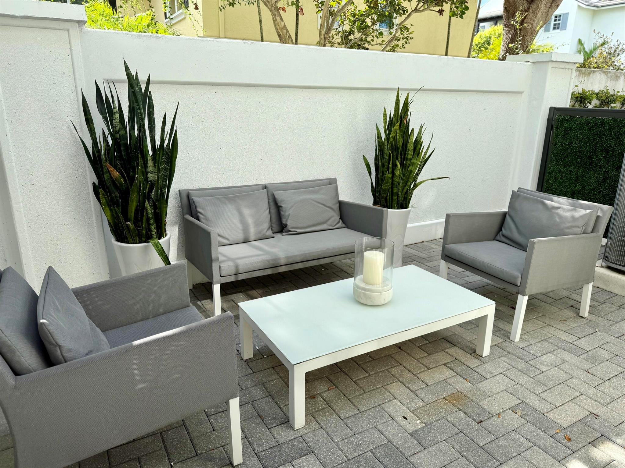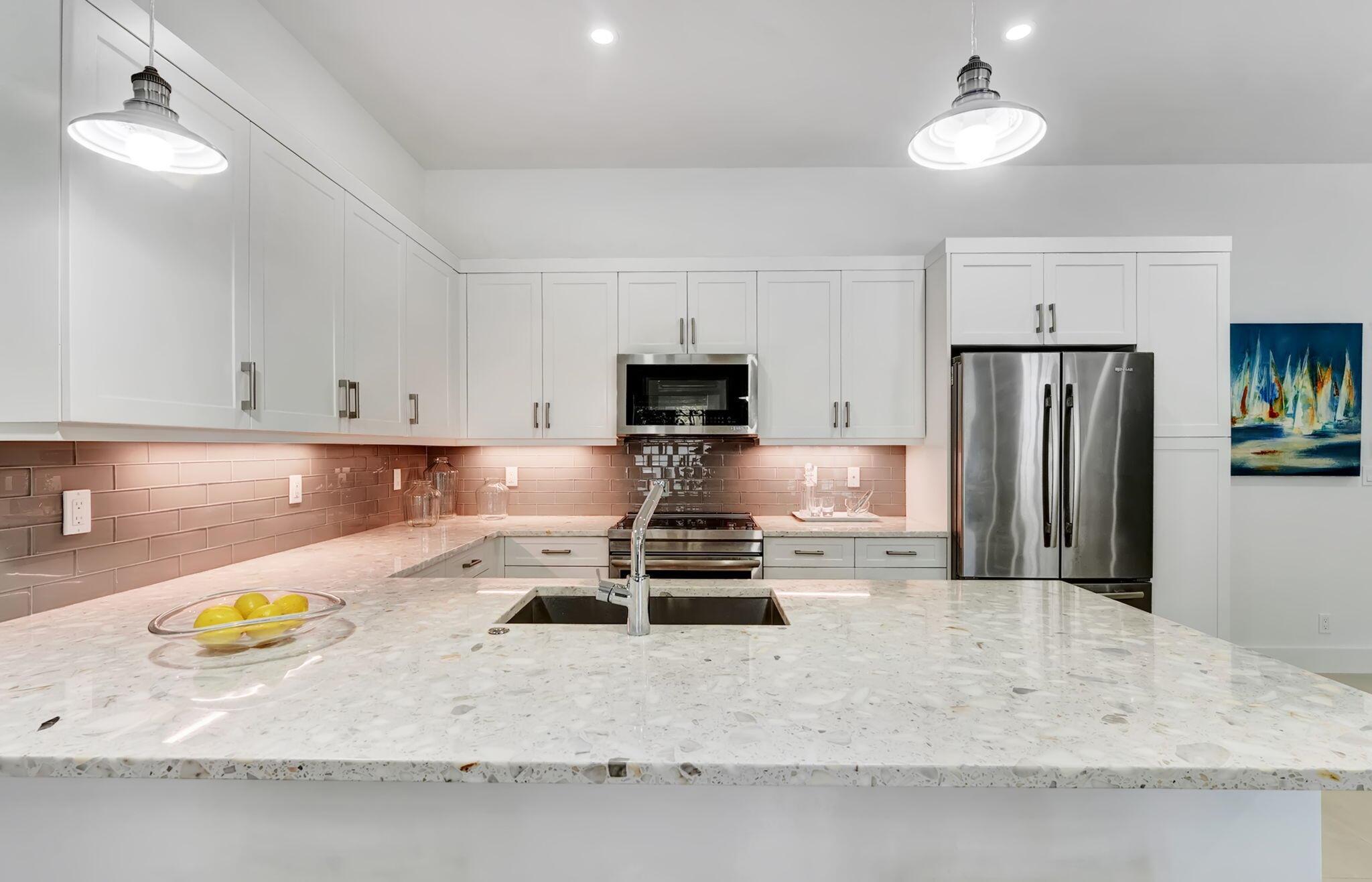 Welcome to this rarely available coastal contemporary townhome located in the most sought-after spot within the charming St. George community. This bright, immaculate home features an open floor plan designed for modern living, blending luxury and comfort. Cook in the gorgeous kitchen showcasing high end cabinetry, an expansive peninsula, quartz/marble countertops and Jenn Air appliances. Beautiful neutral tile flows through the main level, while warm wood floors upstairs add a touch of cozy sophistication. The spacious primary suite is a luxurious retreat, including a spa-inspired bathroom appointed with marble floors and countertops and two walk- in closets. The outdoor space truly makes this property special. French doors open to your private outdoor oasis