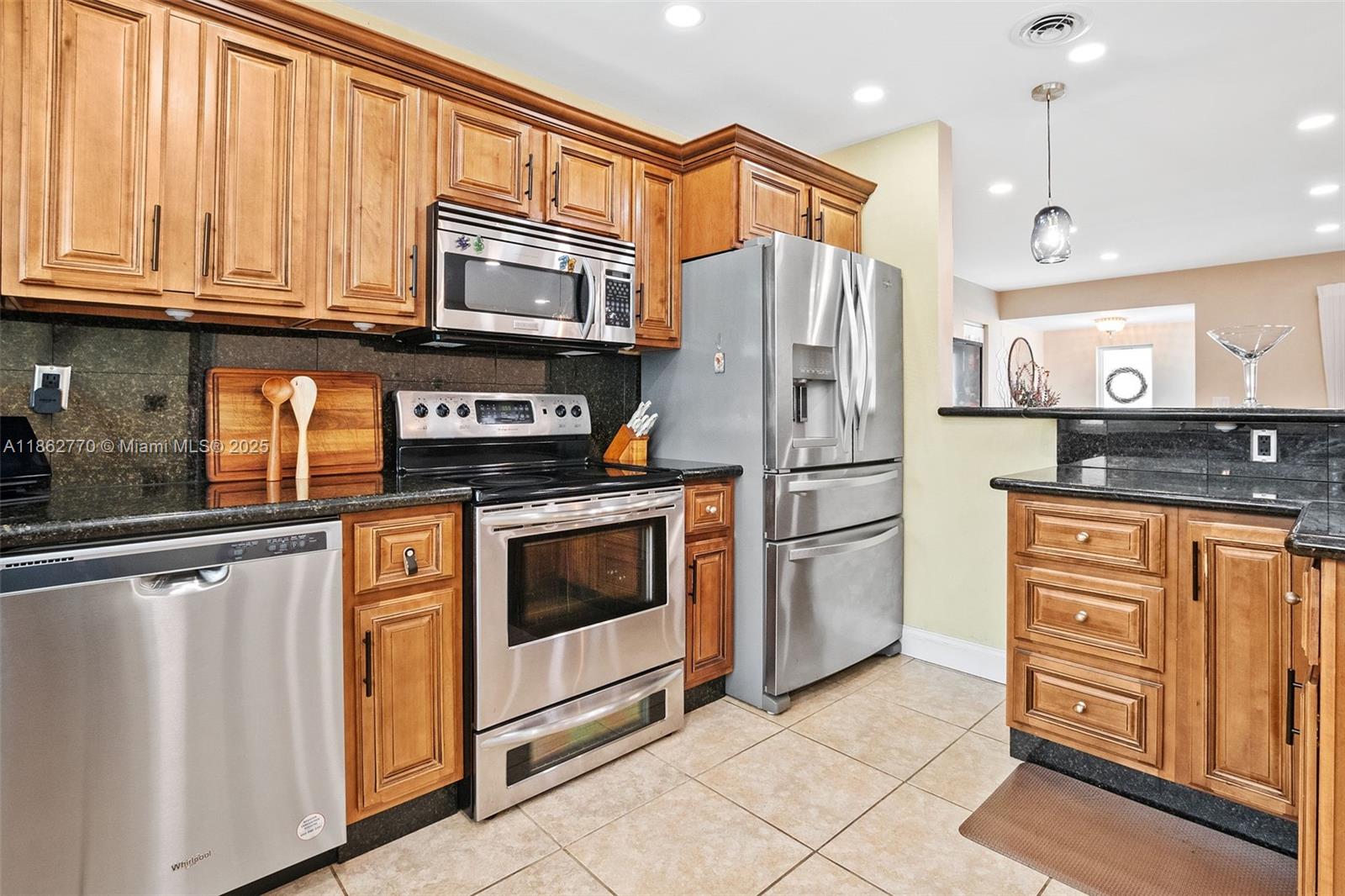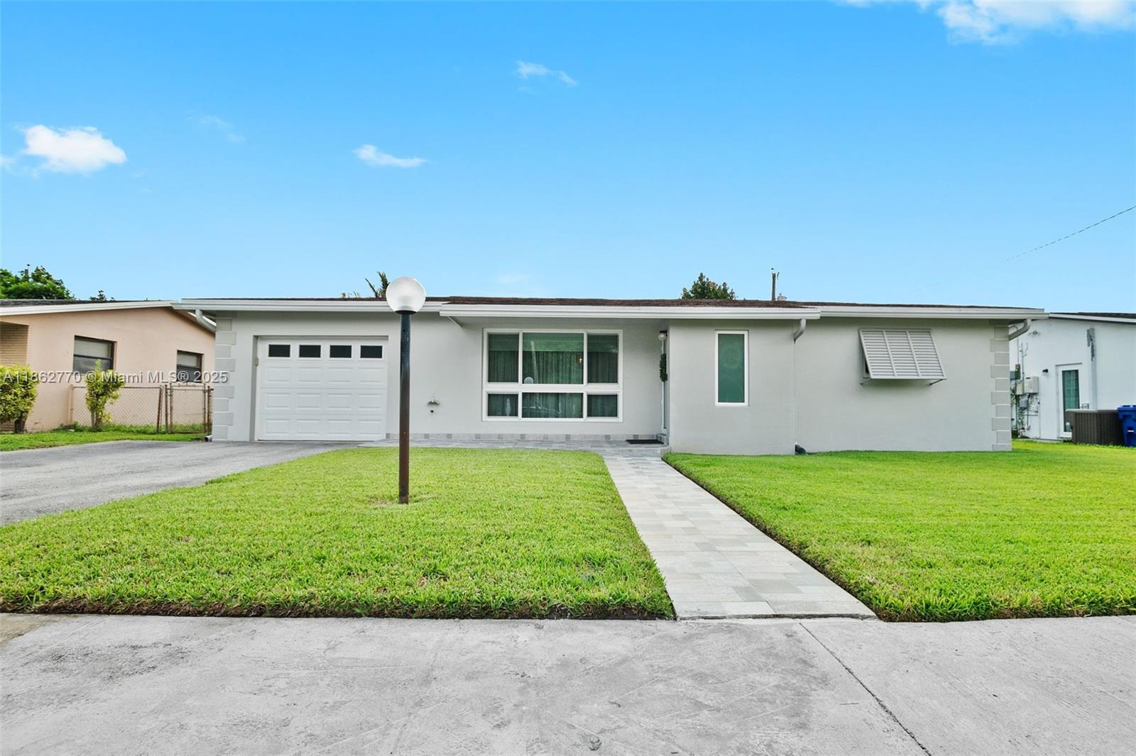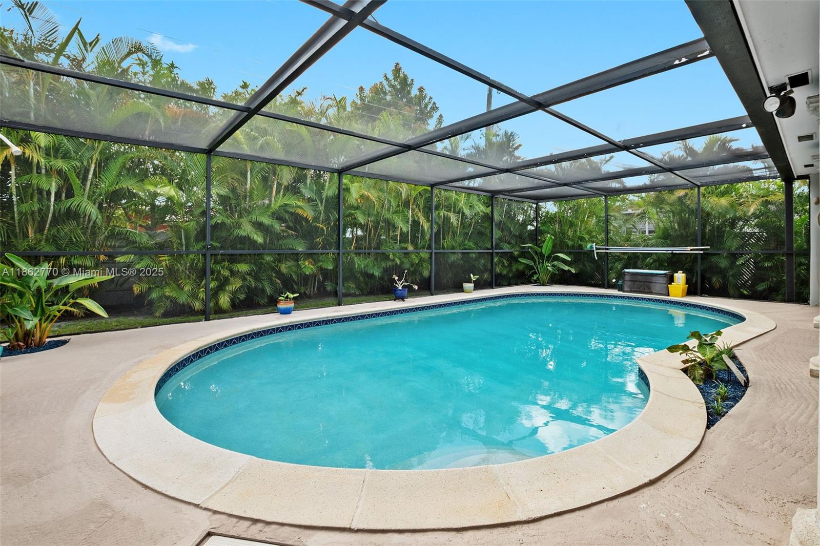 Welcome to this 3/2/1 historic Miramar home conveniently located between The Hardrock Casino and The Hardrock Stadium. This 1637 sq. ft. home is well maintained & includes: a complete package of impact windows and doors-2017 (plus Bahama & accordion shutters) roof-2017, hurricane garage door and tankless water heater-2021, new electrical panel box-2020, Bluetooth smoke and carbon monoxide detectors, LED can lights-2020, pool pump-2022, HVAC-2017. Chef's kitchen has stainless steel package, granite counters, pass thru window to screened poolside oasis for dinning alfresco. Tiled floors throughout entire home. Both baths completely updated in 2022 with lighted mirrors, bluetooth fans, and smart speakers. Exterior painted-2023, Irrigation system. Termite tent-June 2025. This is a must see!