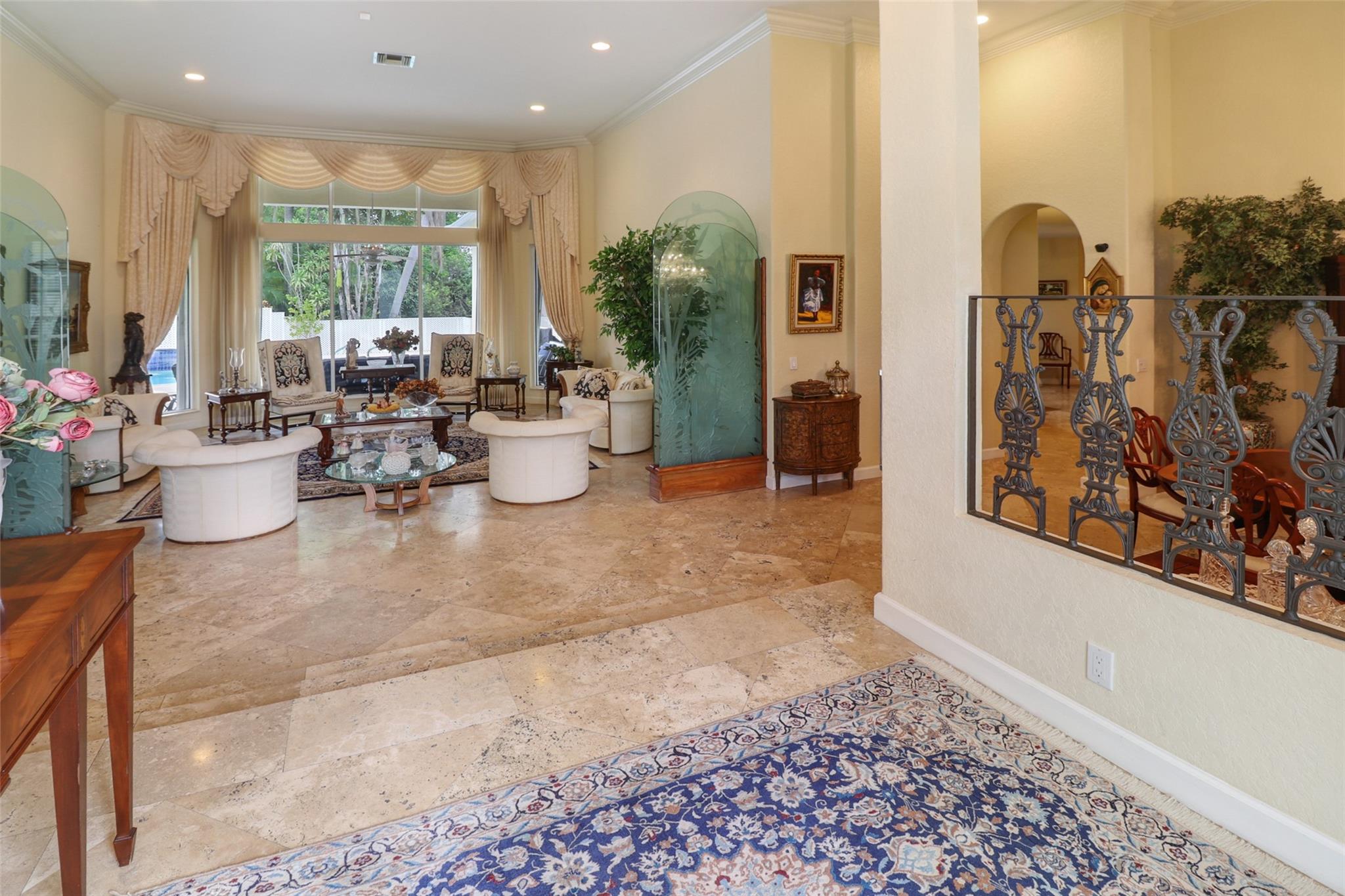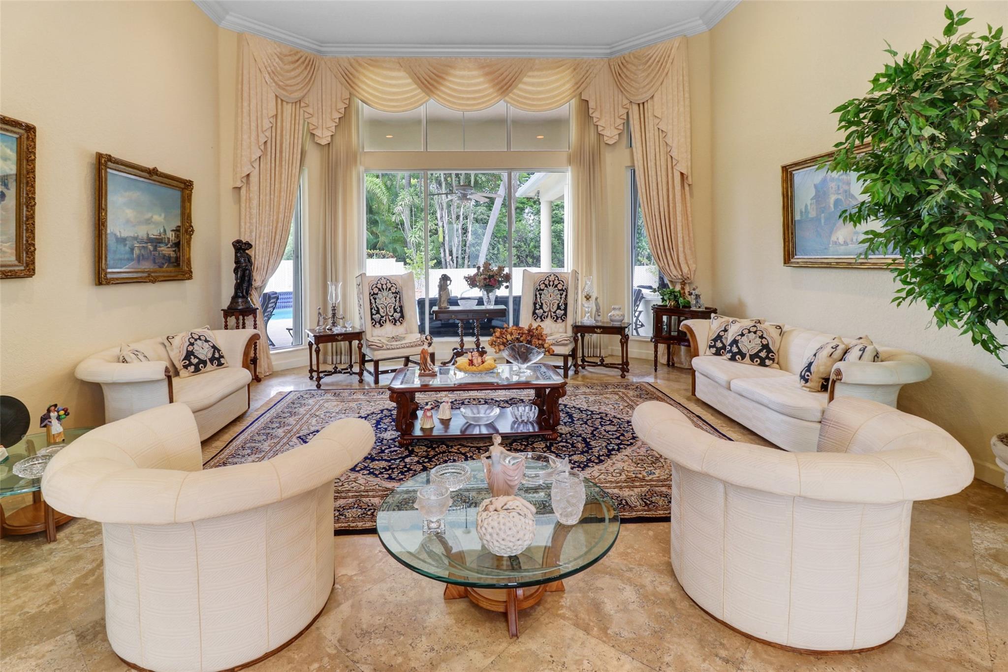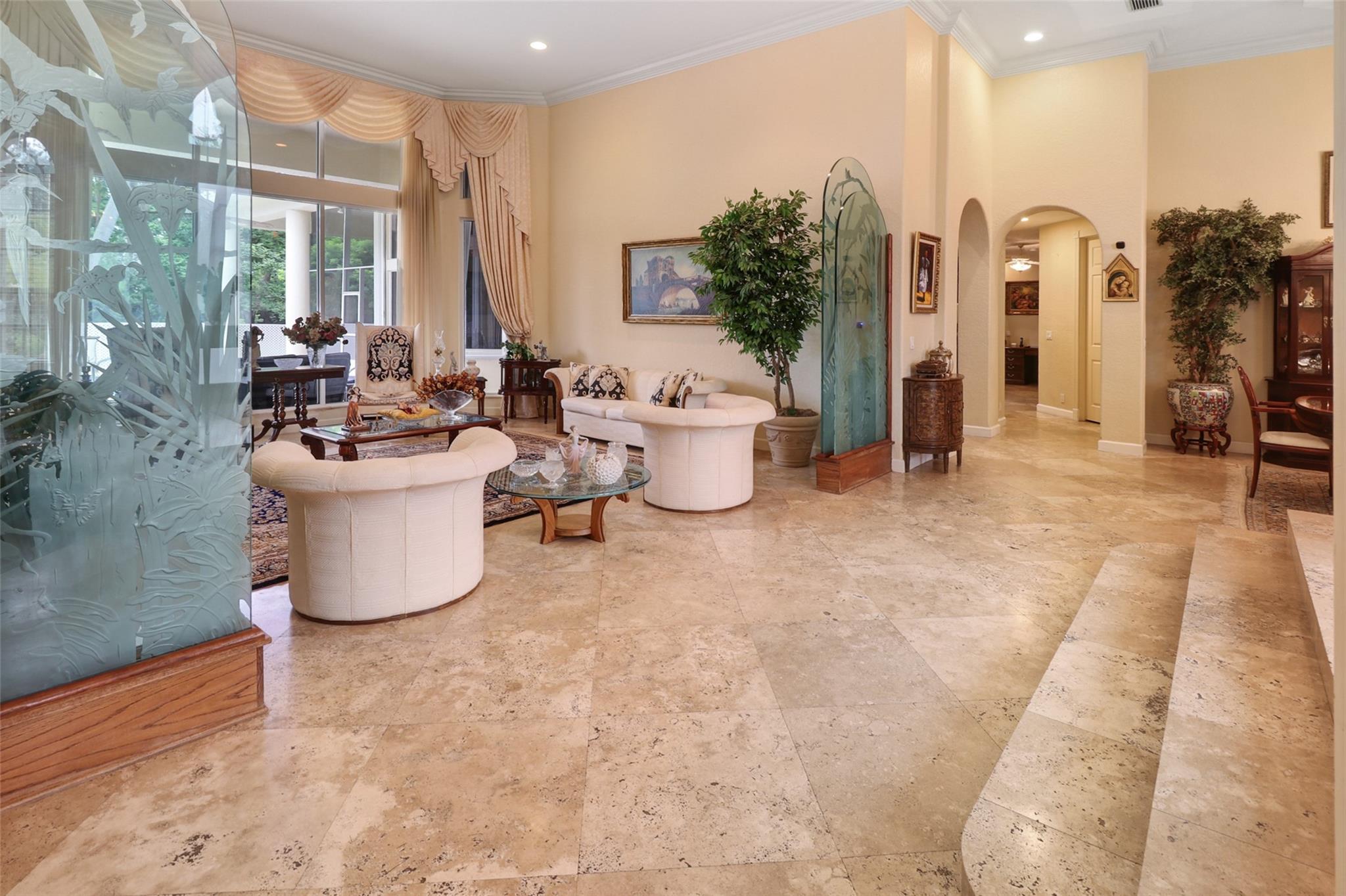 Incredible Opportunity to own this one-of-a-kind home. Tucked behind the guarded gate entrance of Cypress Head this estate waits for you. Old World Travertine Tiles Throughout the main flow of the house. Beautiful wood like tile in all the bedrooms. 14 ft ceilings with gorgeous crown molding. 2 magnificent chandeliers imported from Italy. Designer custom shades on all the windows. Beautiful kitchen with huge Island. Accordion Hurricane Shutters on all the windows and hurricane garage doors. All new 2024 Roof, 2023 water heater. 3 brand new ac and an additional mini split in master bedroom to keep you extra cool. Amazing open pool area with a screened in patio to the side. Full grown Mango trees in the beautiful and large back yard. NO SHOWINGS TILL OPEN