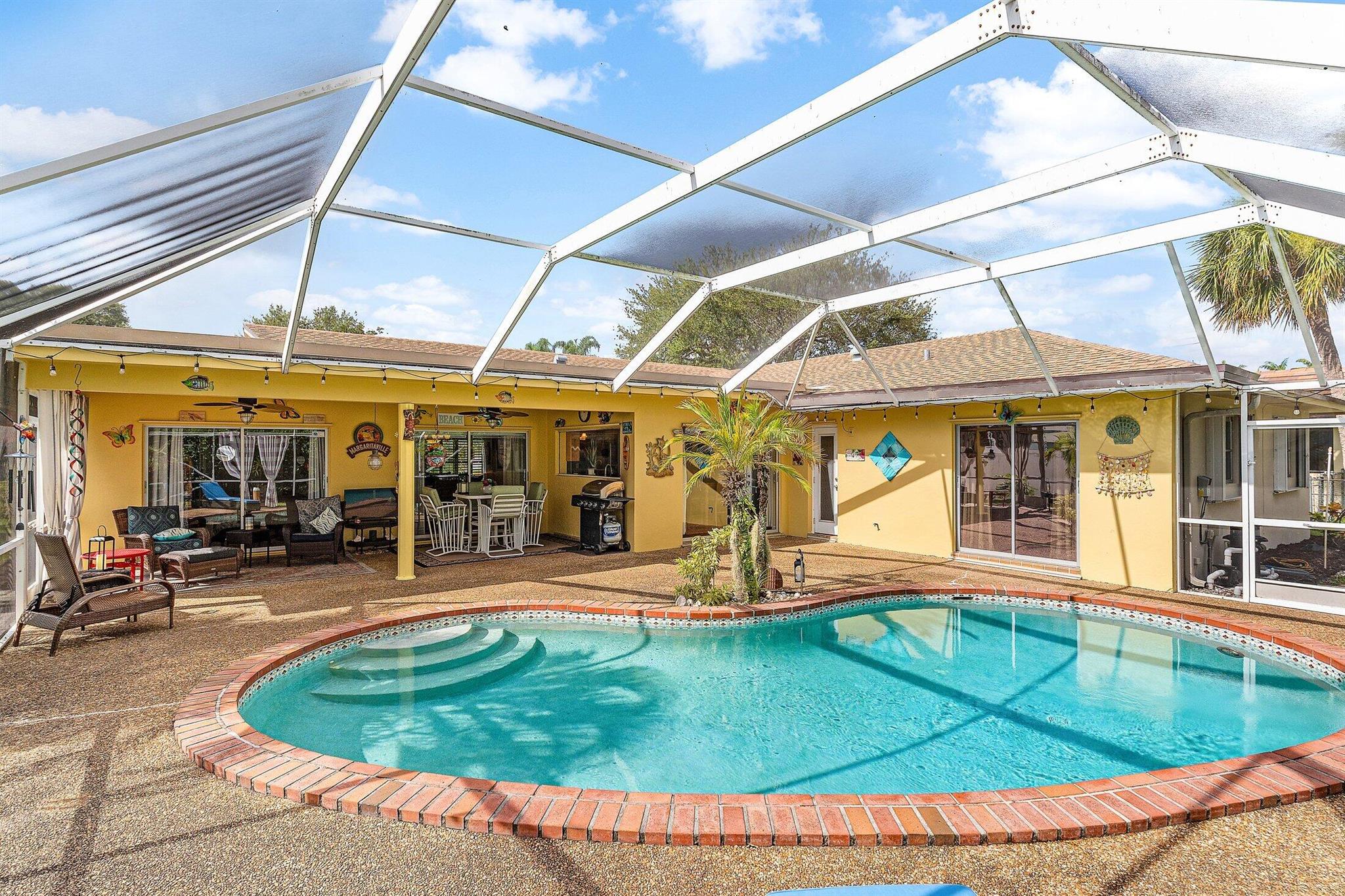 Seller offering up to $10,000 in concessions with acceptable offer!! This 4-bedroom, 2-bath home offers 2,169 sq. ft. of comfortable living in the welcoming East Boca Raton neighborhood of Palm Beach Farms. The exterior was recently painted, and updates include a hurricane-rated garage door, front door, and front window, all just over three years old while all other window and door coverings have sliders. The roof and AC were replaced in 2017. Enjoy a screened saltwater pool, perfect for relaxing or entertaining, with a private setting viewed through sliding glass doors from the kitchen. The split-bedroom layout offers both privacy and space, while the open living areas feel comfortable and inviting.