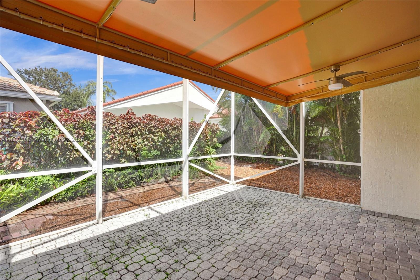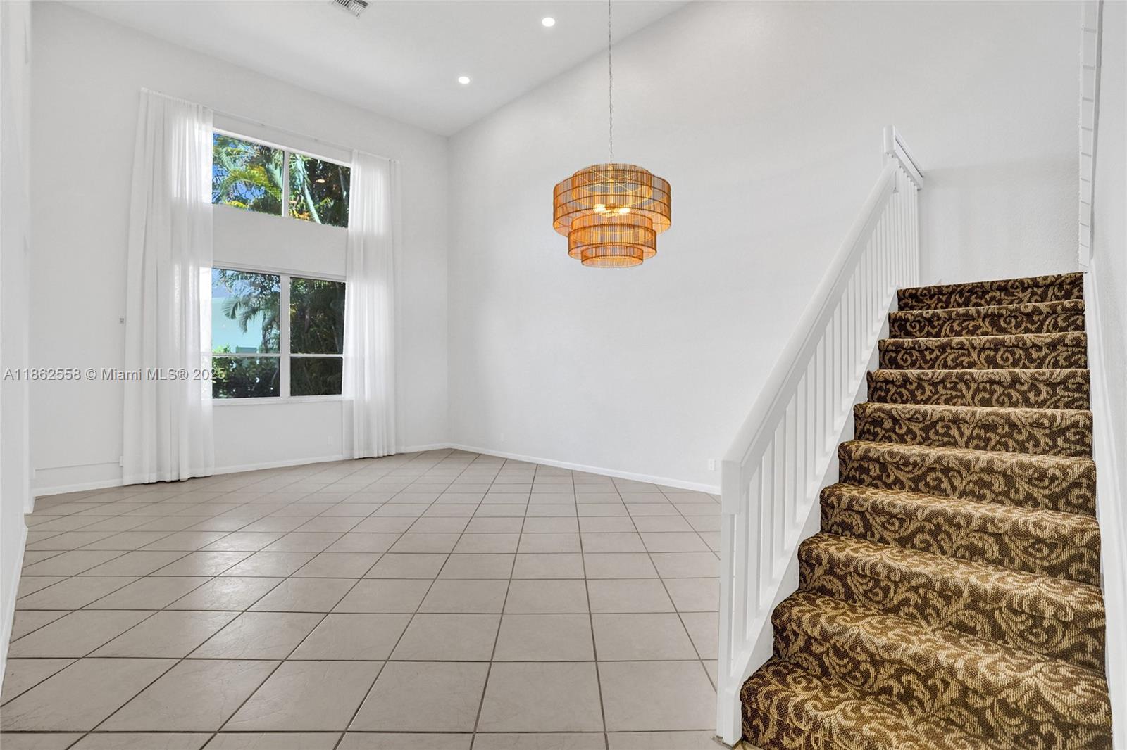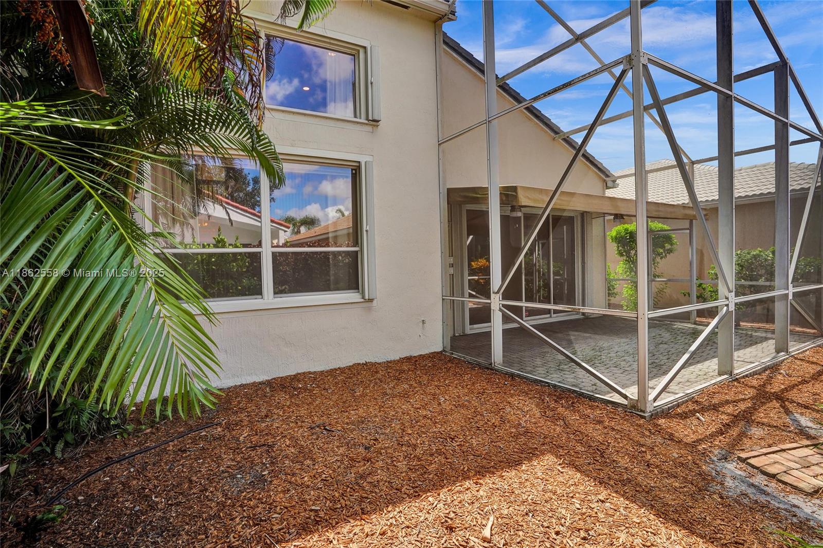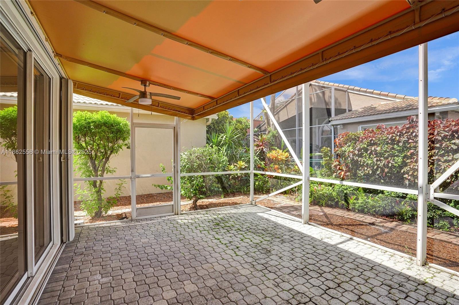 HURRY! NEW ROOF! Discover exceptional value in this updated 2-story home.This light & bright residence offers 3 bedrooms (desirable downstairs primary suite), a flexible built-in office/loft area, impressive volume ceilings with recessed LED lighting, tasteful off-white tile set on the diagonal, luxury vinyl flooring. The open-concept kitchen features 42'' light oak cabinetry, gleaming granite countertops, a marble tile backsplash, and stainless steel appliances, all complemented by a charming breakfast nook. Enjoy the convenience of updated bathrooms and a newer washer & dryer. Accordion hurricane shutters provide storm protection. A additional room adds extra living space, while the private backyard retreat features an inviting screened patio surrounded by lush landscape design .