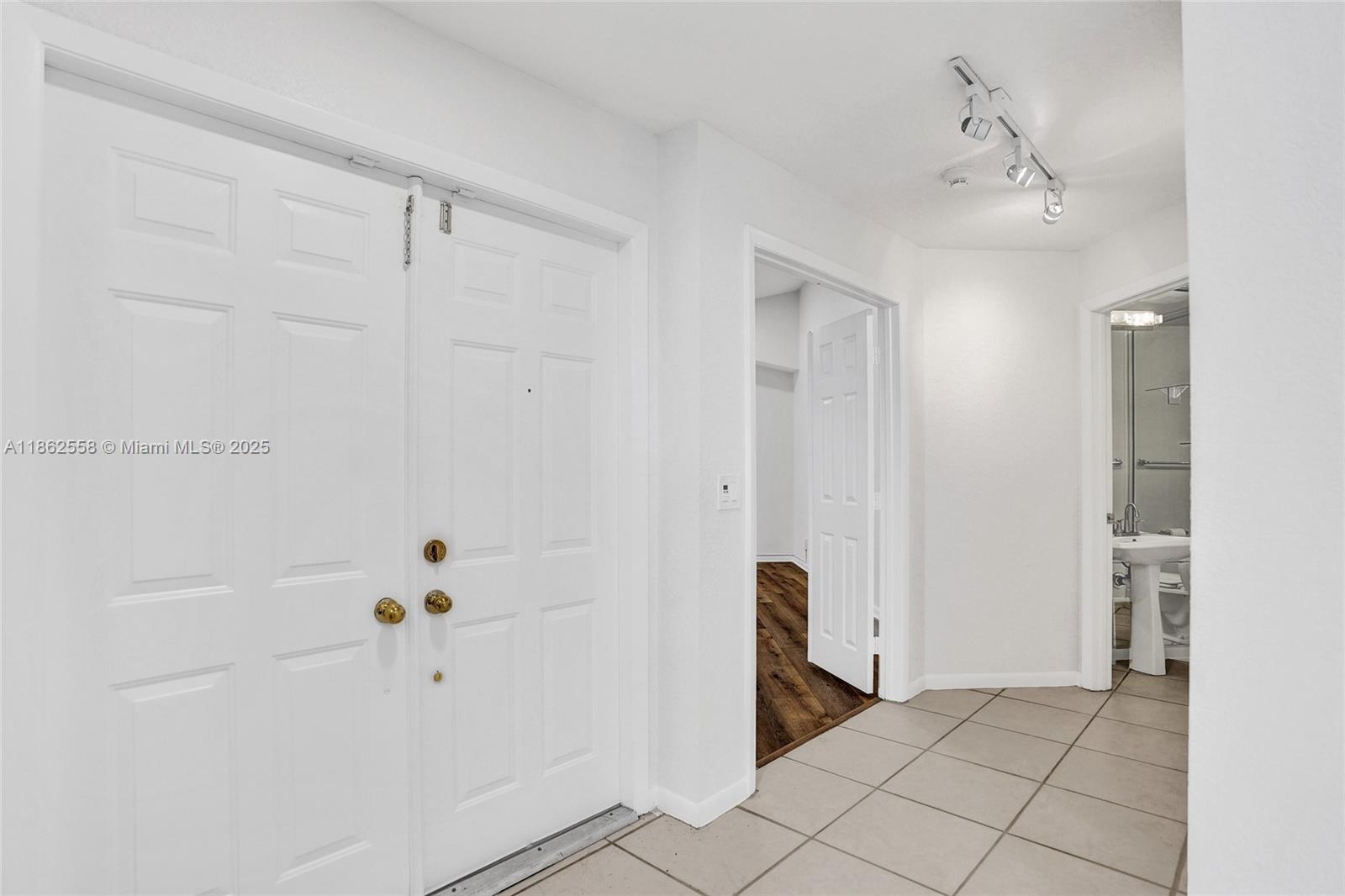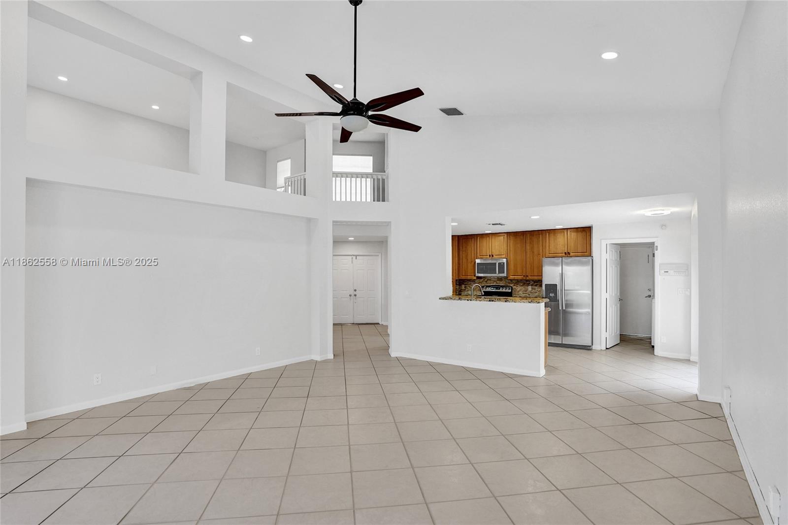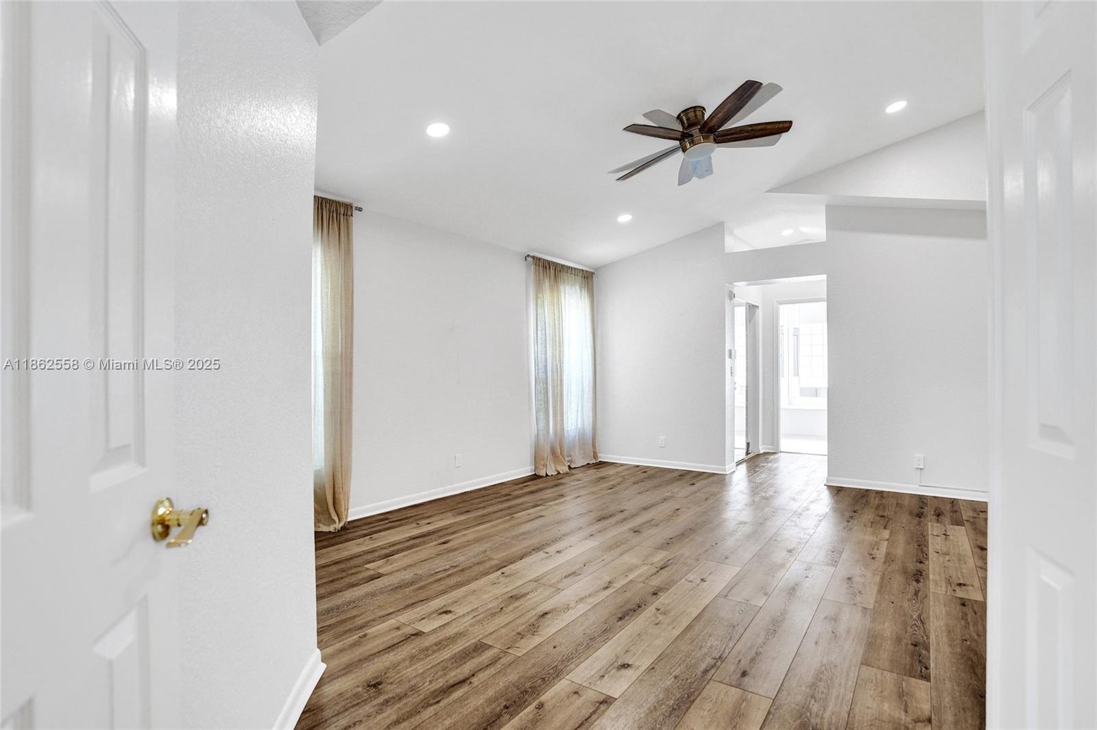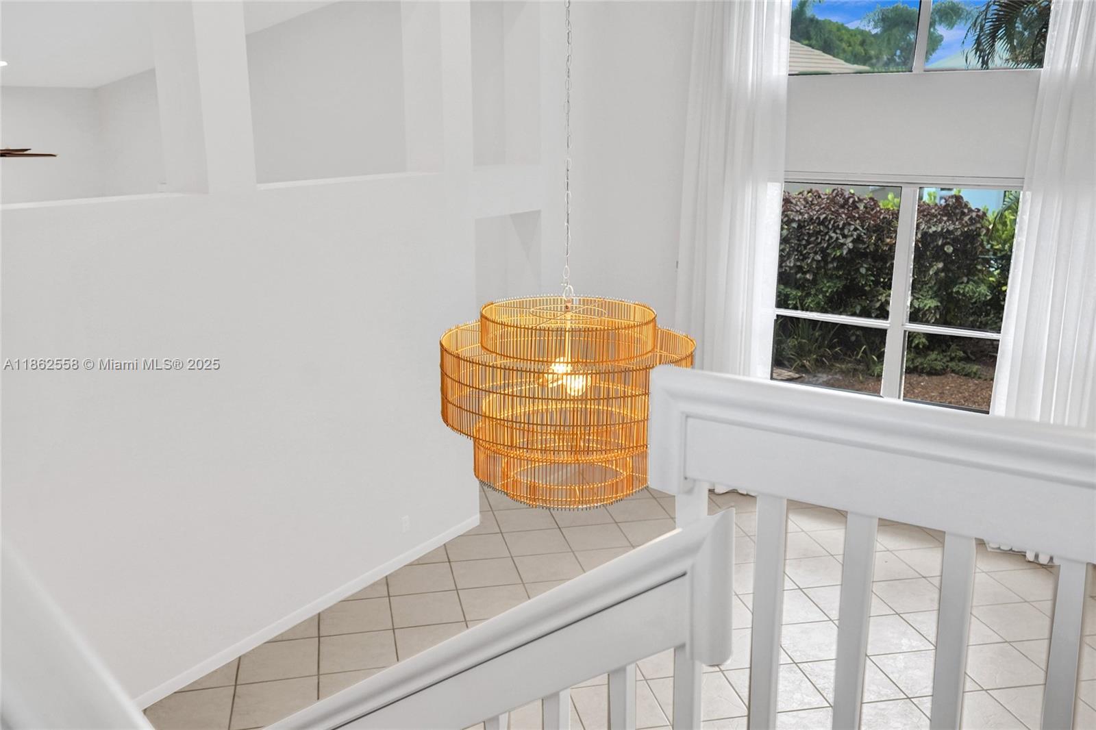 HURRY! NEW ROOF! Discover exceptional value in this updated 2-story home.This light & bright residence offers 3 bedrooms (desirable downstairs primary suite), a flexible built-in office/loft area, impressive volume ceilings with recessed LED lighting, tasteful off-white tile set on the diagonal, luxury vinyl flooring. The open-concept kitchen features 42'' light oak cabinetry, gleaming granite countertops, a marble tile backsplash, and stainless steel appliances, all complemented by a charming breakfast nook. Enjoy the convenience of updated bathrooms and a newer washer & dryer. Accordion hurricane shutters provide storm protection. A additional room adds extra living space, while the private backyard retreat features an inviting screened patio surrounded by lush landscape design .