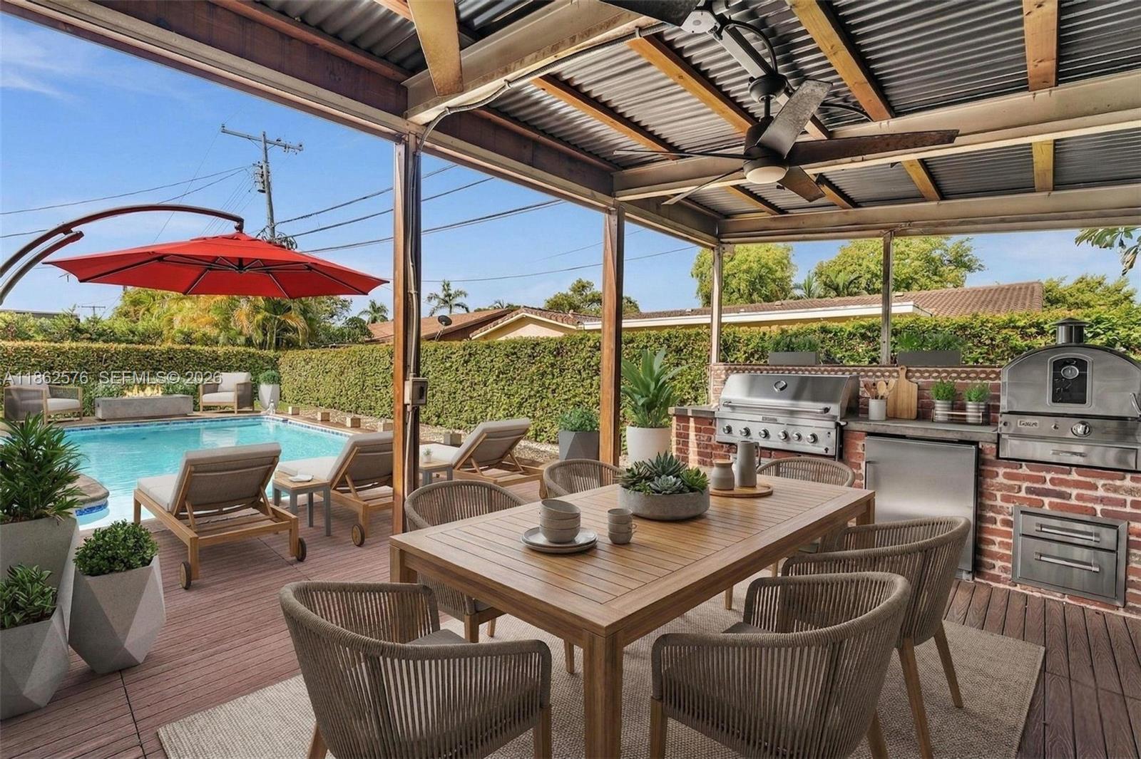 Best deal in Highland Lakes – Gated Community, No HOA! Step into your own tropical oasis in this beautifully updated 4BR/2BA home. Bright, open layout, kitchen featuring granite countertops & wood cabinets, opening to family room overlooking the pool. Covered gazebo with full summer kitchen, BBQ & smart TV, makes entertaining effortless. Pool resurfaced in 2020, deck redone including torch lighting, new sprinkle system, well sprinkle, and large fenced yard offers total privacy. New roof 2024. Prime location near top schools, shopping, dining, Aventura, Sunny Isles, with easy access to I-95, close to Miami & Ft. Lauderdale airports, and walking distance to houses of worship. Don’t miss this incredible opportunity to own in one of the most sought-after neighborhoods! *3D Virtual Tour*