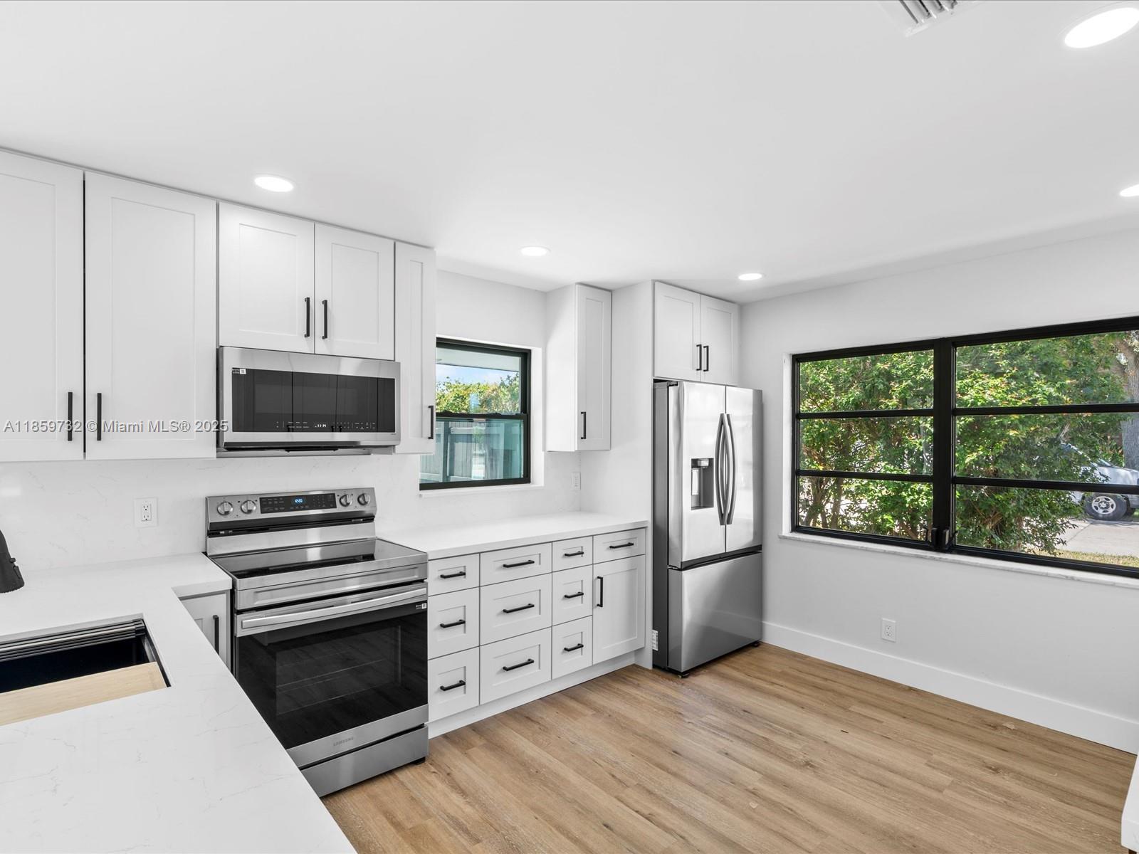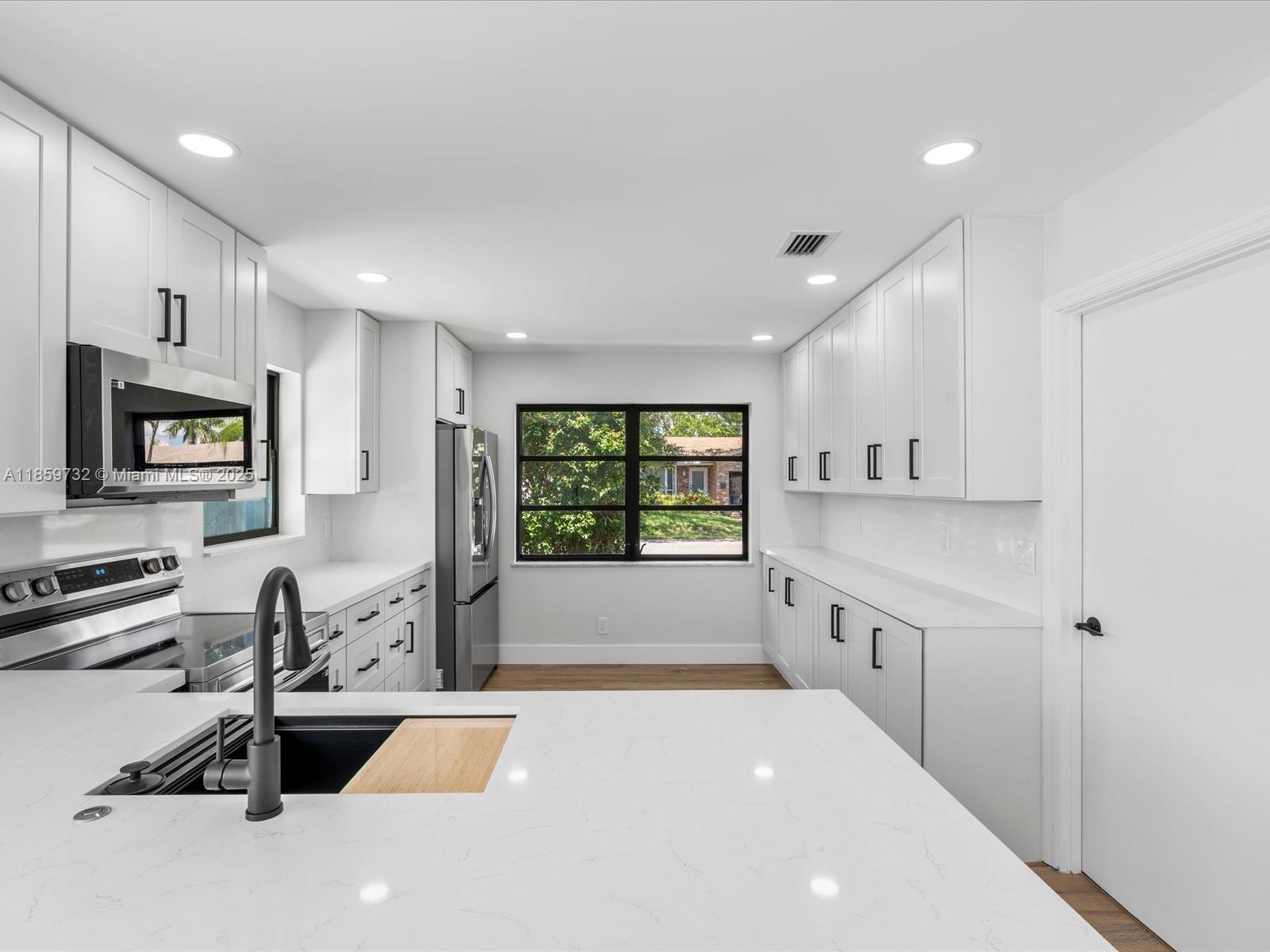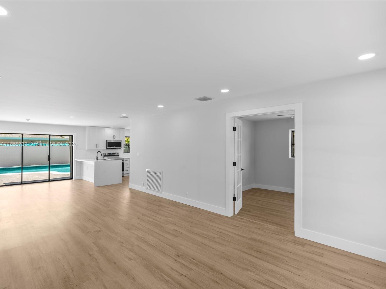 This completely renovated 4-bedroom, 2-bath home with a den boasts a spacious, open floor plan. The oversized kitchen features all new appliances, perfect for family gatherings and entertaining. Fresh luxury vinyl flooring, a new AC with ductwork, and a new roof add modern comfort and peace of mind. The master suite includes a large walk-in closet and overlooks the backyard oasis with a large outdoor pool. The property sits on an oversized corner lot in a quiet, desirable neighborhood, offering privacy and plenty of space. A great opportunity for comfortable, updated living in a peaceful setting.