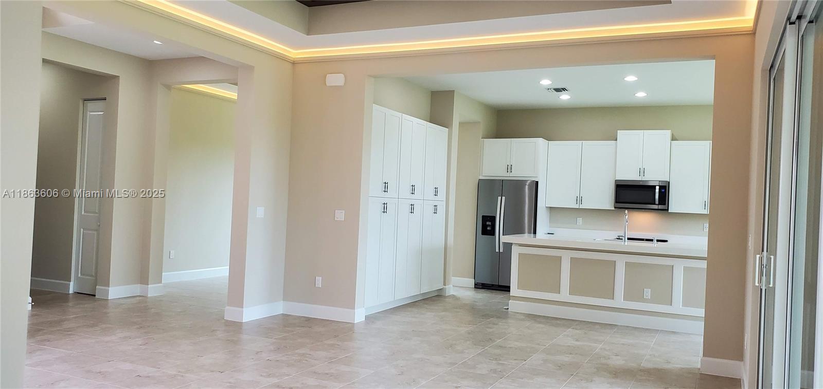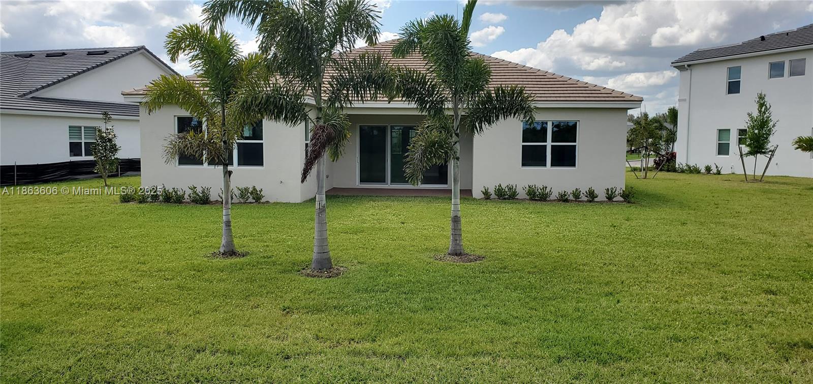Newly built in 2025, this home is situated on a premium pie-shape lot on a cul-de-sac and an oversized backyard, perfect for outdoor fun and relaxation. This home has abundant of natural light, featuring 4 bedrooms, 3 full baths, and an extended 3 car garage. This home has tile flooring throughout and an open kitchen complete with stainless-steel appliances. Both kitchen and bathrooms have upgraded white shaker style cabinets and quart countertops. The ensuite Owners bath has an upgraded frameless glass walk in shower, stylish shower wall tiles and 2 closets. Beautiful trace ceiling accent trims with indirect wall lighting. Hurricane impact-resistant windows and doors.