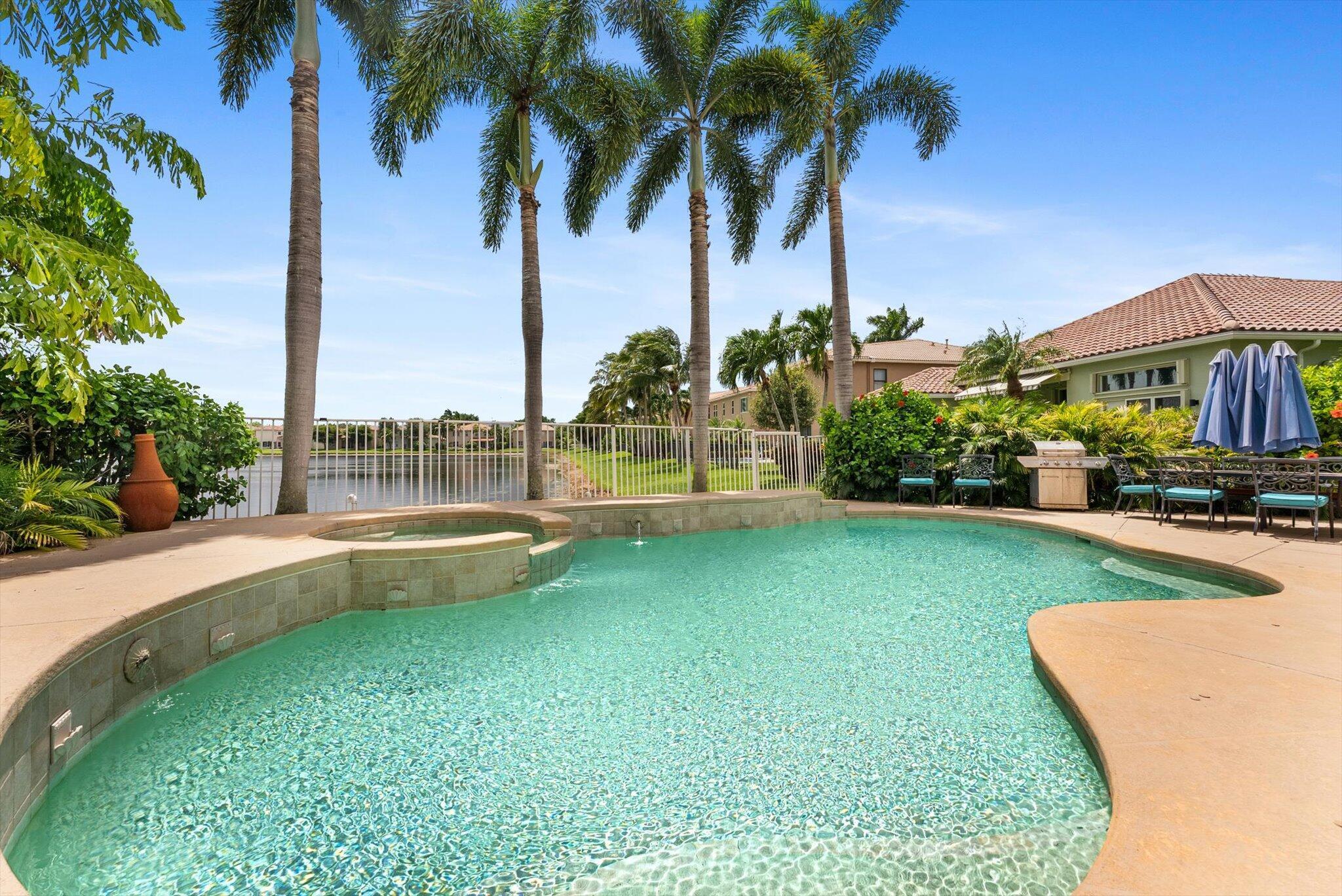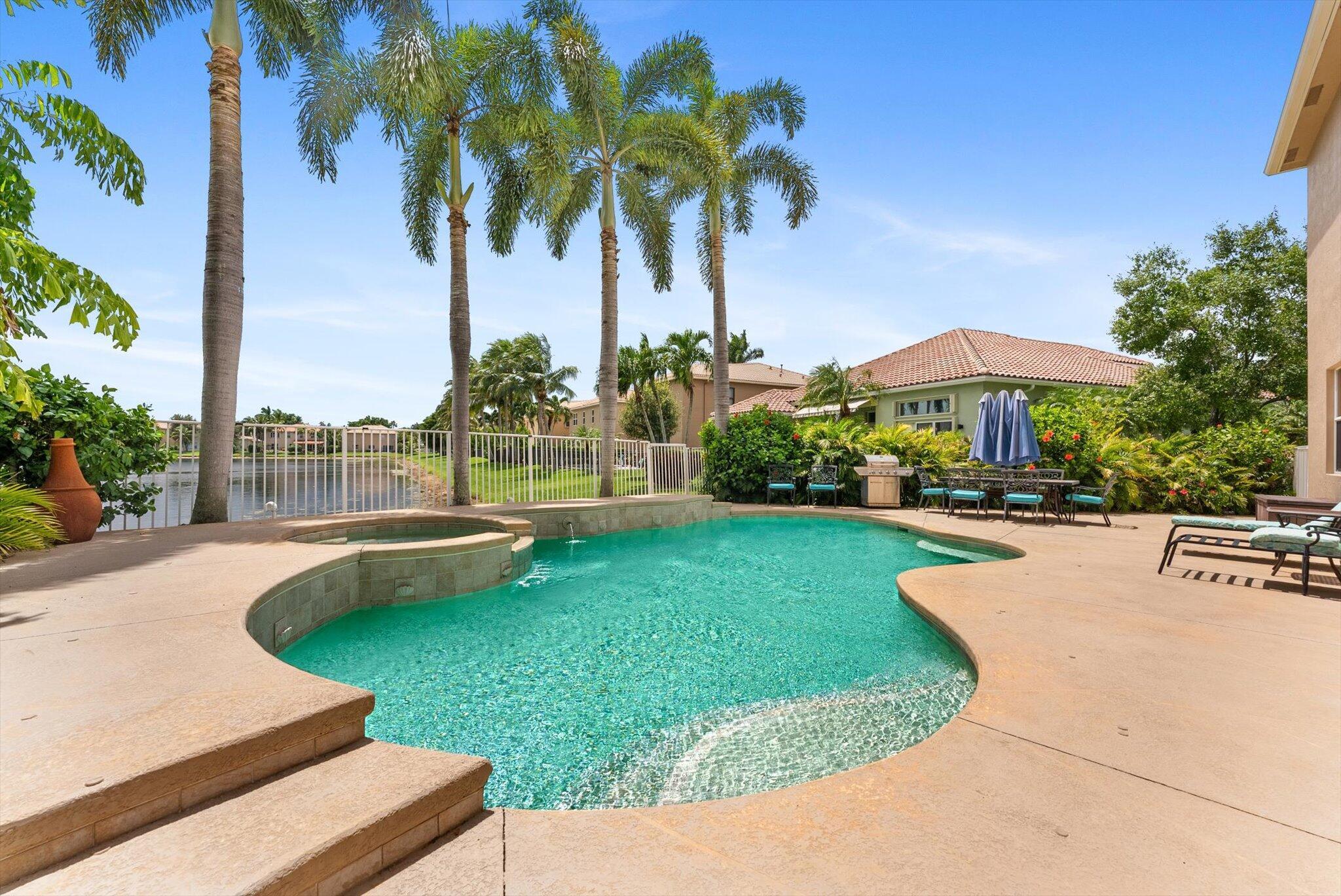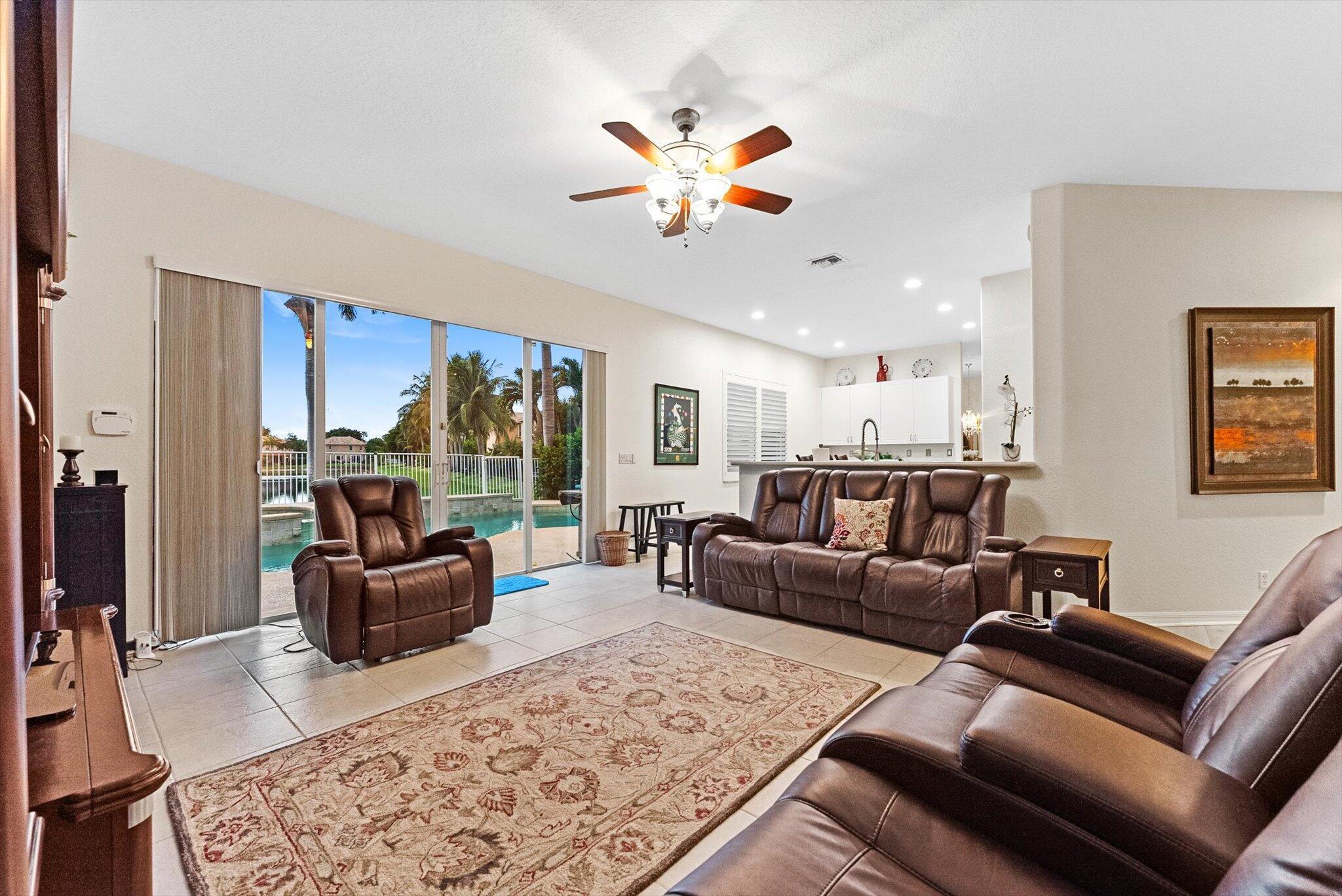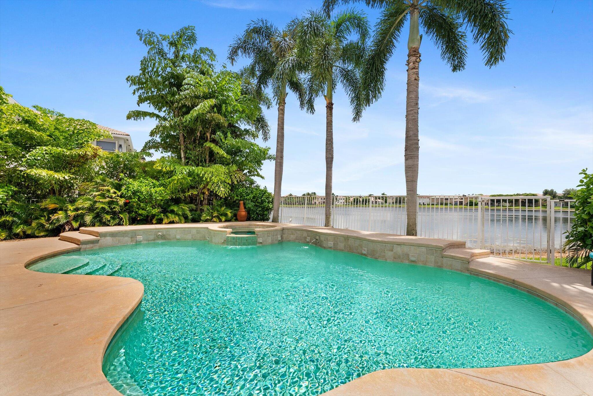 Experience grand lakefront living in the gated Black Diamond community. This stunning home boasts soaring 20+ ft. ceilings, a dramatic curved staircase, and expansive windows showcasing the resort-style pool and sparkling lake. The chef's kitchen features a large island, stainless steel appliances--including brand new dishwasher and refrigerator-- a huge pantry and natural gas stove. With 4 bedrooms, a versatile sitting room in the primary suite, a first-floor guest bedroom, and a spacious loft, the home adapts to any lifestyle. Additional highlights: 3-car garage, gas water heater, plantation shutters, leaf guard gutters, and a prime location near shops, restaurants, the Wellington Mall, and top-rated schools.