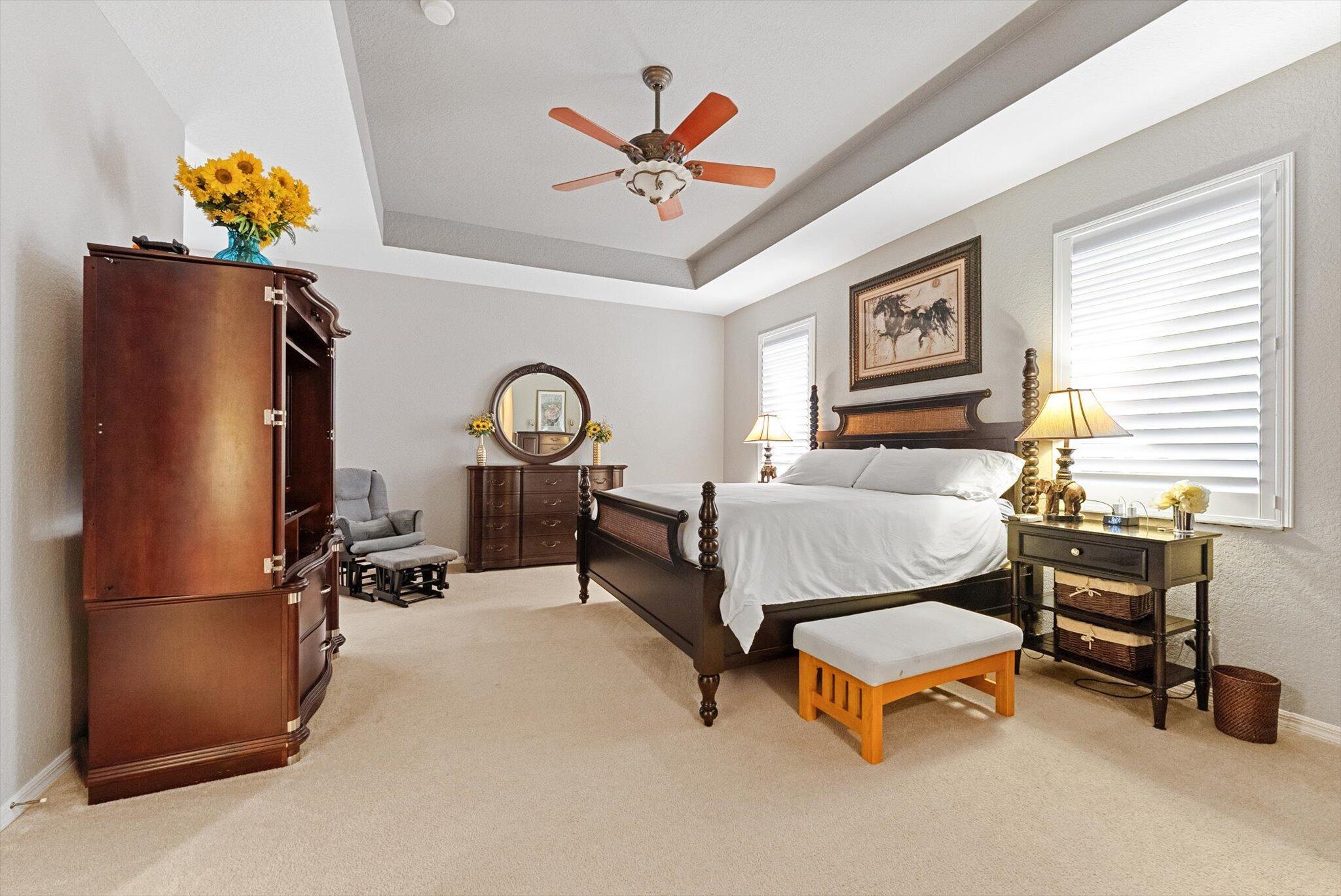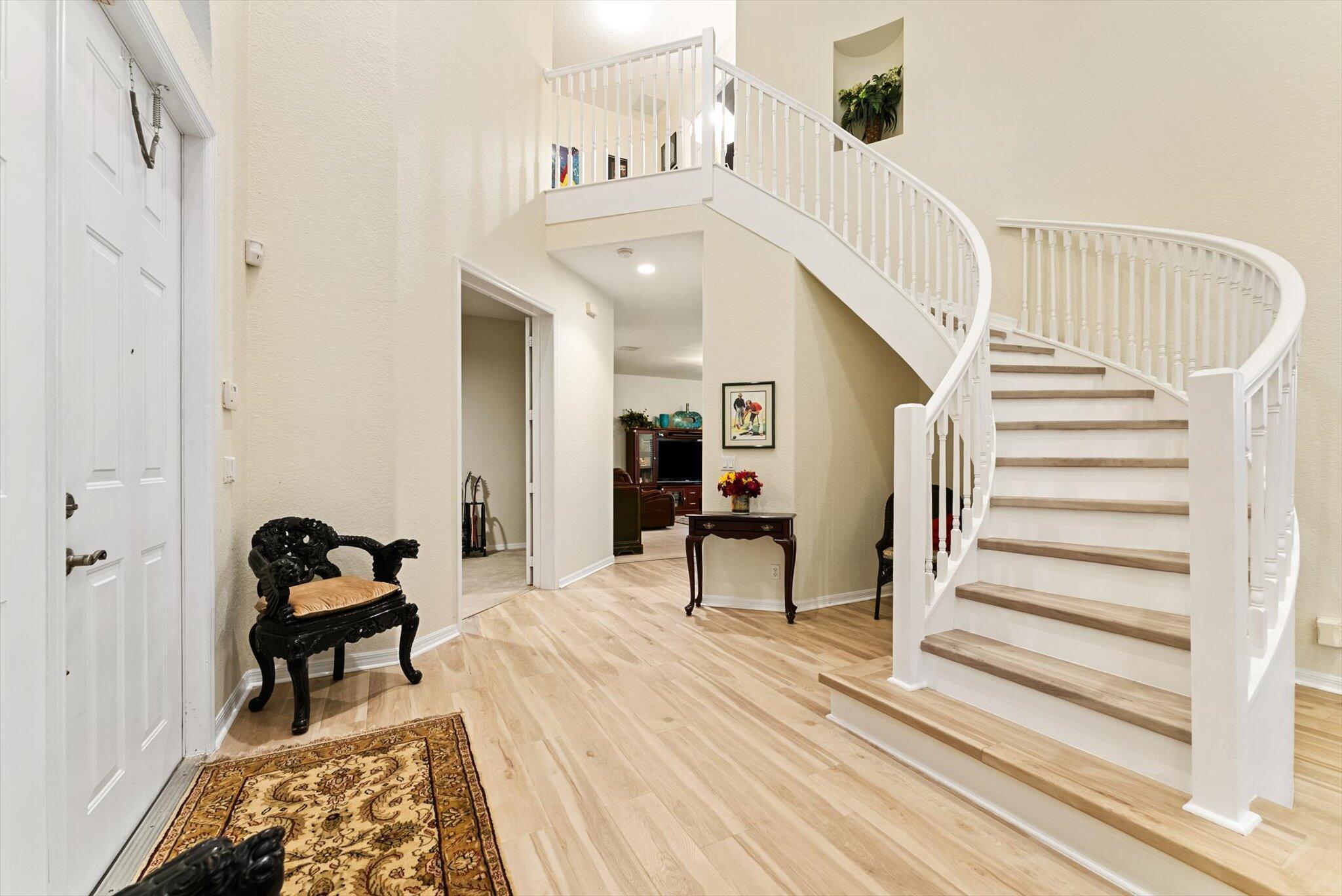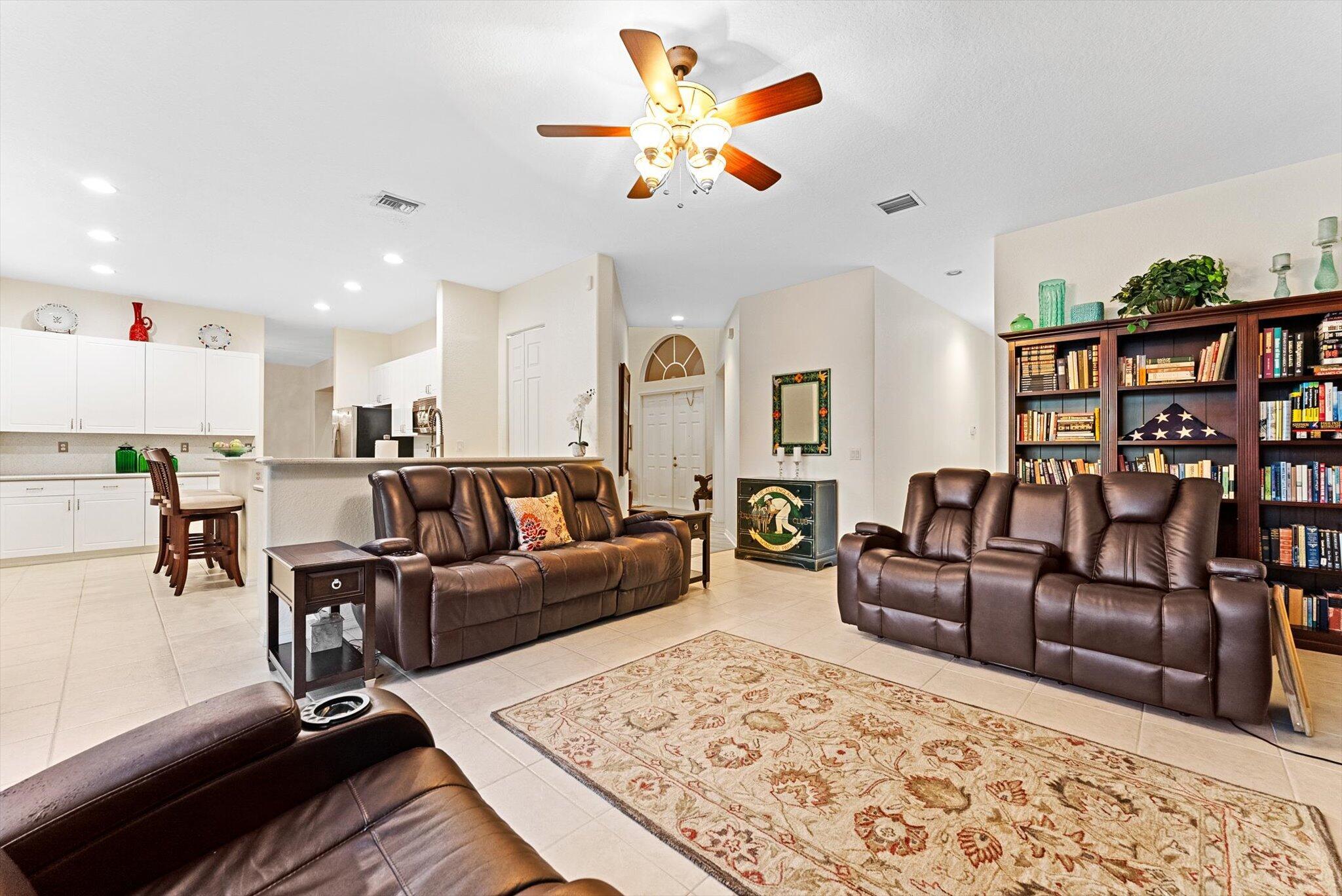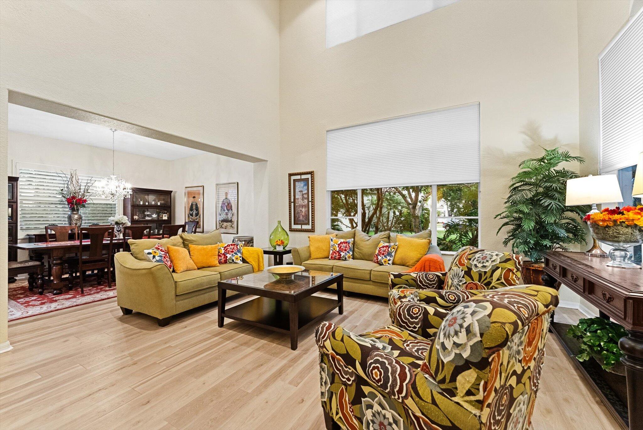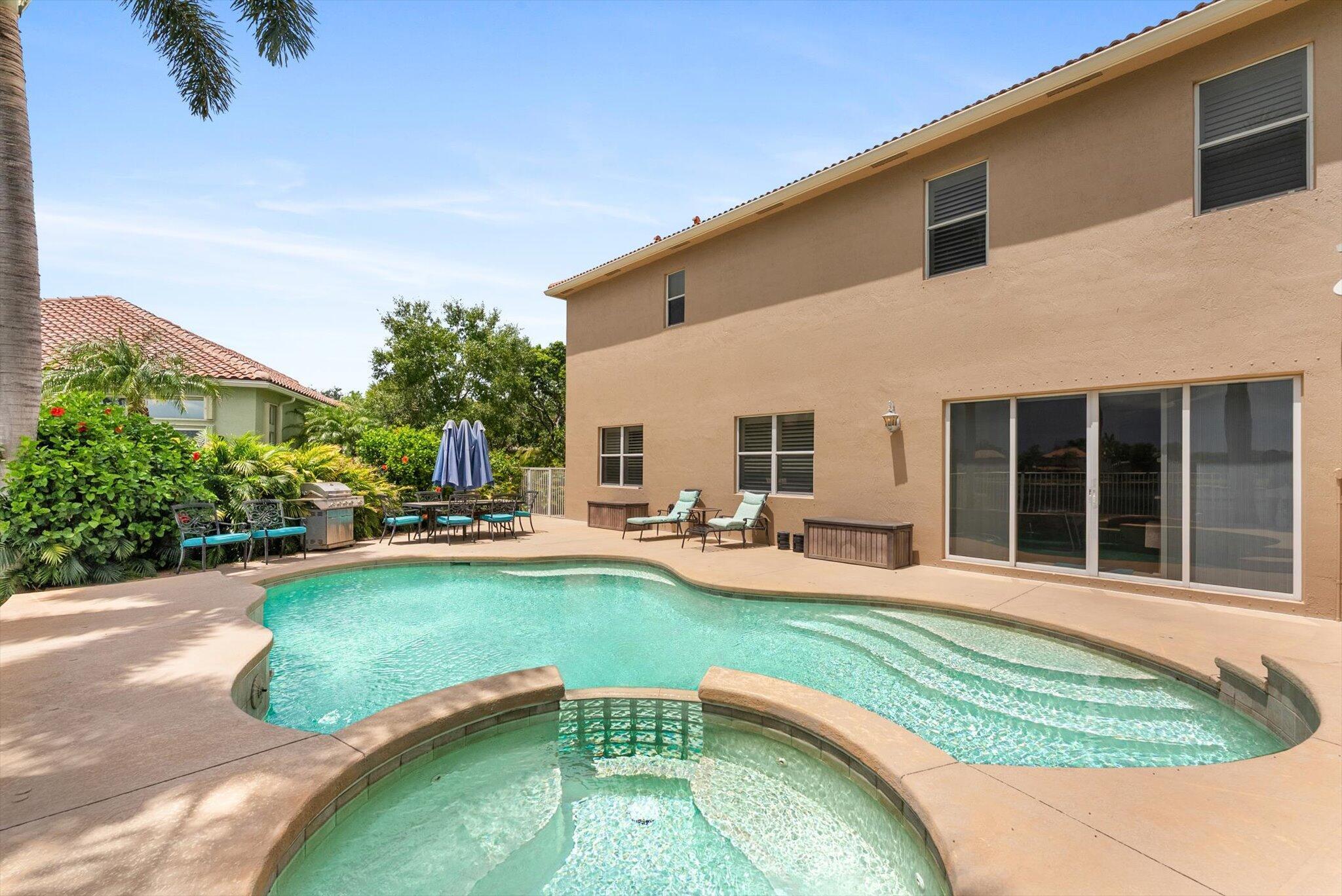 Experience grand lakefront living in the gated Black Diamond community. This stunning home boasts soaring 20+ ft. ceilings, a dramatic curved staircase, and expansive windows showcasing the resort-style pool and sparkling lake. The chef's kitchen features a large island, stainless steel appliances--including brand new dishwasher and refrigerator-- a huge pantry and natural gas stove. With 4 bedrooms, a versatile sitting room in the primary suite, a first-floor guest bedroom, and a spacious loft, the home adapts to any lifestyle. Additional highlights: 3-car garage, gas water heater, plantation shutters, leaf guard gutters, and a prime location near shops, restaurants, the Wellington Mall, and top-rated schools.