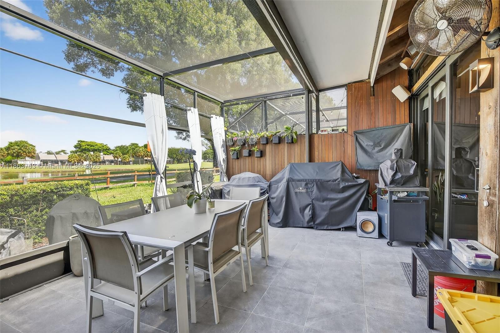 Welcome to your dream home in Pembroke Pines! This stunning 3-bedroom, 3-bath townhouse offers breathtaking sunset views right on the prestigious Pembroke Lakes Golf Course! Enjoy peaceful mornings or relaxing evenings on your serene patio featuring Ipe hardwood accents, a koi pond with a soothing waterfall, and brand-new tile work on both the front porch and patio. Inside, elegance meets comfort with Lagos Azul Portuguese limestone flooring throughout the first level, a spacious 16x12 master suite, and two generous 12x12 bedrooms. Updates galore: new roof & A/C (2021), impact windows (2022), water heater (2025 w/ 6-yr warranty), plus Whirlpool stainless appliances and LG washer & dryer. Must have a pre approval or POF. Schedule on ShowingTime