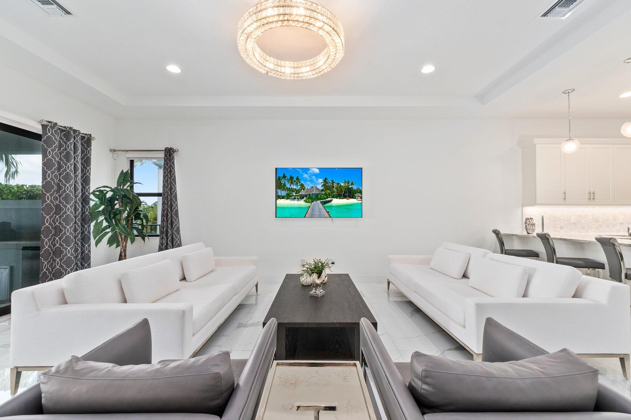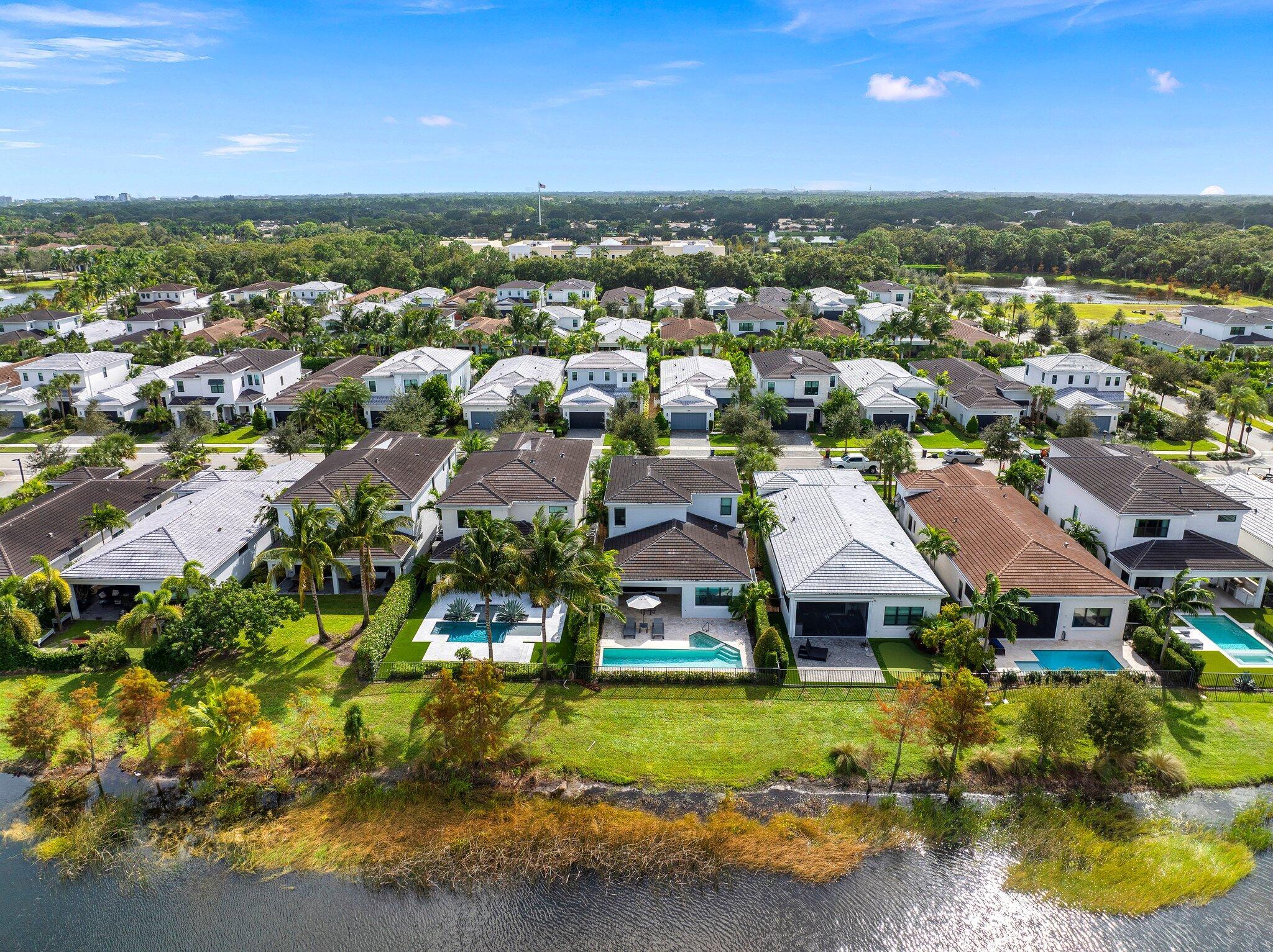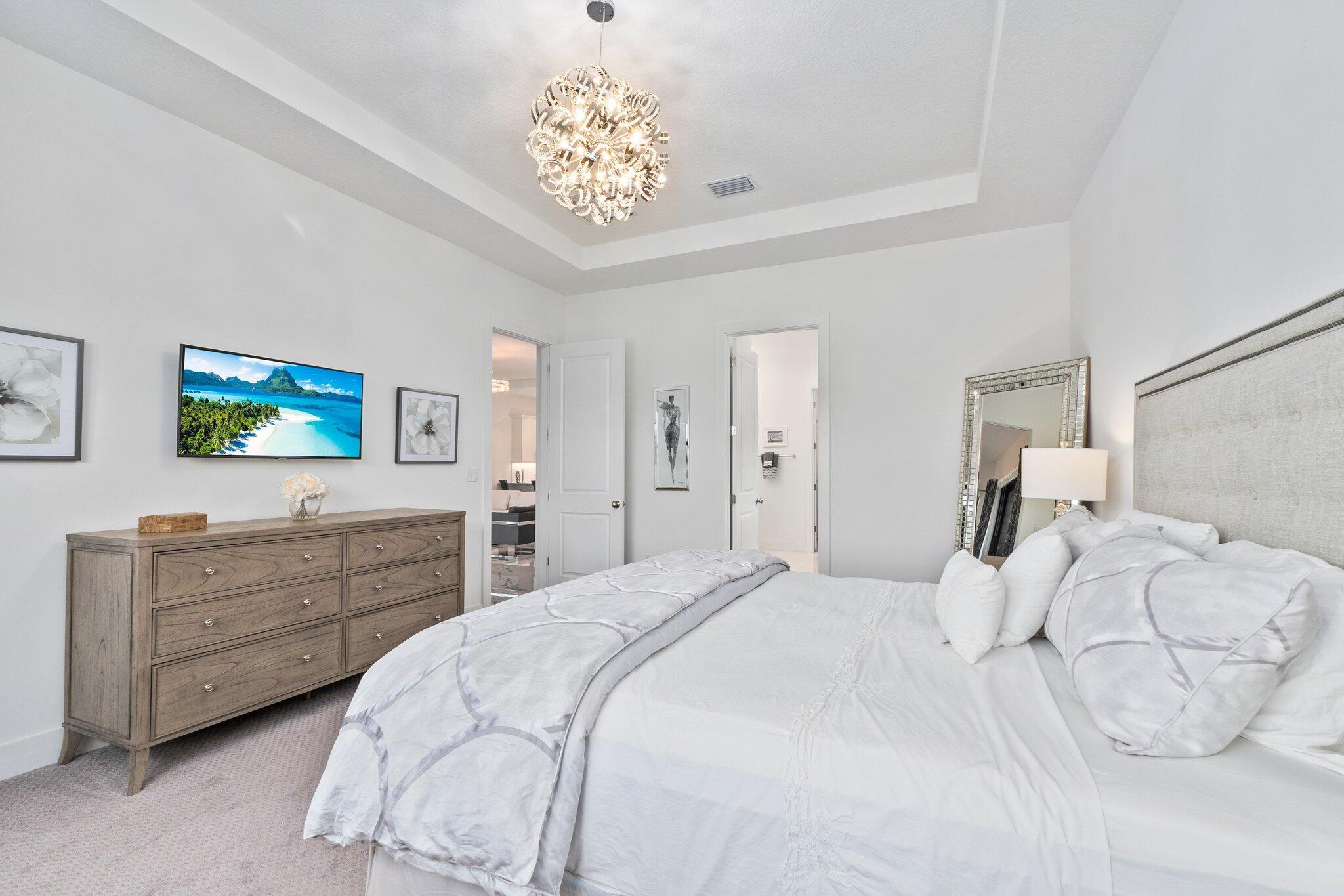 Lakefront luxury pool home! Exquisite Francesca Model Home showcased within the premier community of Artistry in gorgeous Palm Beach Gardens! This modern luxury pool home boasts 3162 sq. ft. of perfection, a spacious ground floor primary suite, 2 additional bedrooms on the second floor, an upstairs loft (possible 4th bedroom), 3 full and 1 half bath, and a 2-car garage! Built in 2020, this home is fully hurricane-impact, high-efficiency, and move-in ready! Centrally located within the community and walking distance from the Clubhouse, this home is adorned with a wealth of upgrades, including upgraded 30'' x 30'' flooring, custom stairs with modern metal stair railings, custom window treatments, upgraded carpets, designer light fixtures, and designer Restoration Hardware furniture!